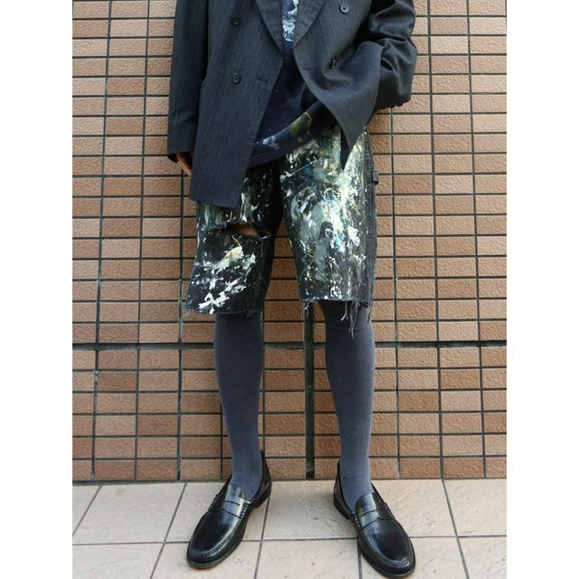 Dickiesのブラックダックペインターパンツ。 此方もリアルに作業着として着られてたであろう裾は雑にカットオフされショーツに、更には激しくペンキが飛び散っためちゃくちゃクールなルックス。 これぞアメリカンリアルワーク感じる一点物な個体。 この時期にもハイソックス、ブーツ、パンツレイヤード等で積極的に穿きたい一本です☺︎ お好きな方は是非この機会に 【ブランド】 Dickies 【カラー】 ブラック (※お使いのモニター環境により、画像の色味が実物と異なって見える場合がございます。) 【素材】 コットン 【サイズ】 表記サイズ : 不明 ウエスト 90cm / 股下 28cm / 総丈 55cm / 裾幅 29cm ※測定における若干の誤差はご了承下さいませ。 着用モデル : 171cm 52kg 【状態】 ヴィンテージ ワーク製品特有の裾カットオフ跡、激しいペンキ跡、クラッシュ跡や薄汚れ等ございます。どれもワーク製品特有の風合いとしてご理解ある方のみご注文お願いいたします ※尚、実店舗でも販売しております為、掲載されていても時間差で在庫切れになる場合がございます。予めご了承下さい。