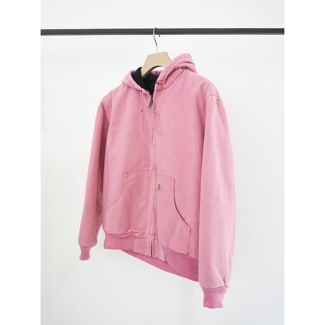 カーハートのアクティブジャケット 此方はレアなピンクカラー。。ビビットなピンクでは無く、柔らかい着やすいピンクカラー。 めちゃくちゃ良い色味です☺︎ ややフェードした色味も雰囲気◎ レディースS表記のカーハートでは逆に見つかりづらいところかと。 小柄な男性の方、もしくわレディースの方がガバッと着てても絶対に可愛いですね☺︎ 勿論、ジャストフィットで着ても格好良いかと。 人気なカーハートのアクティブジャケットですが、他と差別化できる一着です♪ お好きな方は是非この機会に 【ブランド】 Carhartt 【カラー】 ピンク (※お使いのモニター環境により、画像の色味が実物と異なって見える場合がございます。) 【素材】 表地 :コットン 裏地 : ポリエステル 【サイズ】 表記サイズ :S (4/6) 肩幅 48cm / 身幅 56cm / 袖丈 60cm / 着丈 65cm ※測定における若干の誤差はご了承下さいませ。 【状態】 ヴィンテージワーク製品特有の所々微々な薄汚れ、スレ、色ムラ等がございます(画像参照よろしくお願いします。)着用に支障をきたす汚れやダメージ等は無く古着慣れされてる方なら問題ないレベルかと。 ※尚、実店舗でも販売しております為、掲載されていても時間差で在庫切れになる場合がございます。予めご了承下さい。