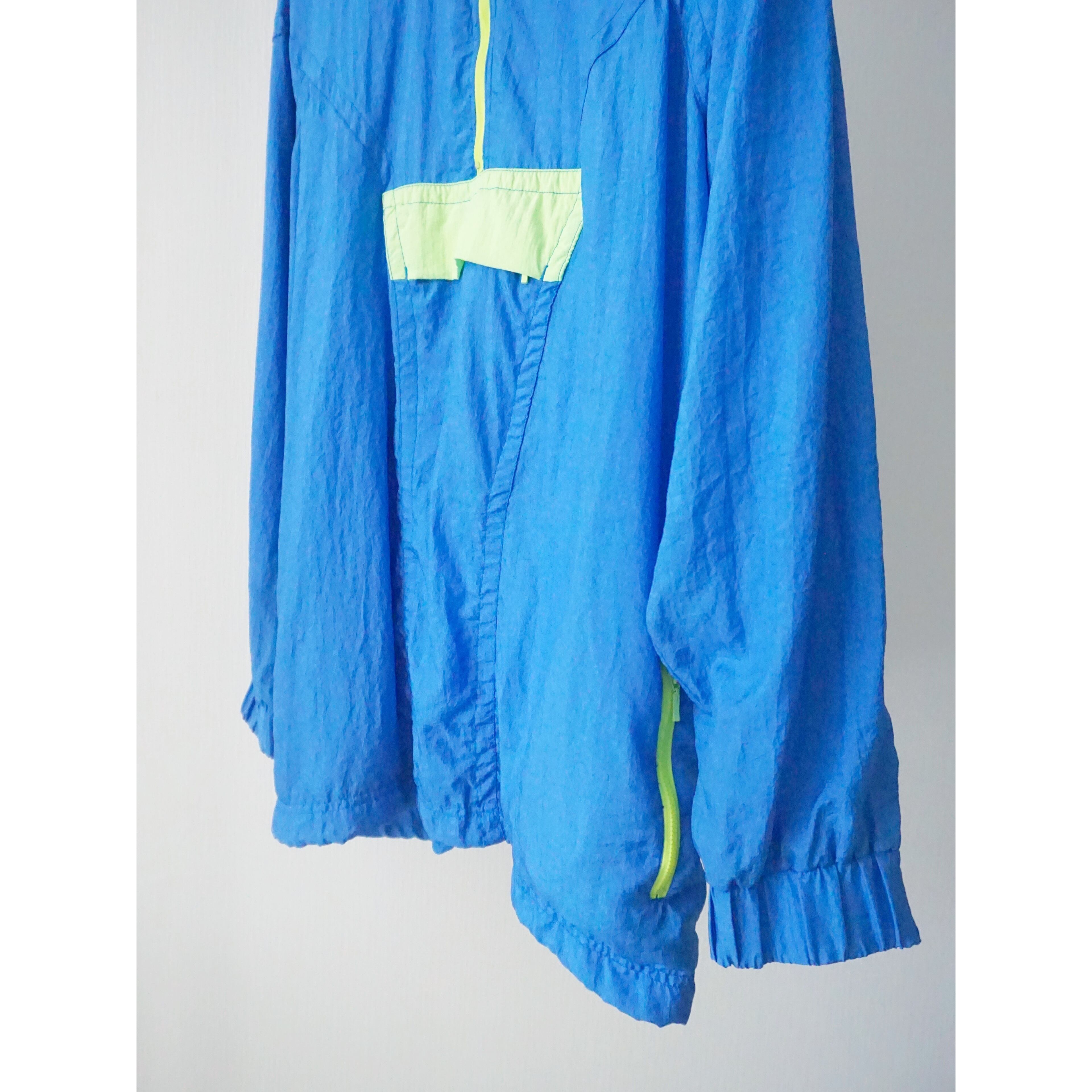 この年代らしいシャリ感のある柔らかく軽やかなナイロン素材に、此方は光沢感のあるブルーに蛍光グリーンのカラーリングが秀逸な一着です