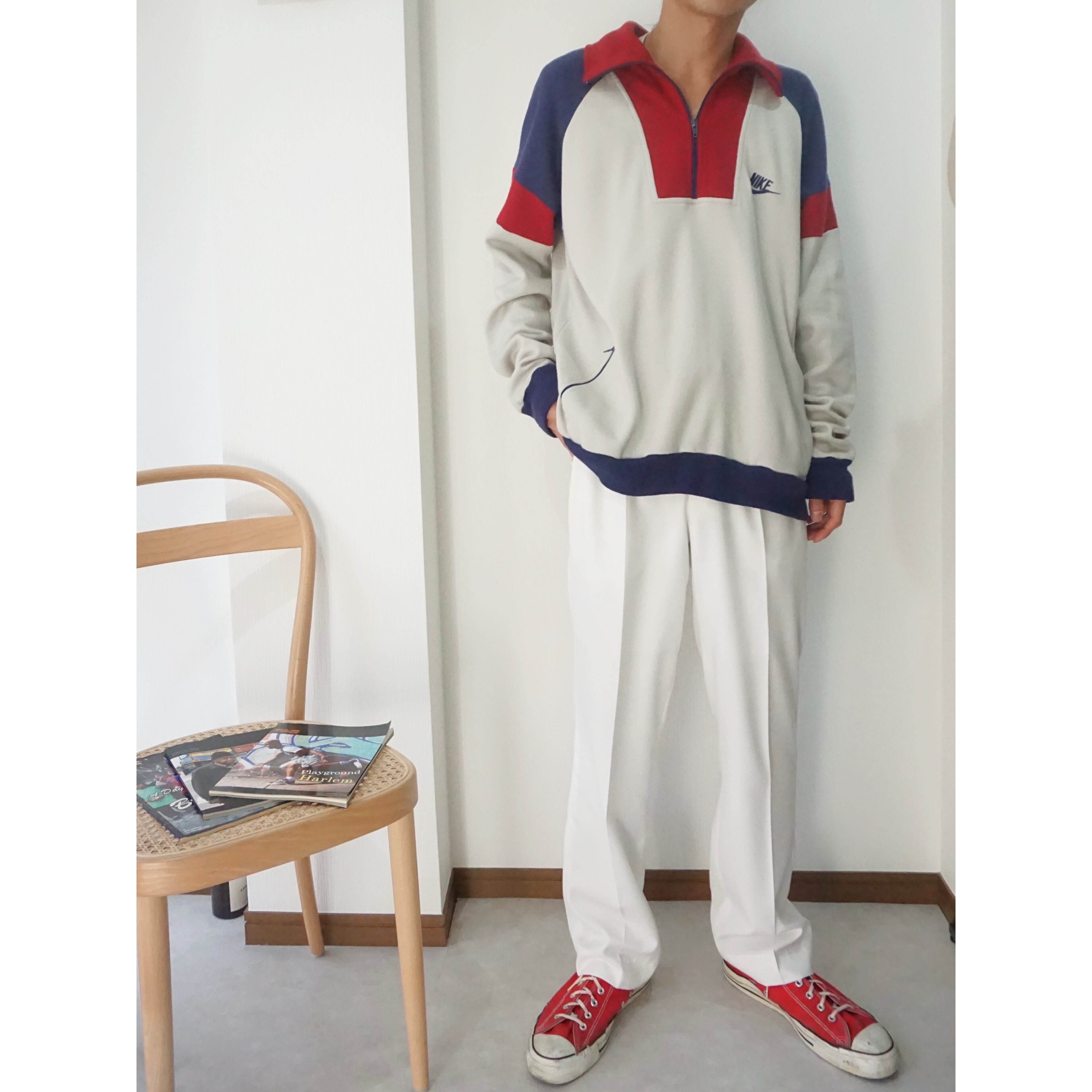 1970~80s vintage "NIKE" 3-tone half zip jersey pullover