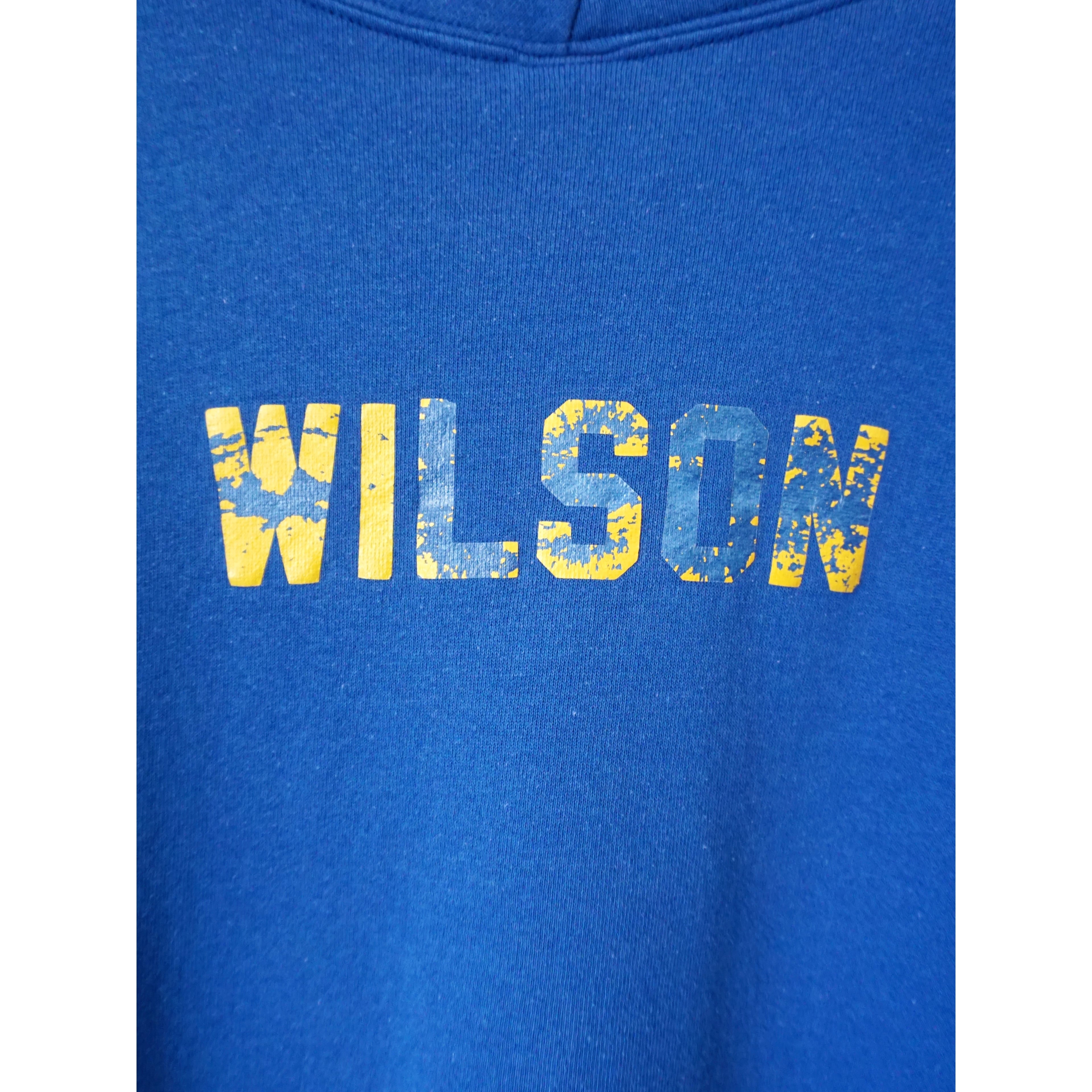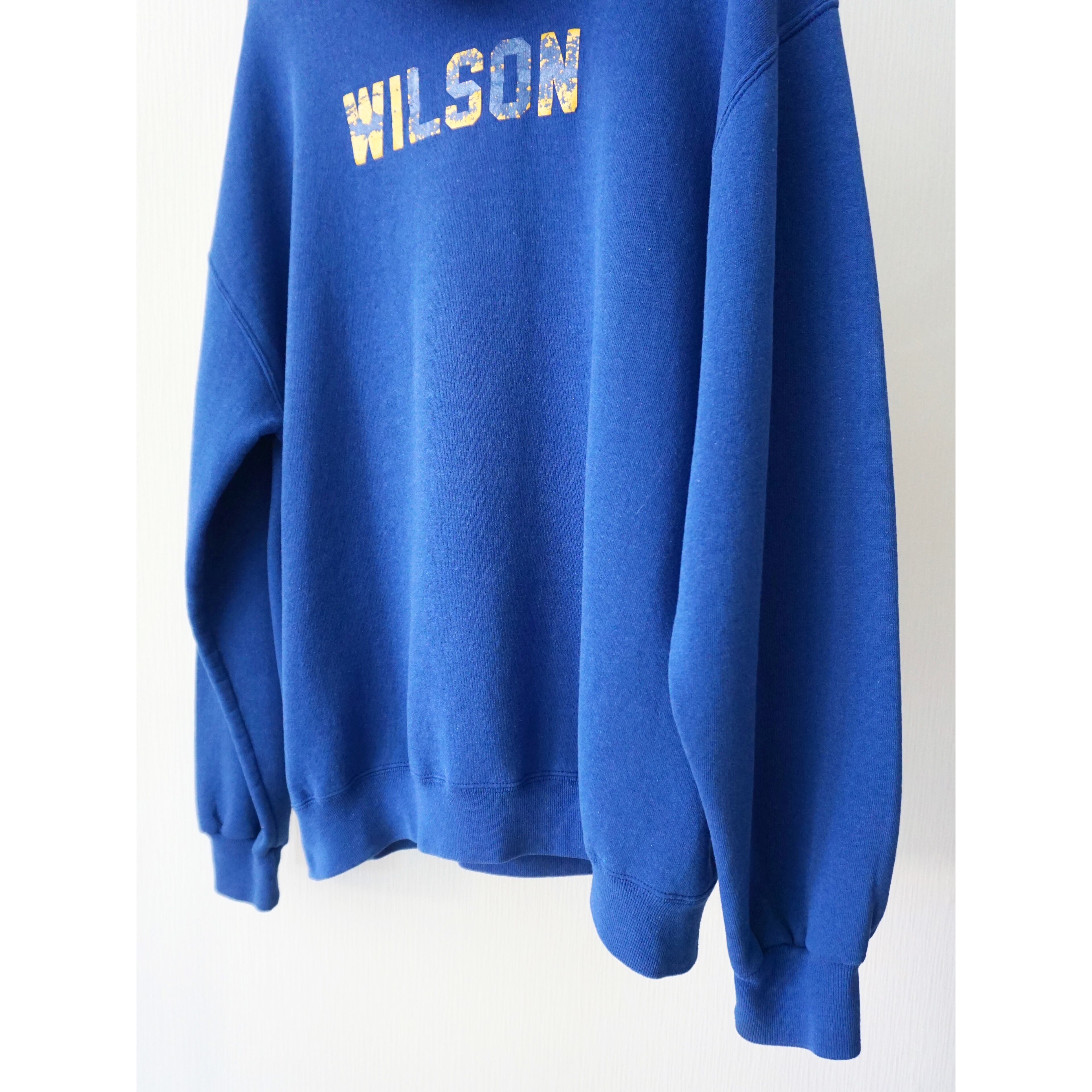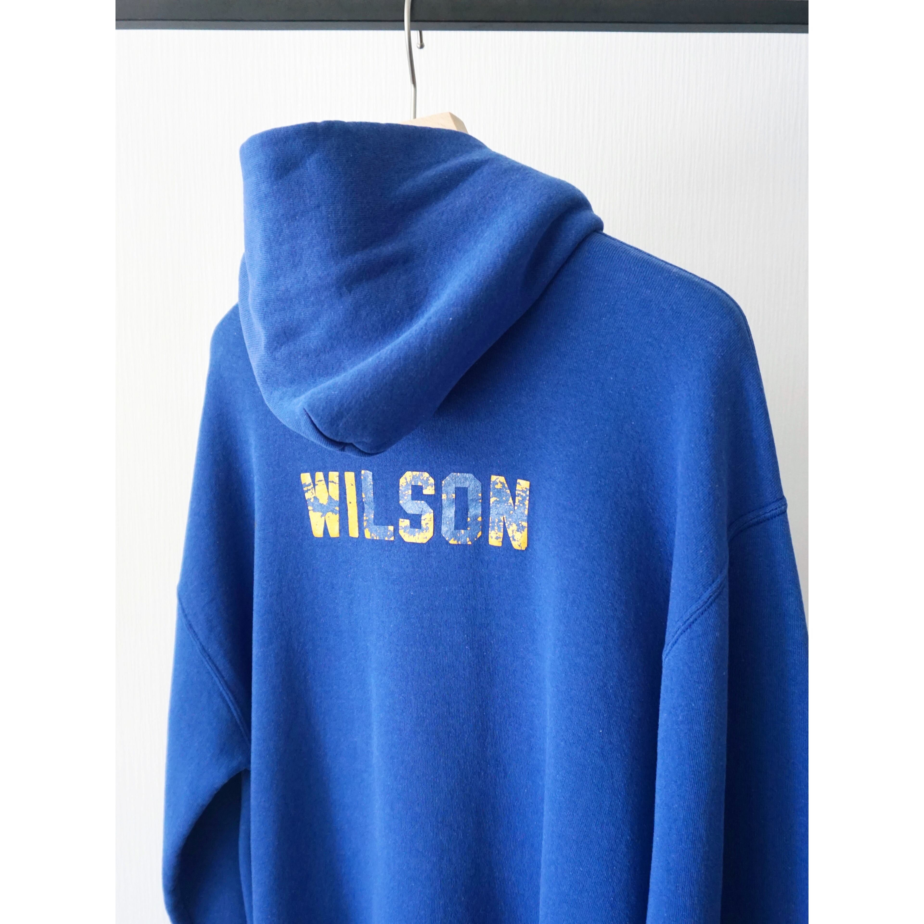 良いブルーの色味にバックにイエローラバープリントでの"WILSON"。クラックしたプリントの感じがめちゃくちゃクールです。