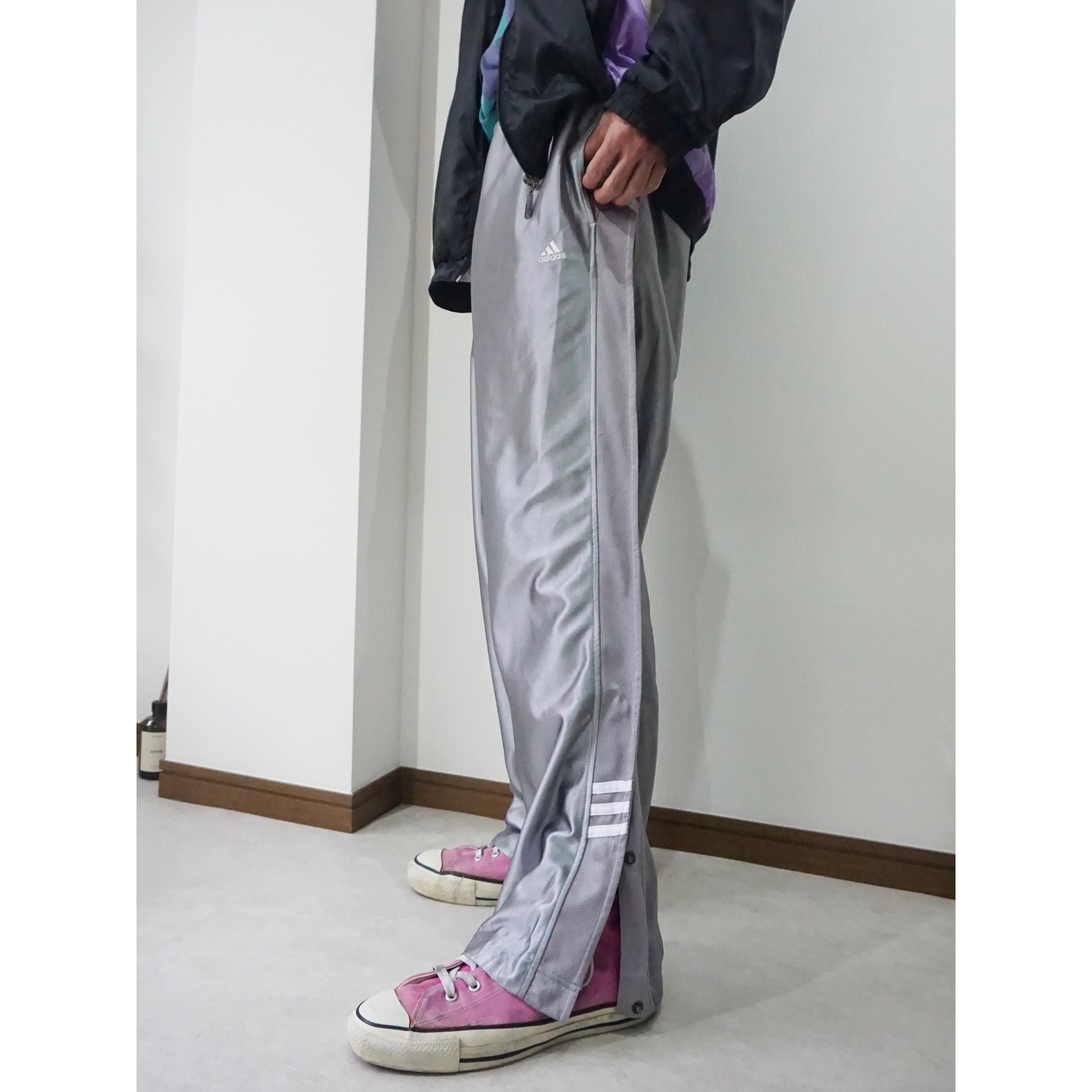 さり気なくポケット付近にパフォーマンスロゴ、裾付近にブランドらしい三本ラインがホワイトカラーで入ります。サイドスナップボタンをラインで隠してる感じも良いですね