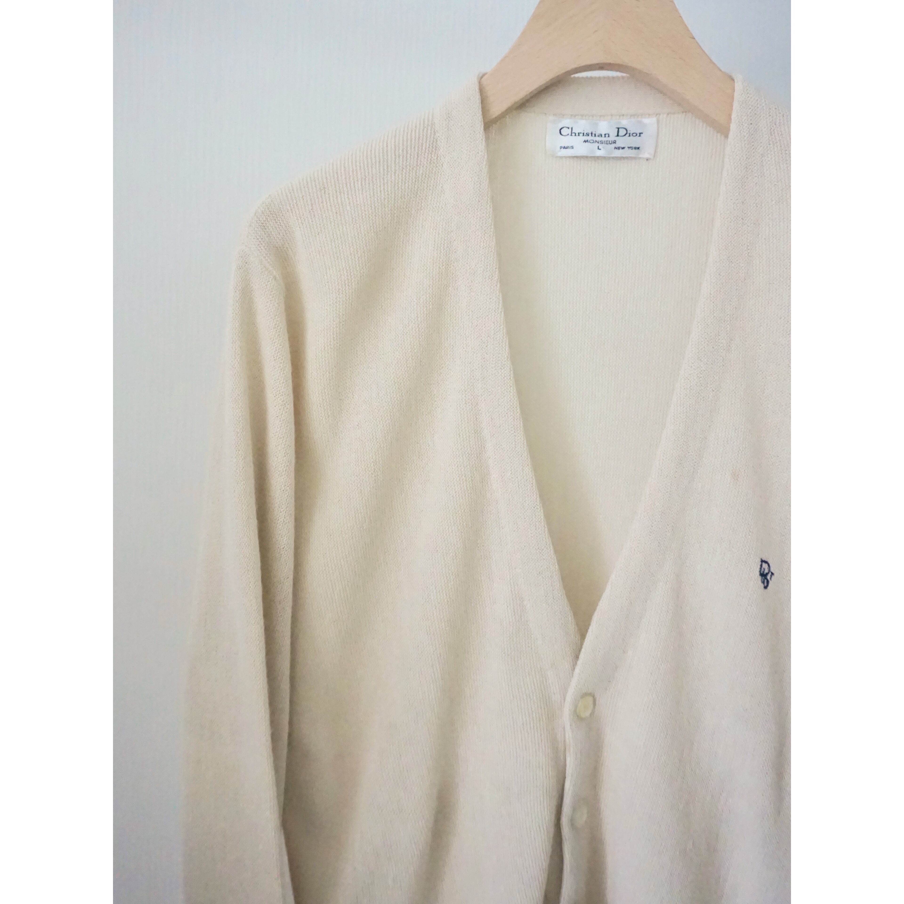 1990s vintage "Christian Dior" one point embroidery logo orlon acryl knit cardigan made in USA