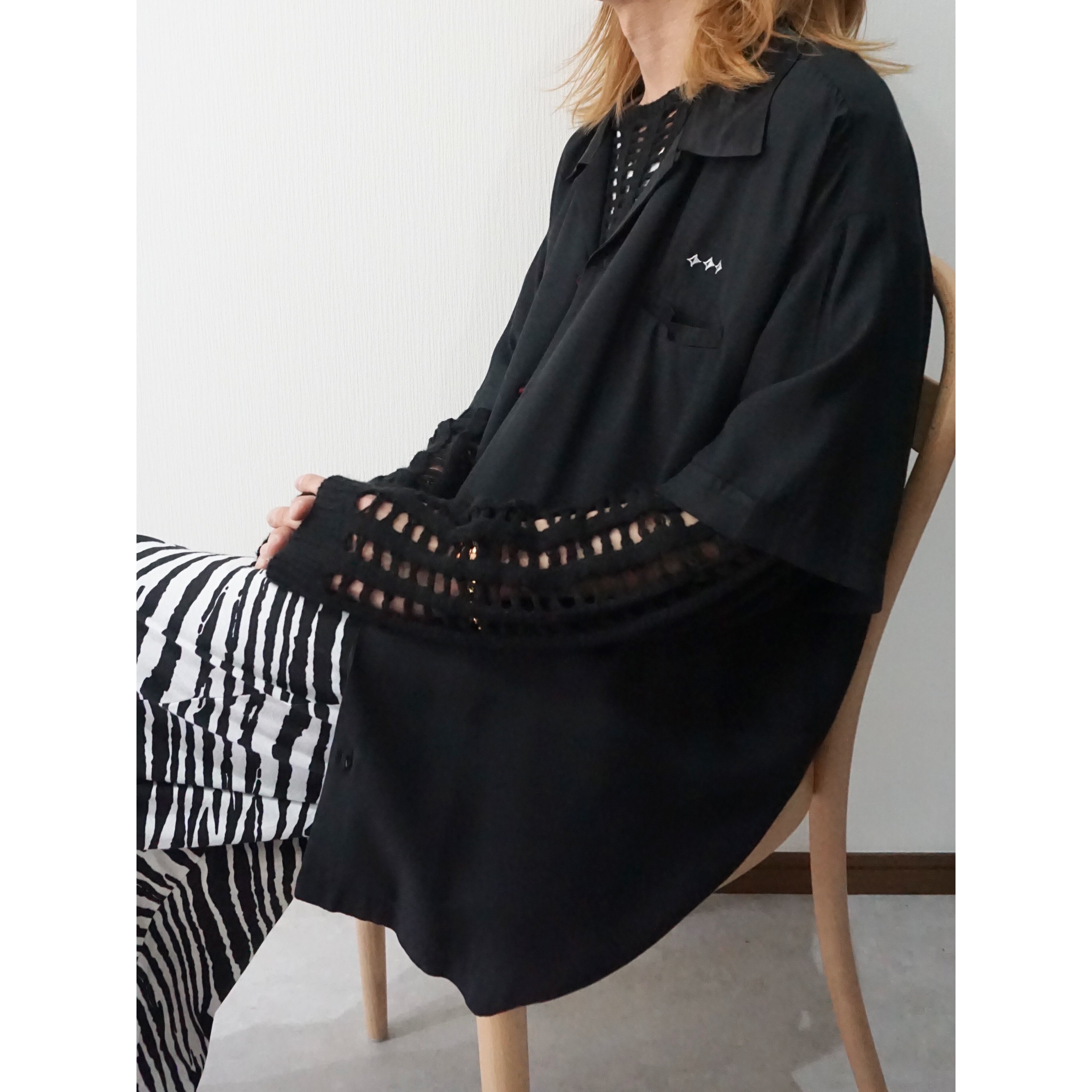 素材はほぼ間違いなくレーヨン。滑らかでたぷっとトロトロと垂れる生地。着用時のドレープがとても綺麗で色気の出るシャツです☺︎