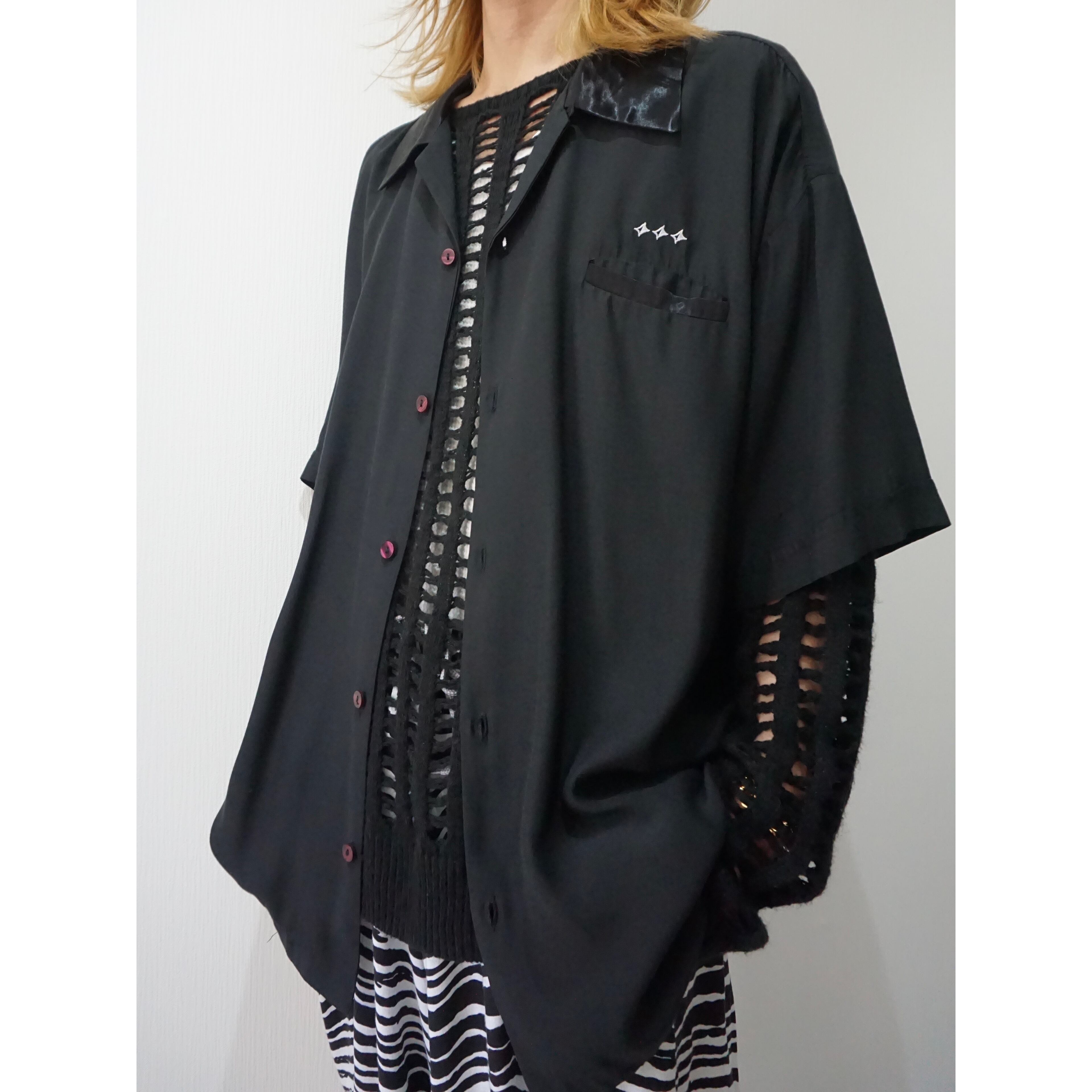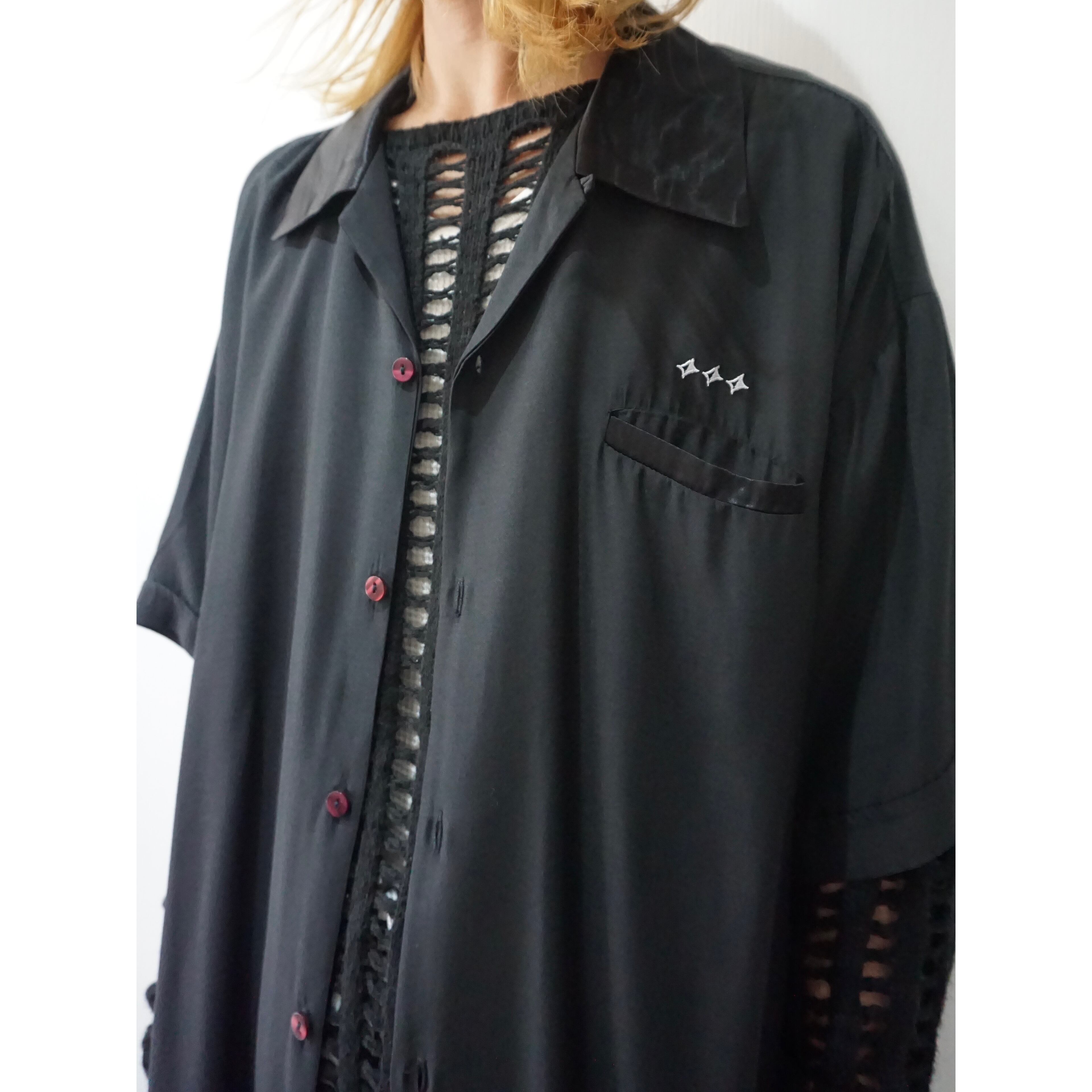 1990s vintage satin collar embroidery design rayon open-collar shirt