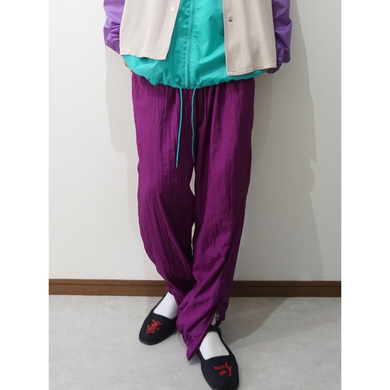 80年代頃のパープルカラーのナイロンイージーパンツ