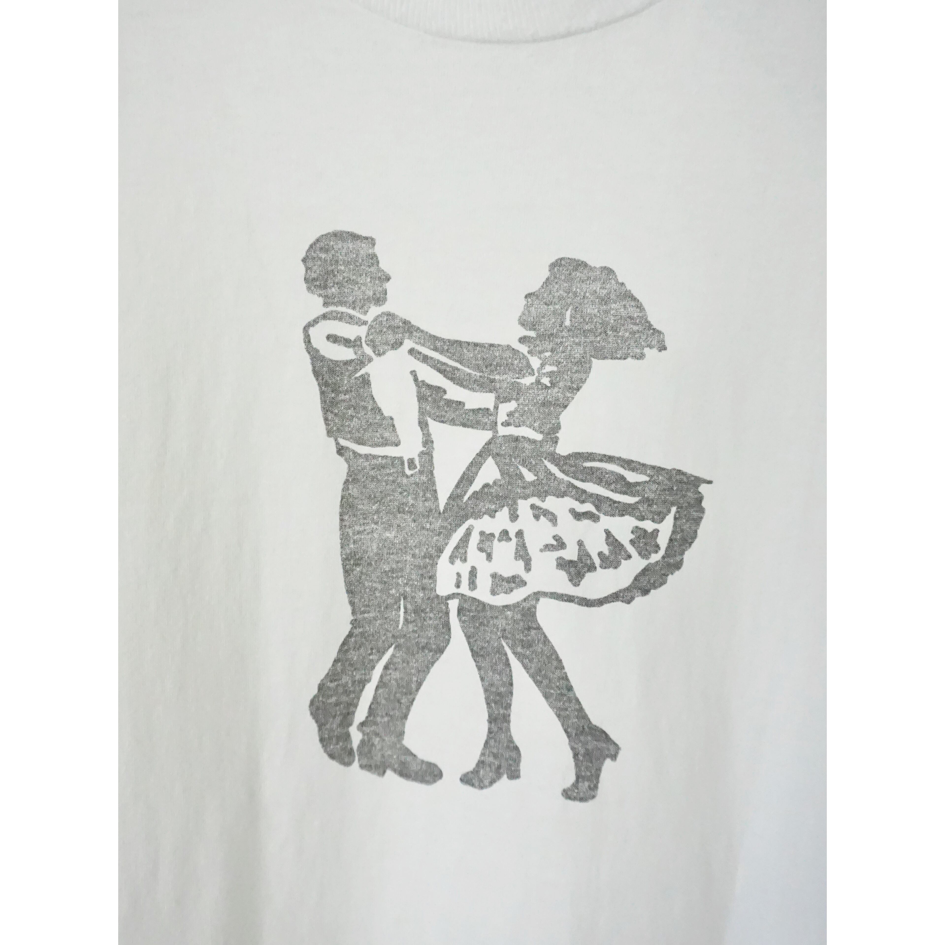 ホワイトボディにダンスをしている男女がプリントされた可愛らしい一枚です。サラッと着てたら良い雰囲気かと♪