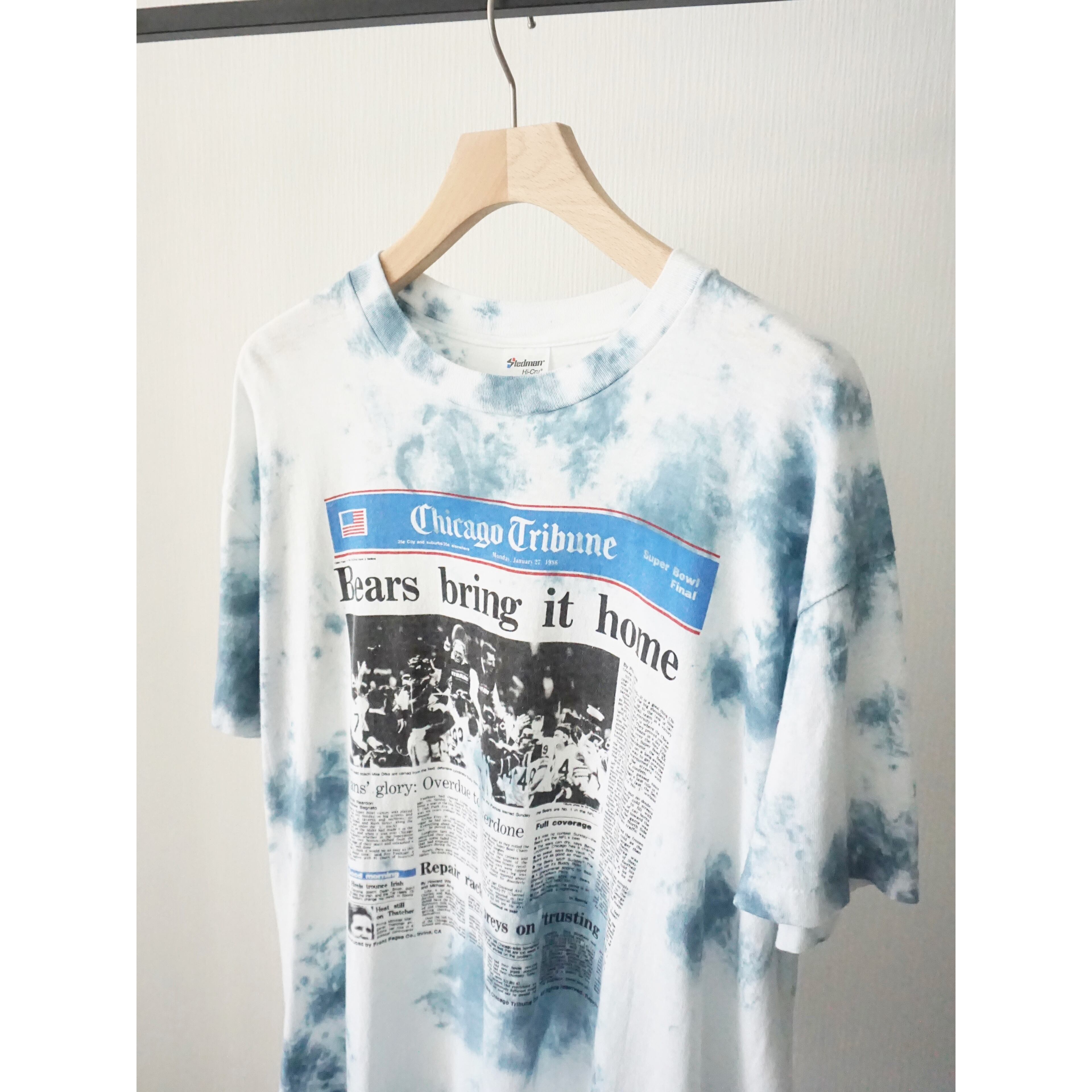 ホワイトボディにシカゴ・トリビューンの記事のプリント。プリントの感じも洒落てますし、此方は良い感じにタイダイ染めされた雰囲気の良い一着です。