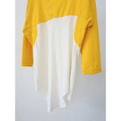 此方はイエロー×ホワイトの2トーン、フロントはやや斜めにヘンリーネック仕様。