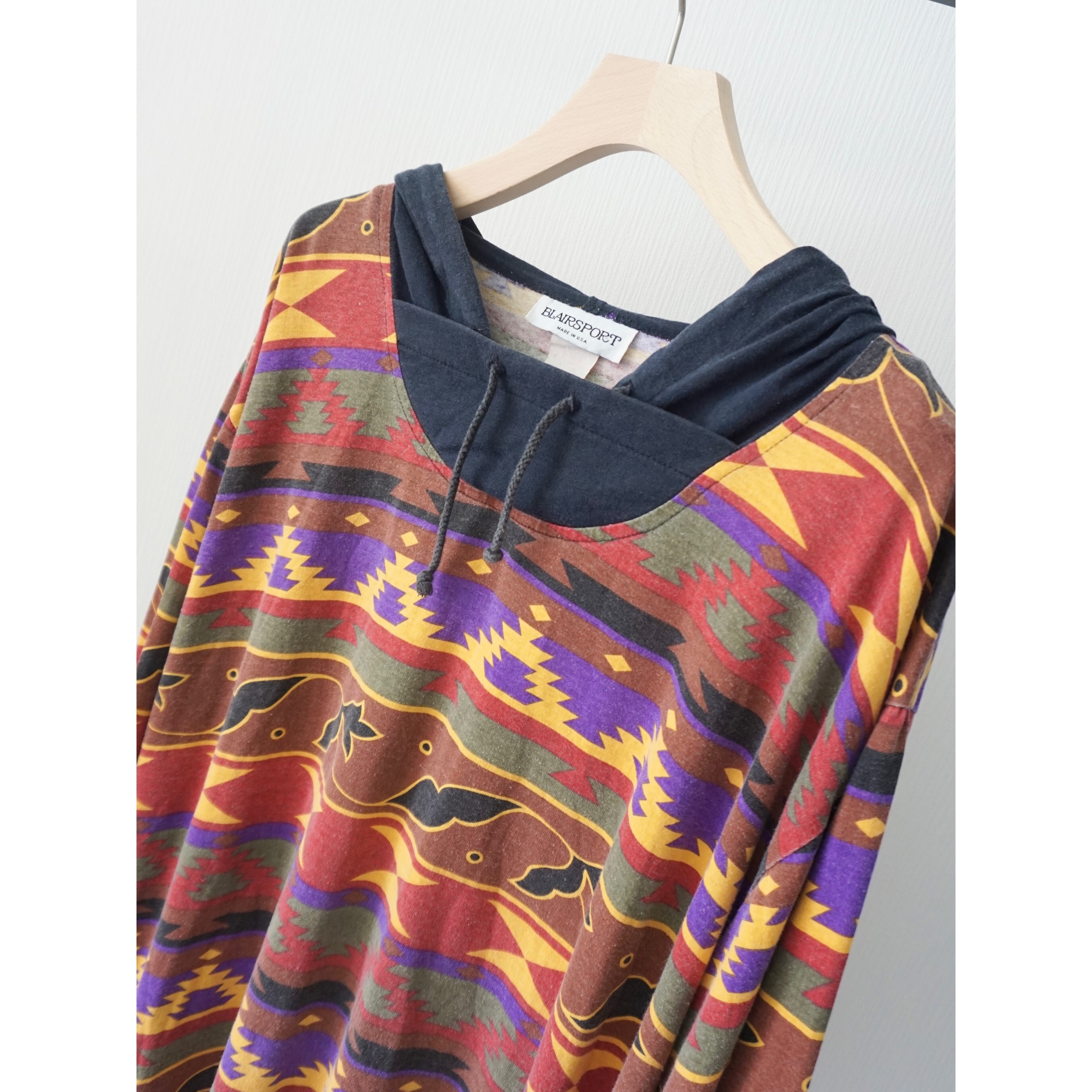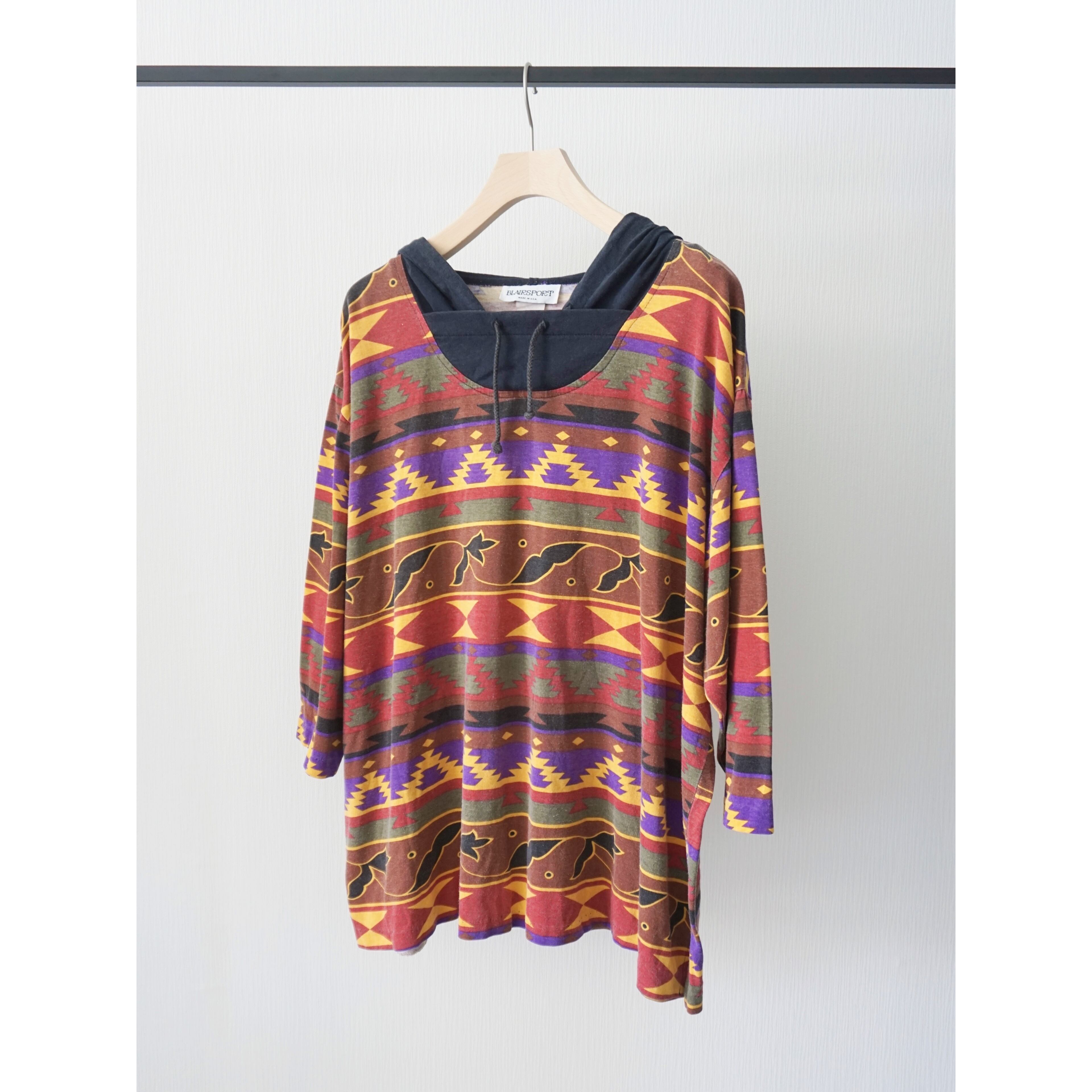 1990s vintage native pattern l/s hooded cut&sewn made in USA