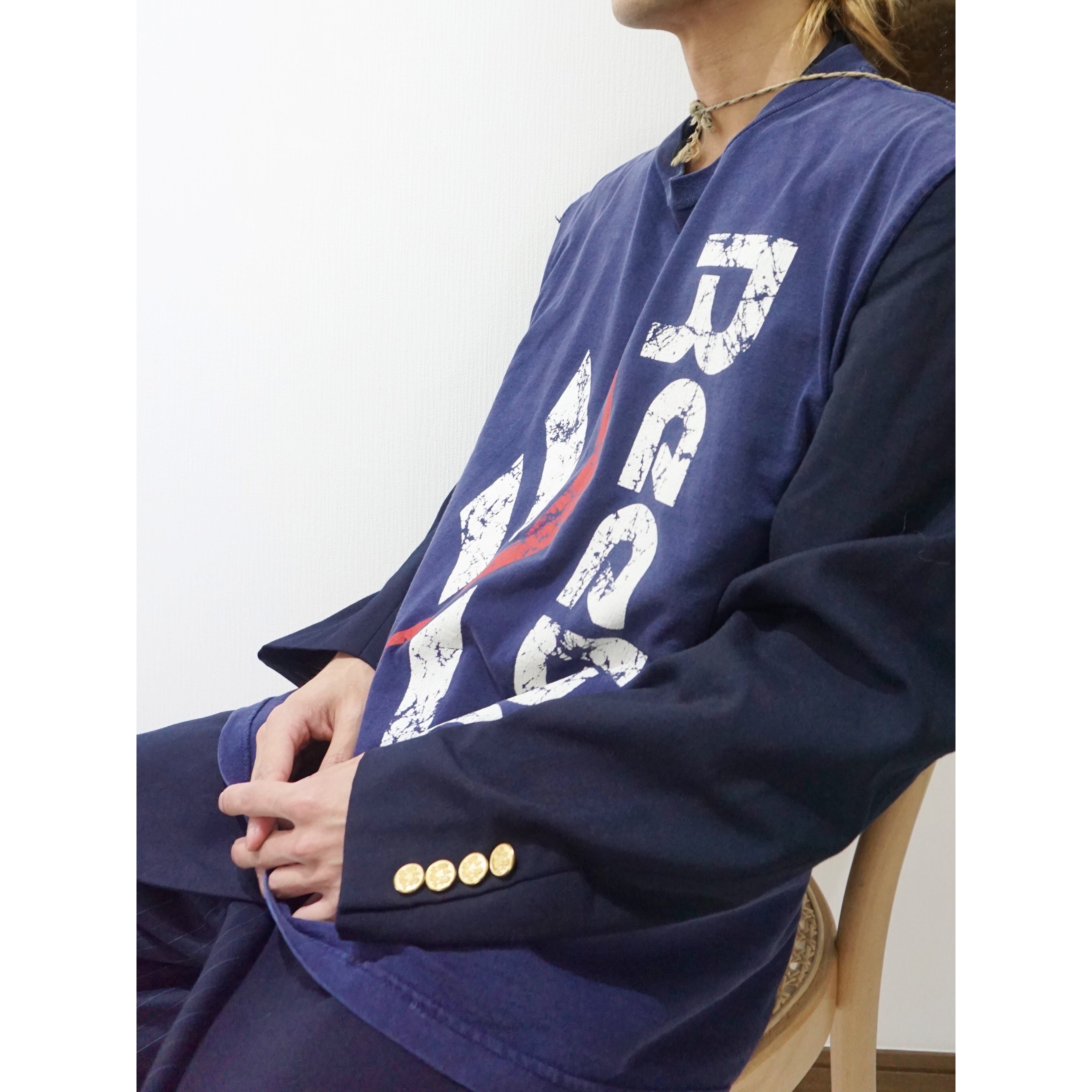 めちゃくちゃ良い感じにクラックしたプリント、更には前所有者により両袖がカットオフされノースリーブにされた雰囲気抜群な一枚です。