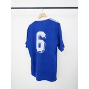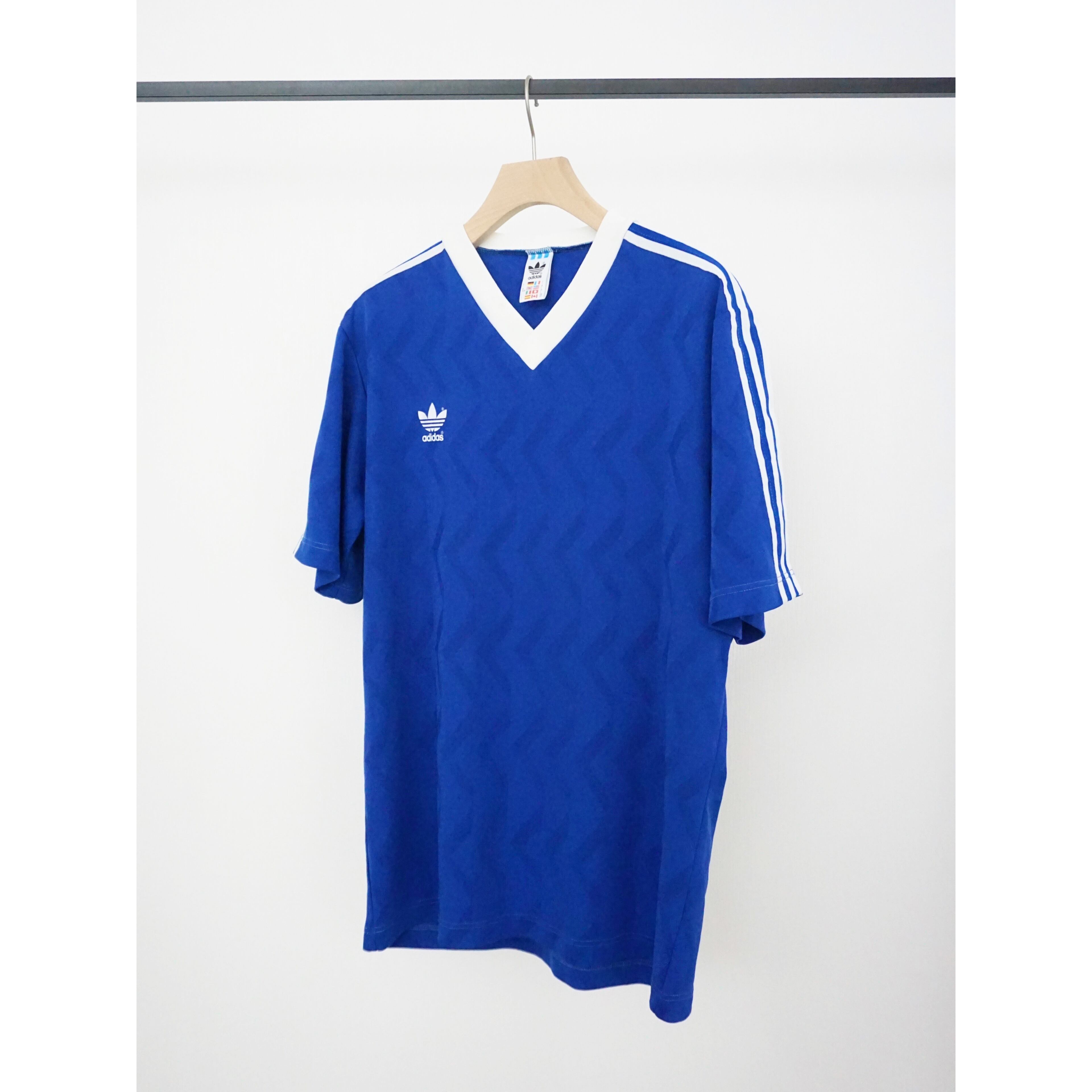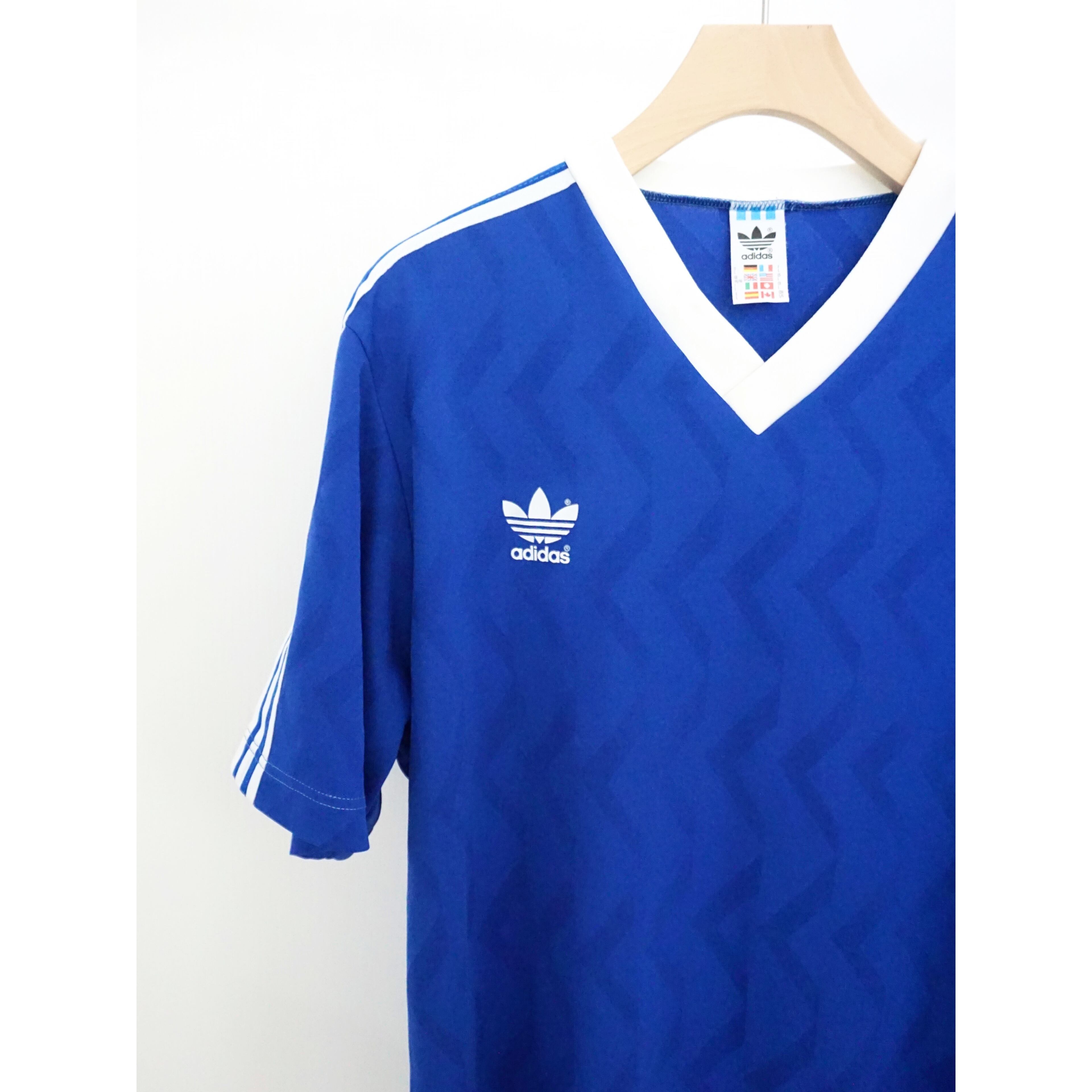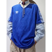 ブルーボディにホワイト三本ラインのクリーンな配色◎よく見ると、うっすらと波の様な柄が同色で入ります。胸元にトレフォイルロゴ、背面はフロッキーライクなプリントでナンバリング6。