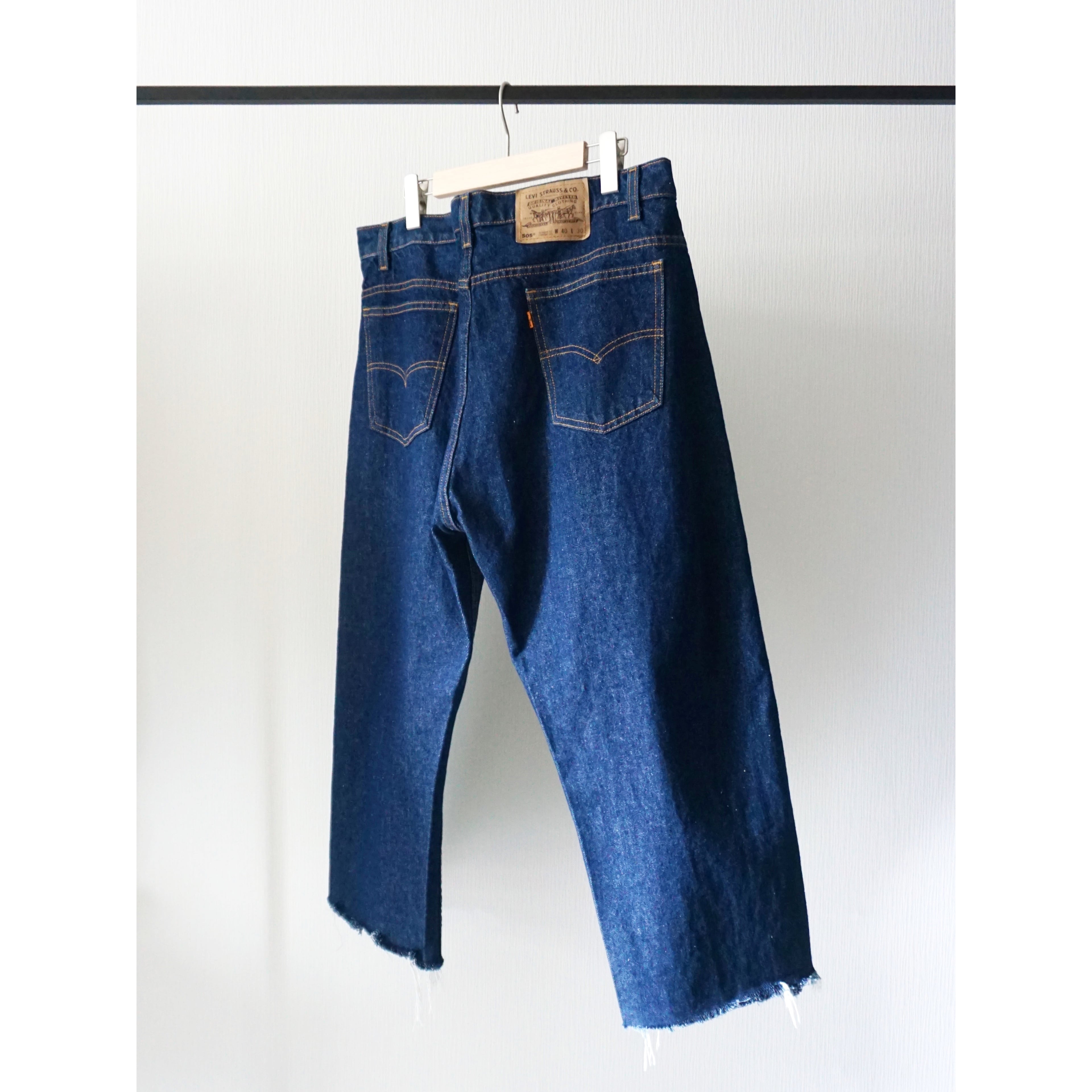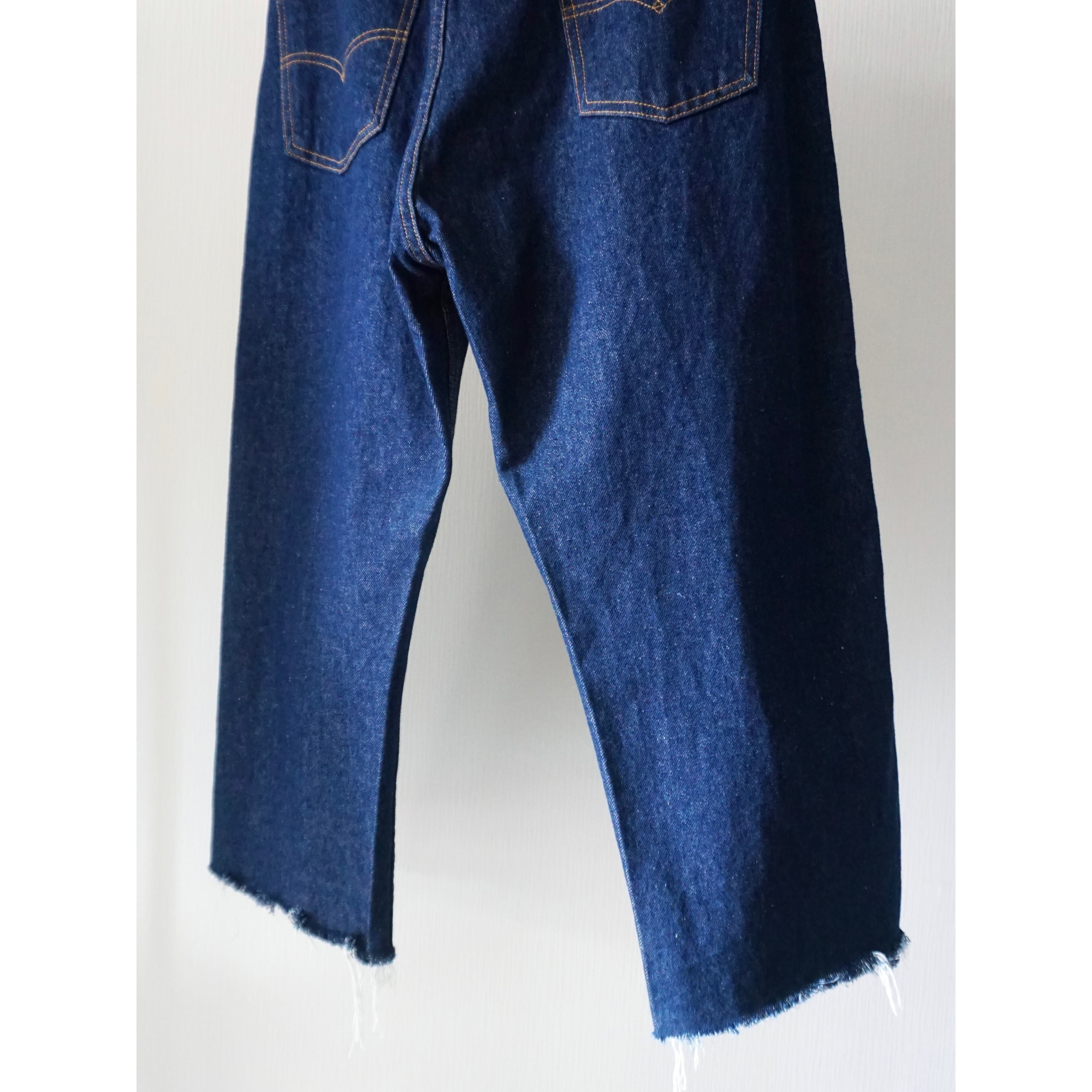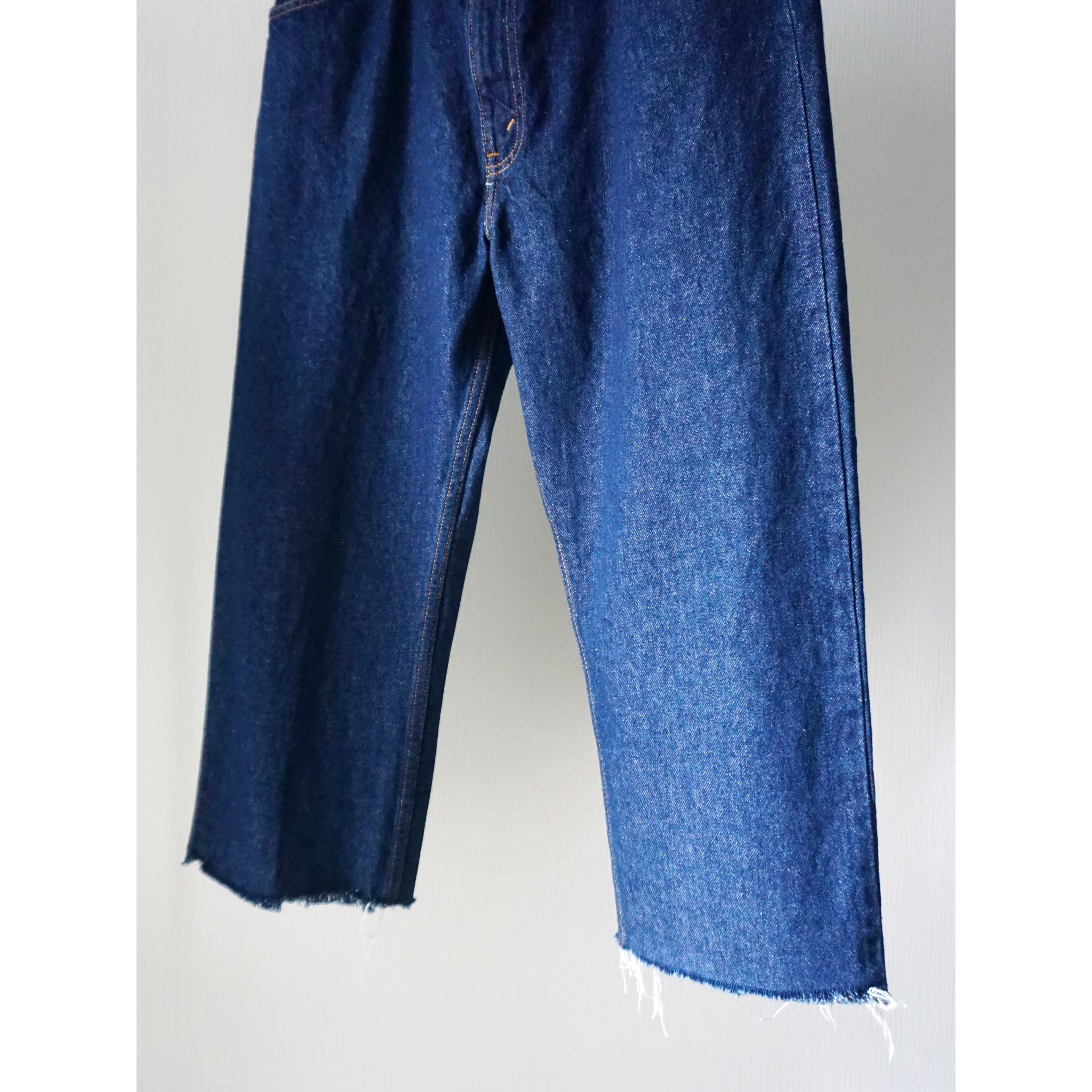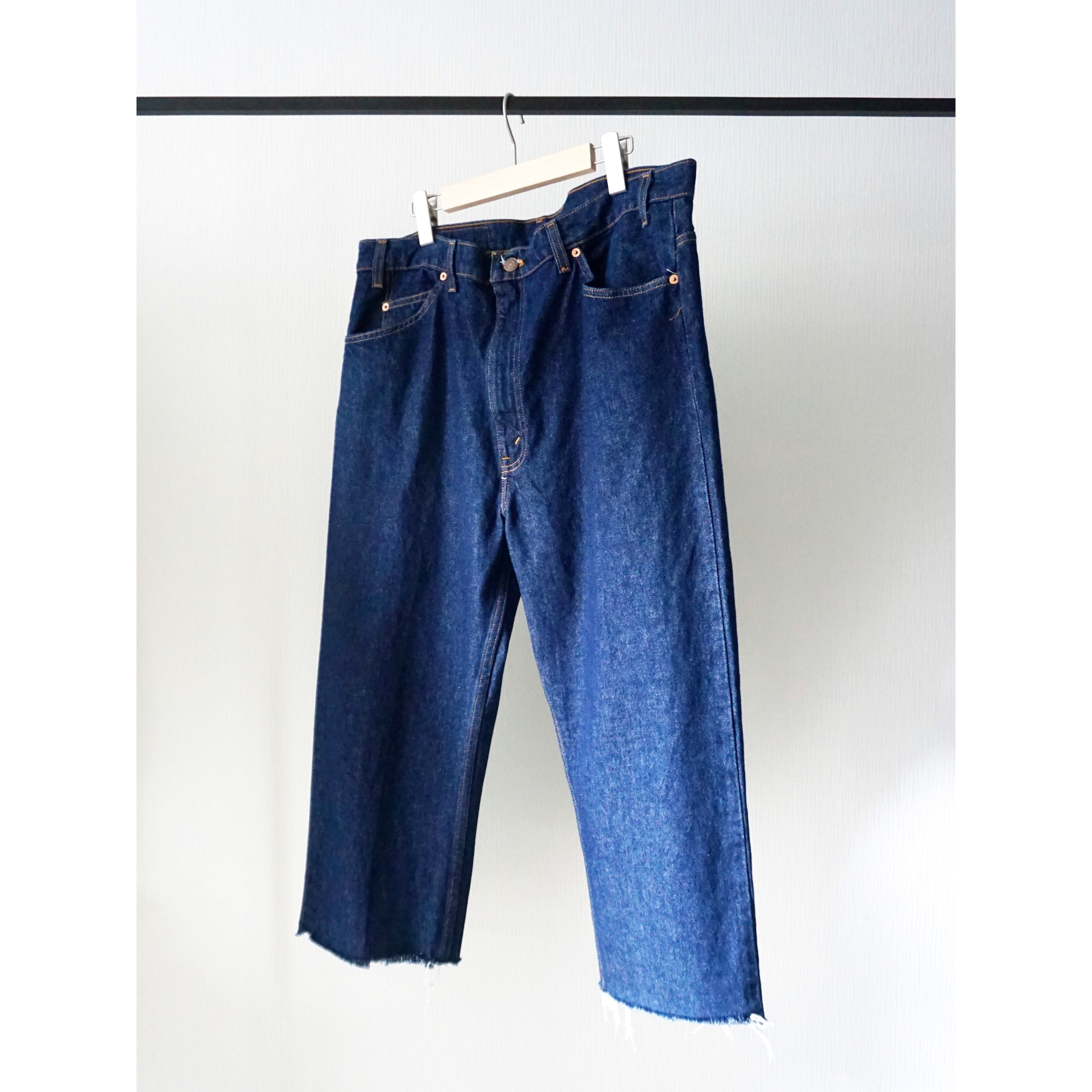 90年代でも見つかりづらくなった、がっつり色濃く残るインディゴデニムに裾カットオフされた雰囲気の良い一本です