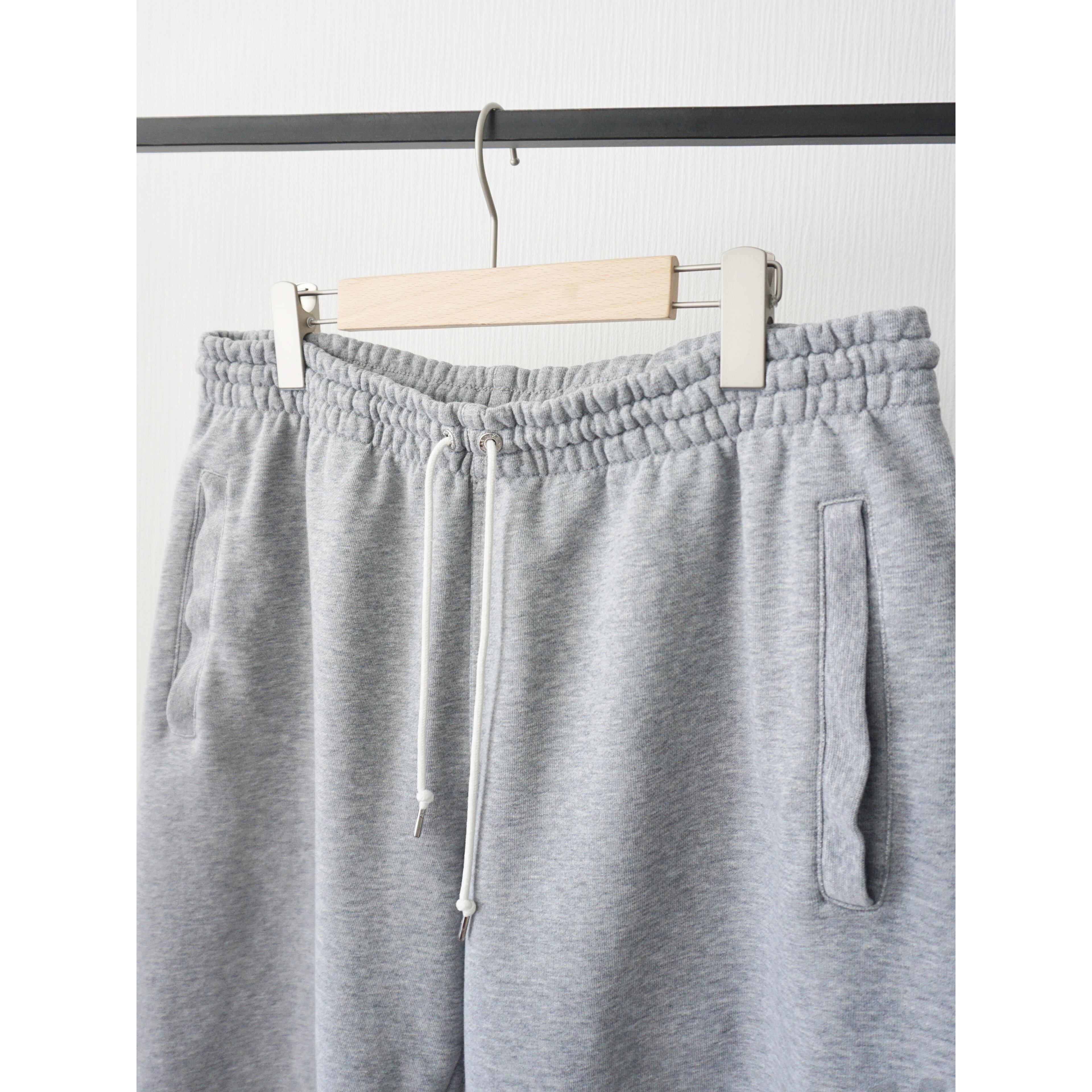 着心地の良い柔らかいスウェット生地にウエストはゴム、ドローコード付きに両サイド、背面にもポケットが付く嬉しい仕様。