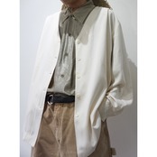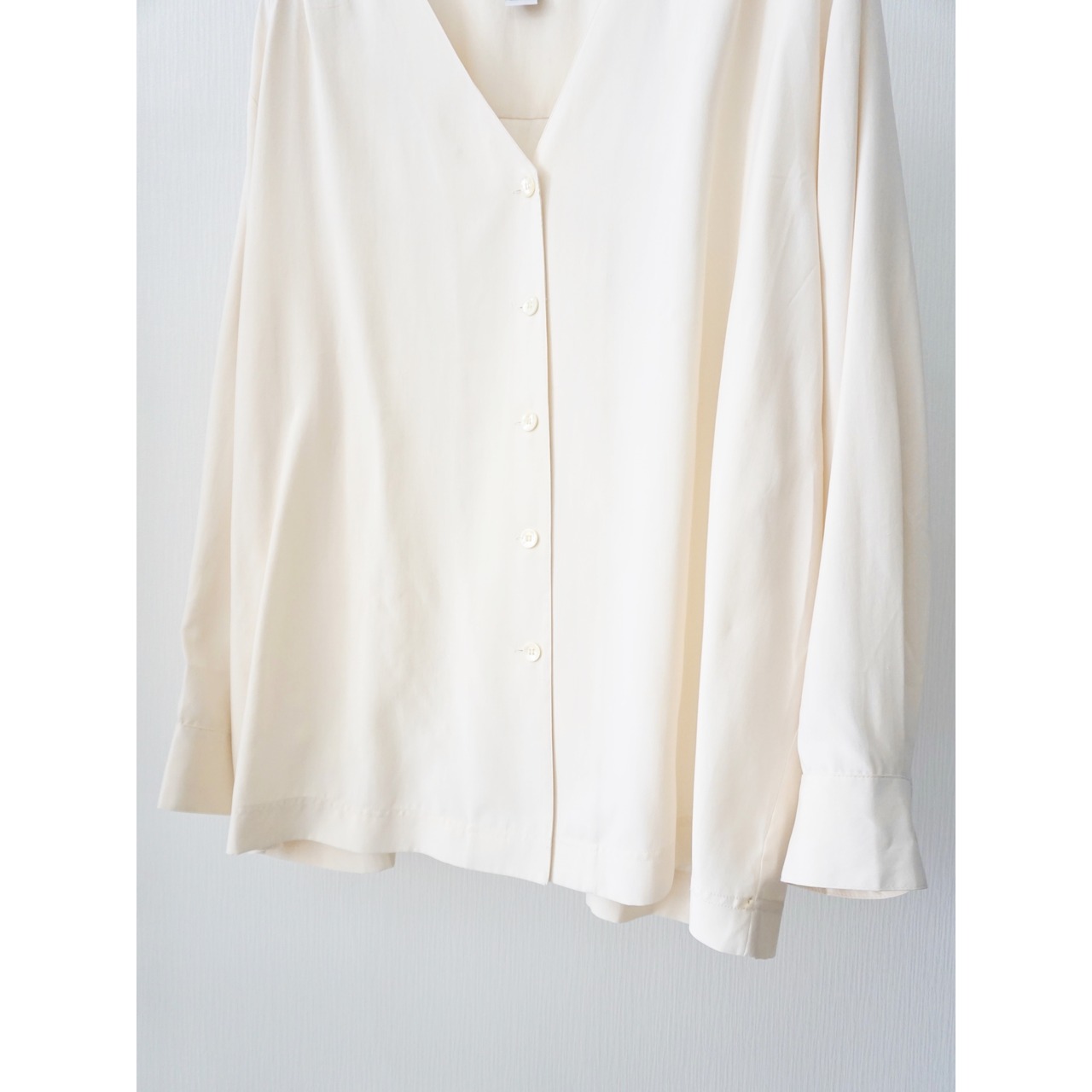 胸元が程良く開いたノーカラー仕様に、軽やかでしっとりとした、とろとろと垂れる心地良いシルク100%素材。それと相性の良いオフホワイトカラーも最高です◎