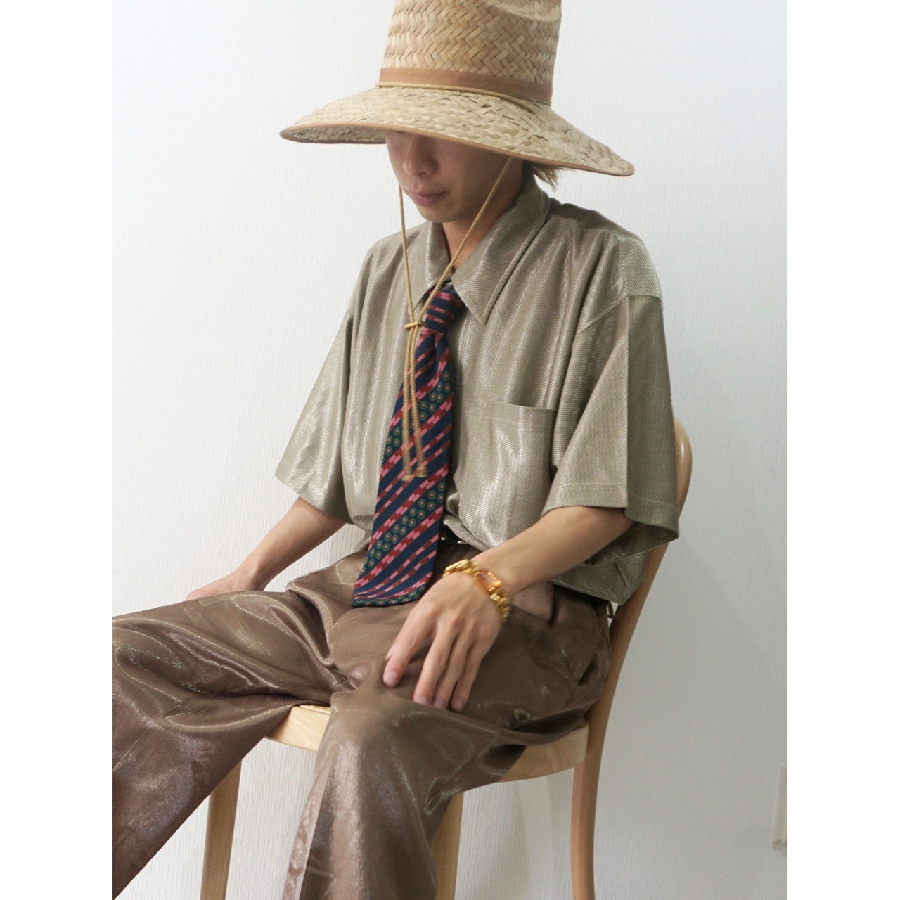中々に見ない、光沢感のあるシャンパンゴールドカラーの半袖シャツです。