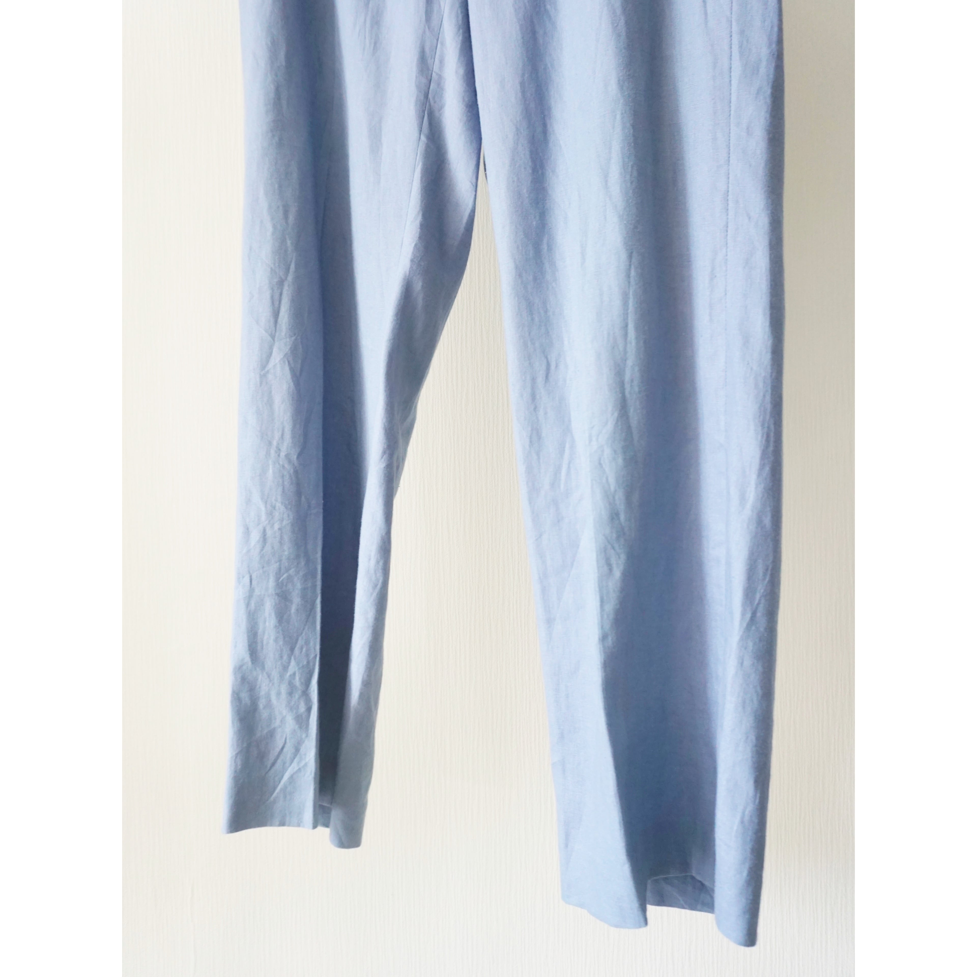 個人的にも大好きなサックスブルーカラーのスラックス。この時期に嬉しい上質な100%リネン素材の一本です。