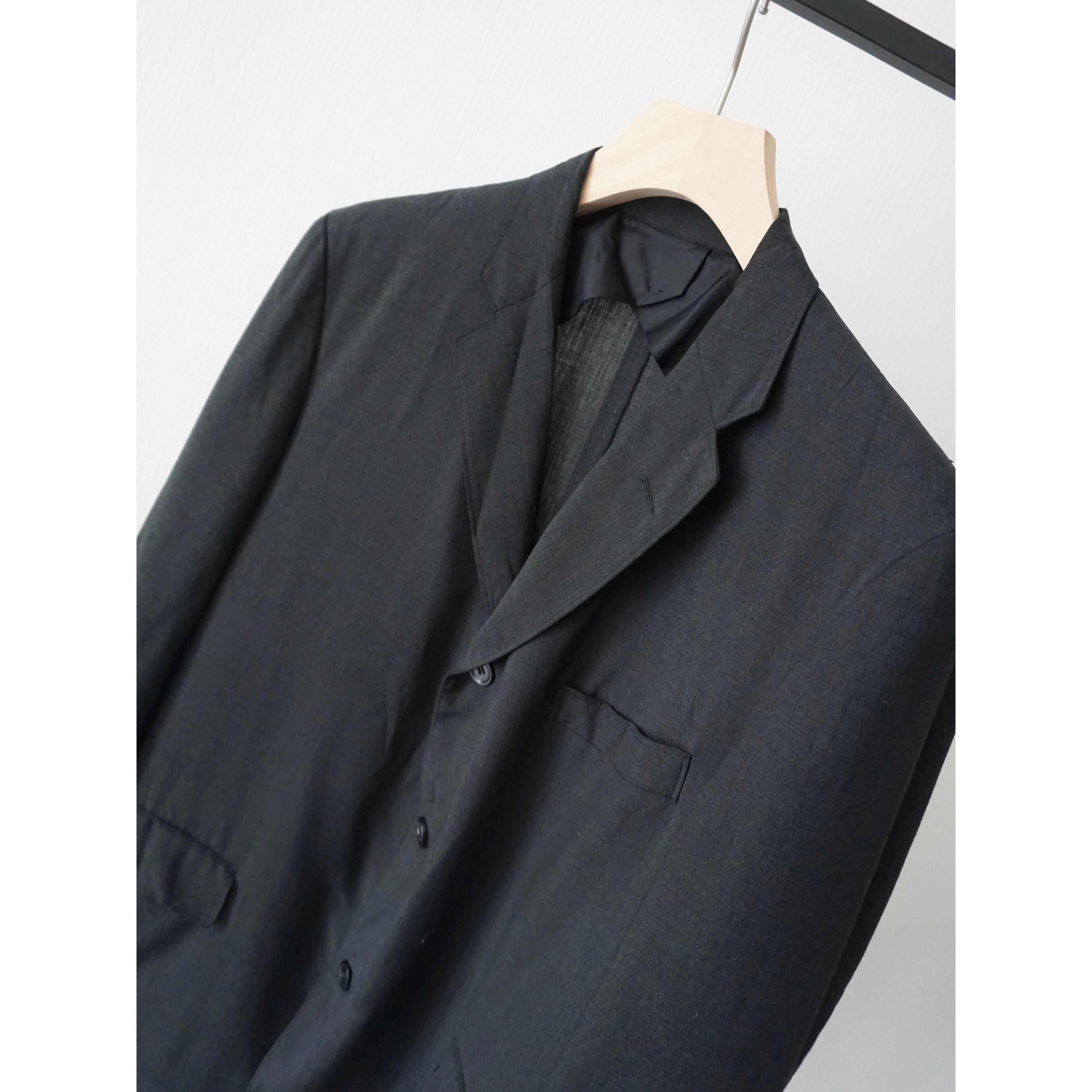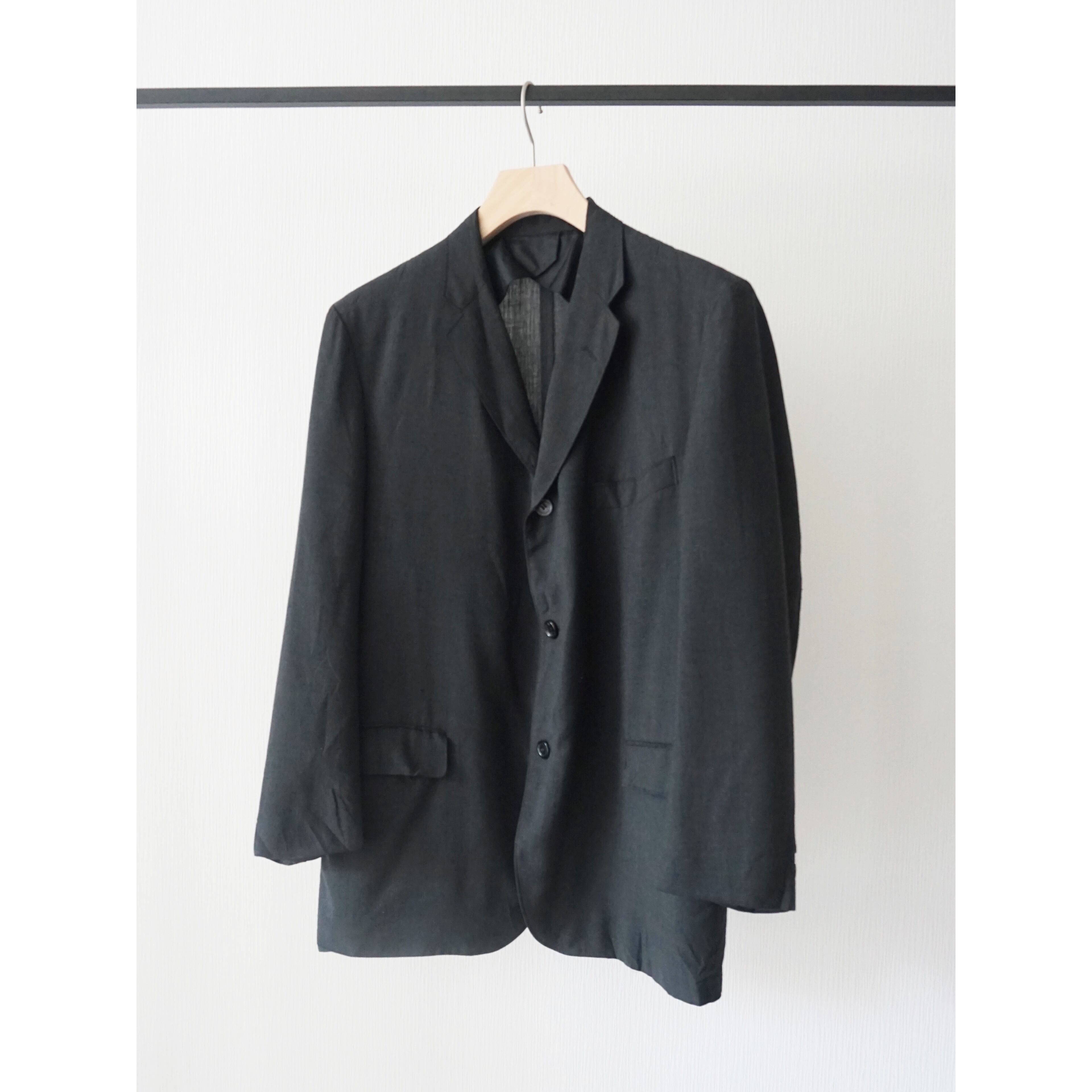 汎用性高いブラックカラーに飽きのないシングル3ボタン仕様。着やすいボックス的シルエットに背面センターベントの入る流石な作り。