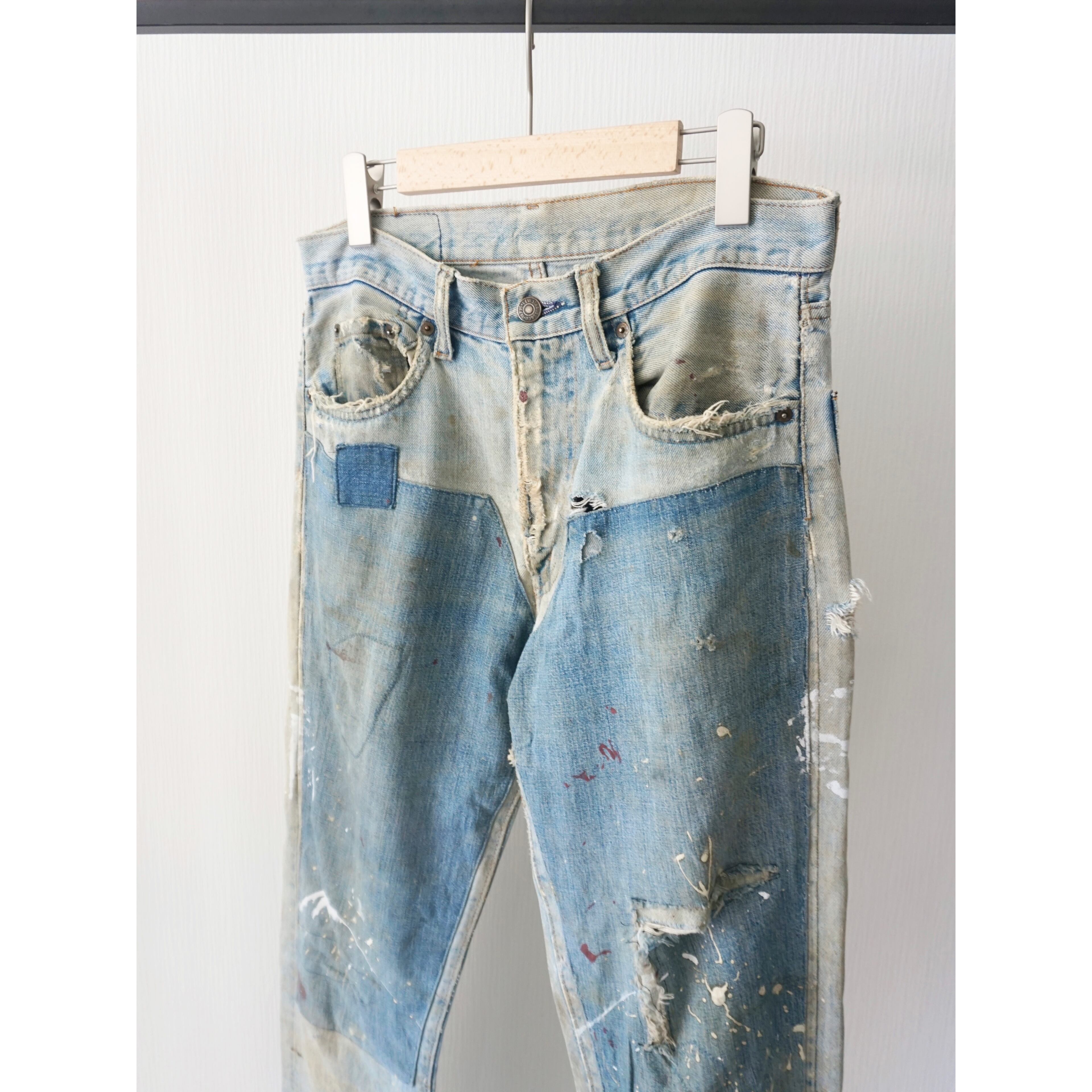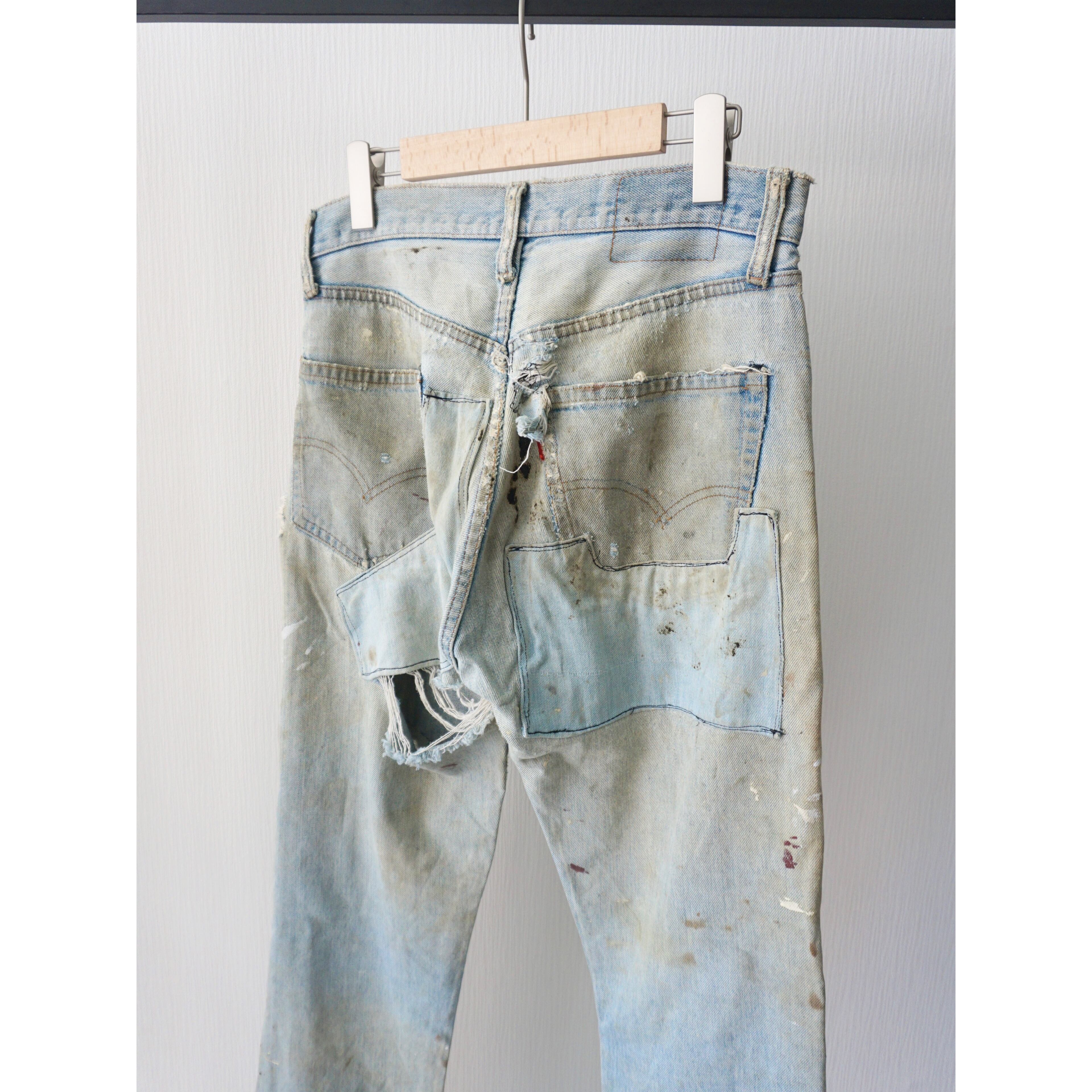 1970~1980s vintage "Levi's" 505 artistic boro denim pant