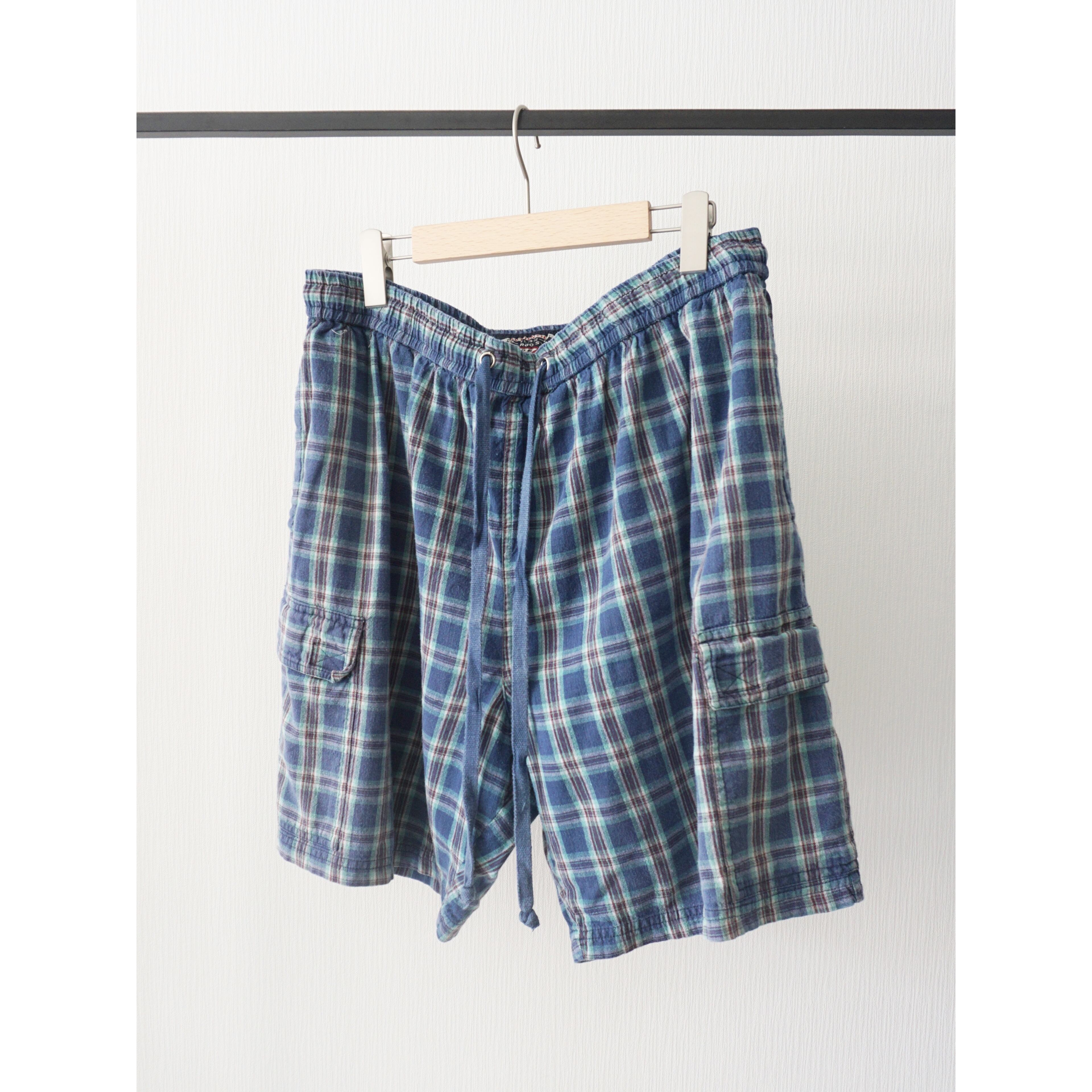 1990s vintage Indian cotton check pattern easy cargo shorts