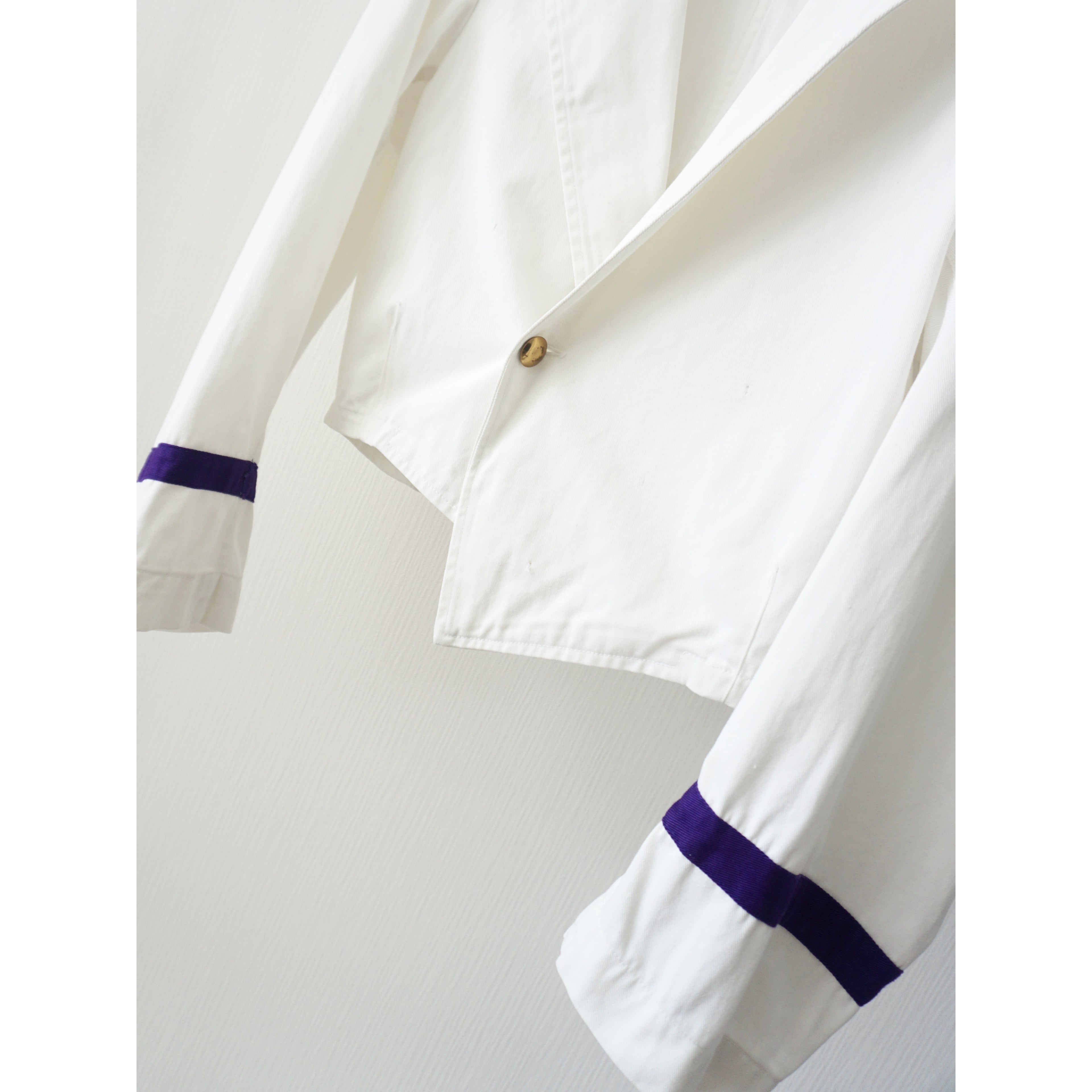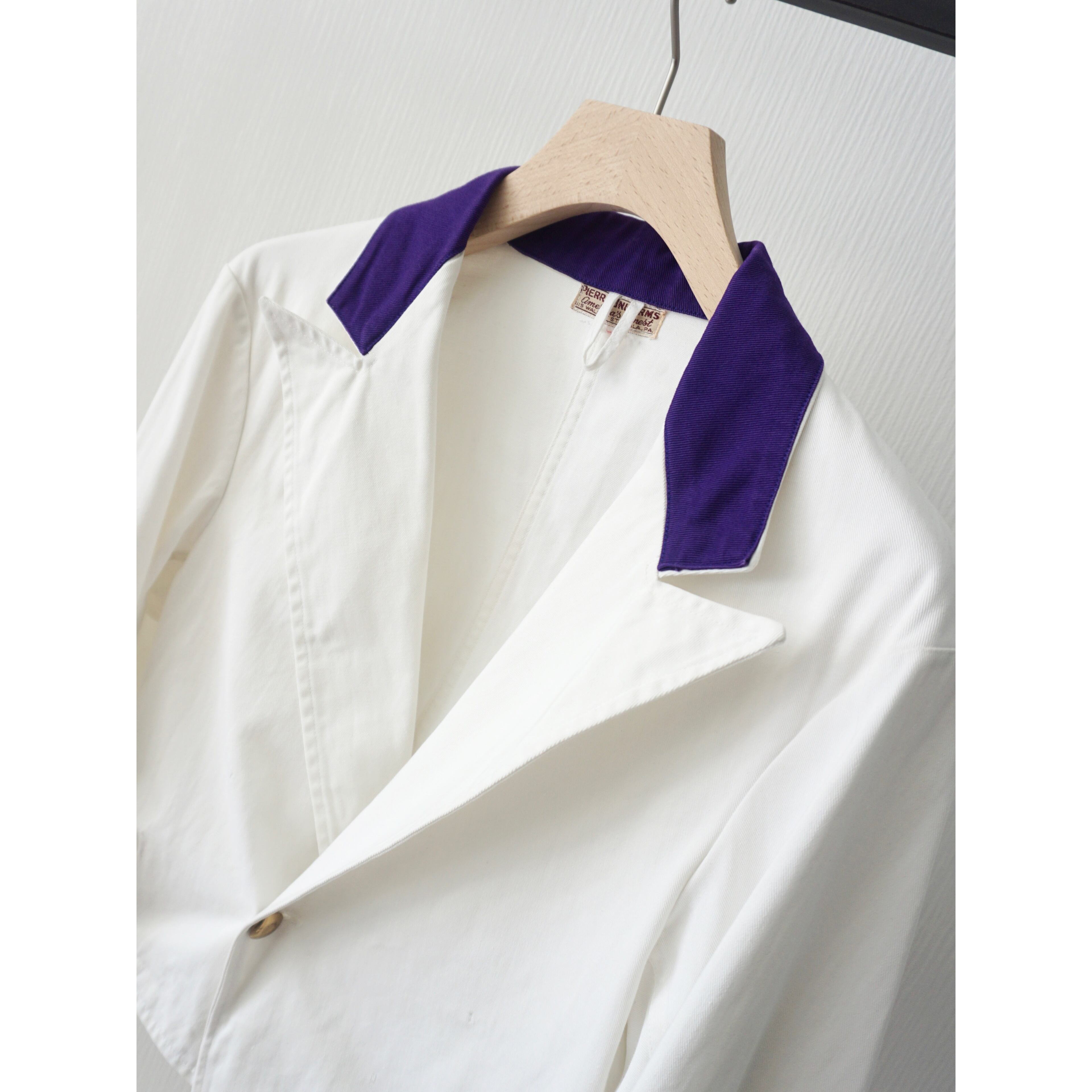 古い高密度なコットンの質感がやはり雰囲気ありますし、ホワイトにパープルの切り返しも洒落てます。。