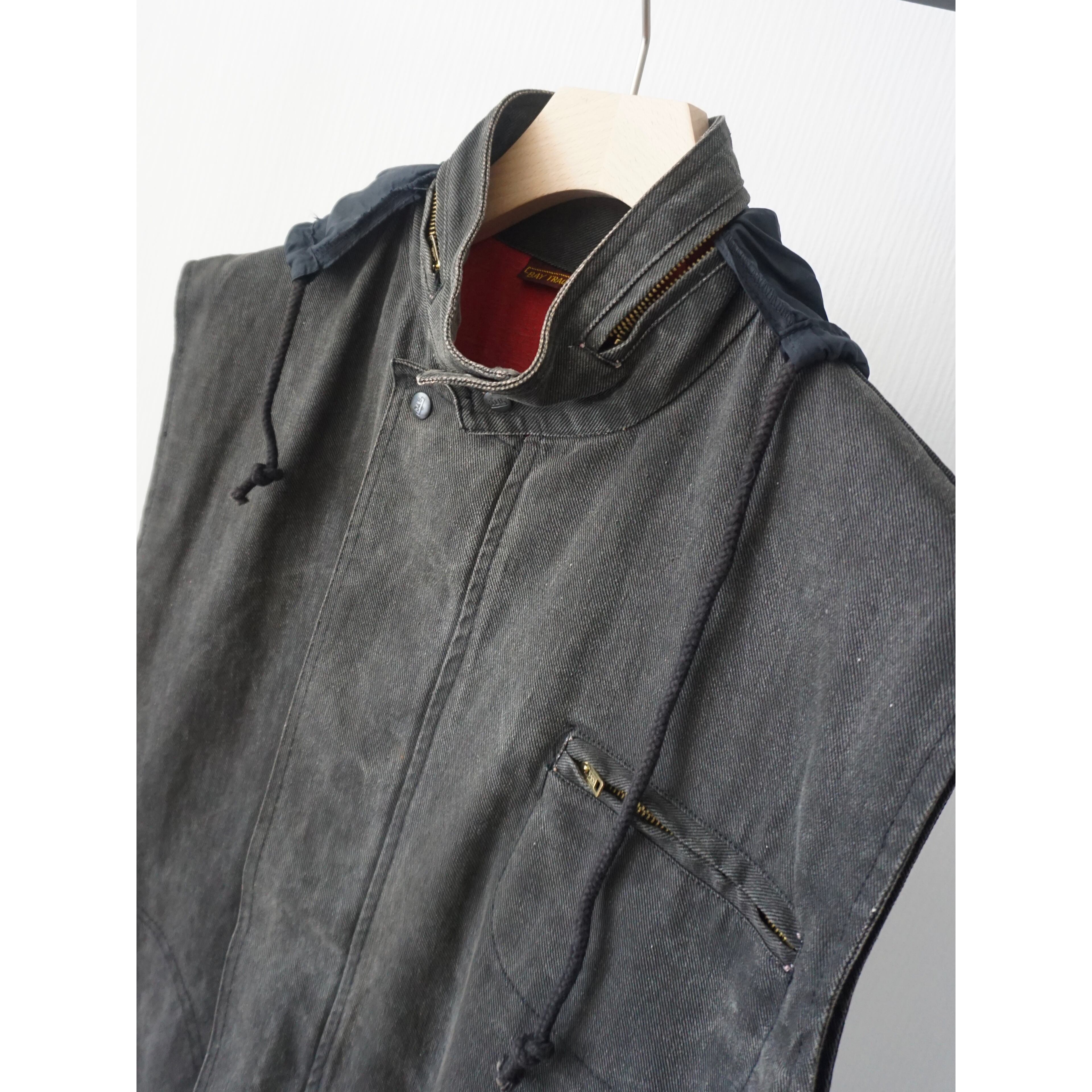 1980〜90年代頃の香港製、ブラックデニムのジップアップベスト。