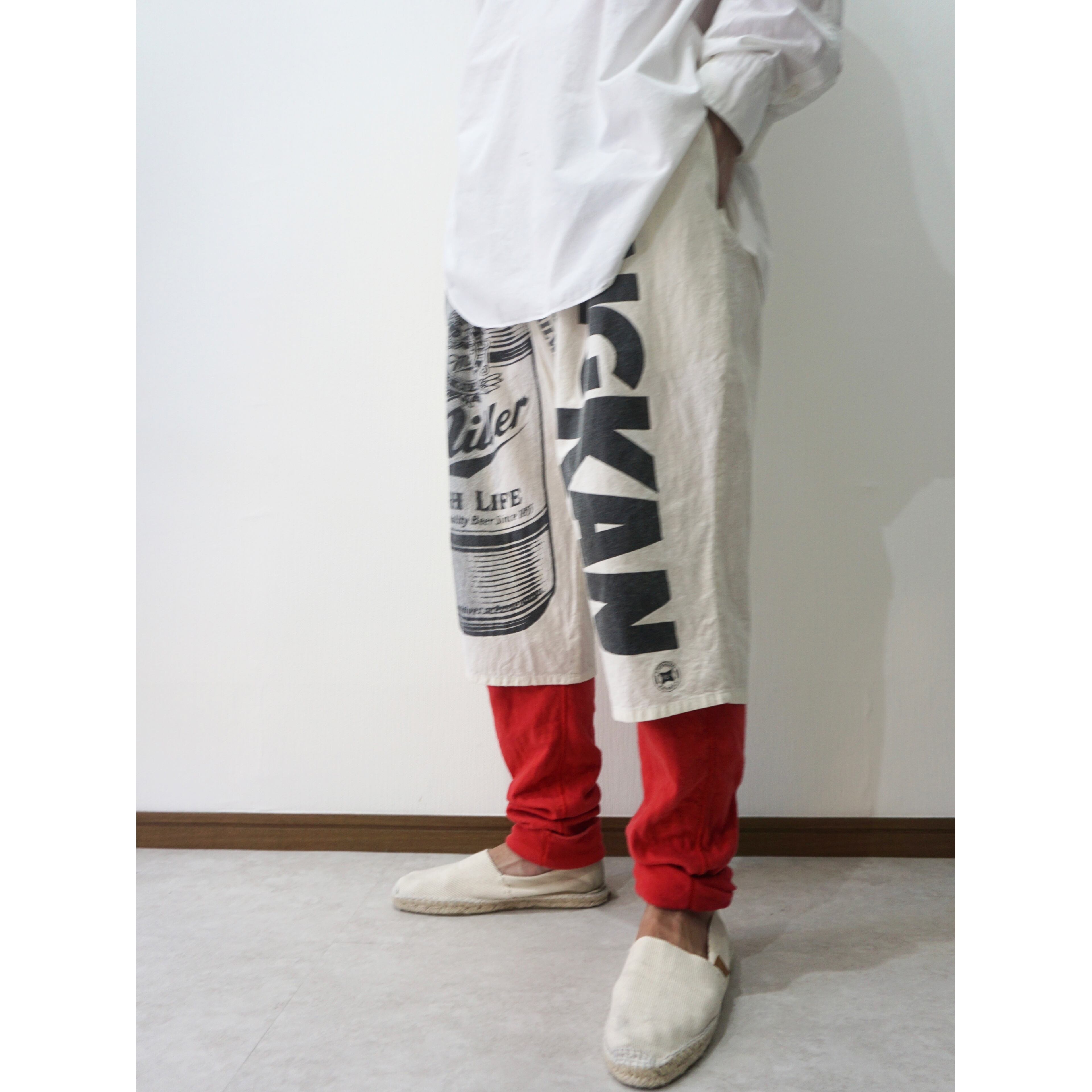 サック特有の風合いの良い生成りボディに、ブラックカラーでのアメリカのビールmillerのKING KANプリント。。イケてます☺︎