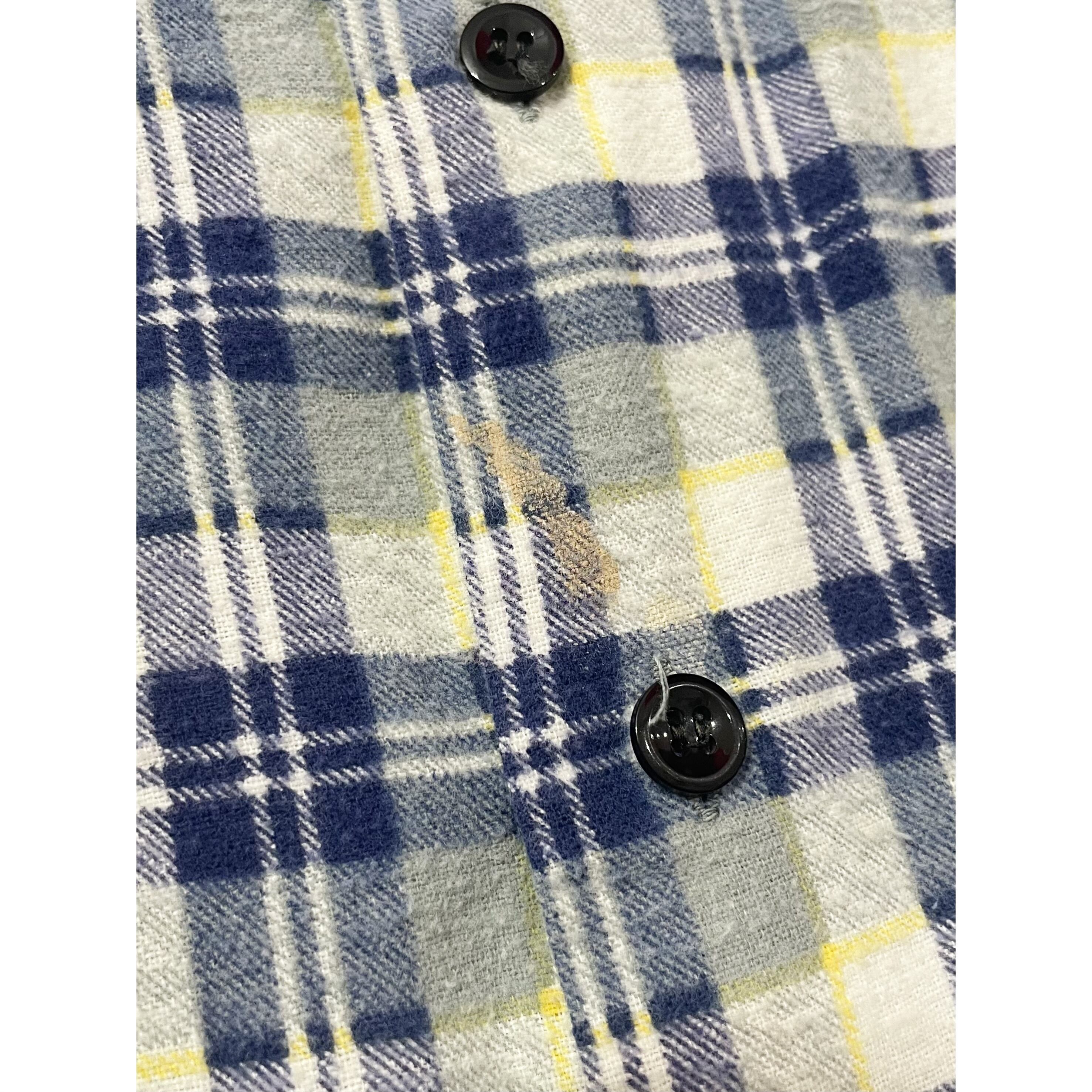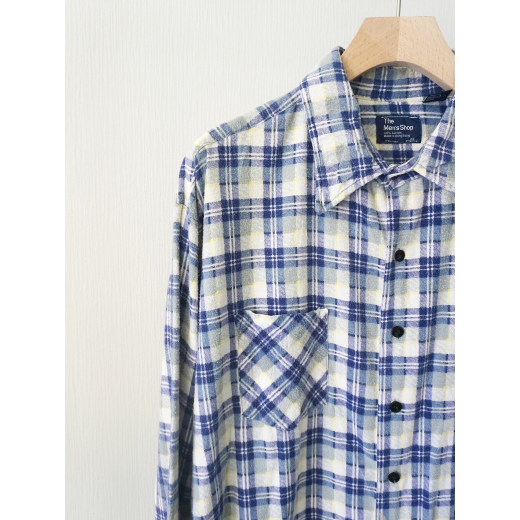 肌触りが柔らかいオールコットン素材のライトなフランネル生地に、ブルー×ホワイト×ライトグレーにさり気なくイエローといった好配色なチェックパターンが良い一着☺︎