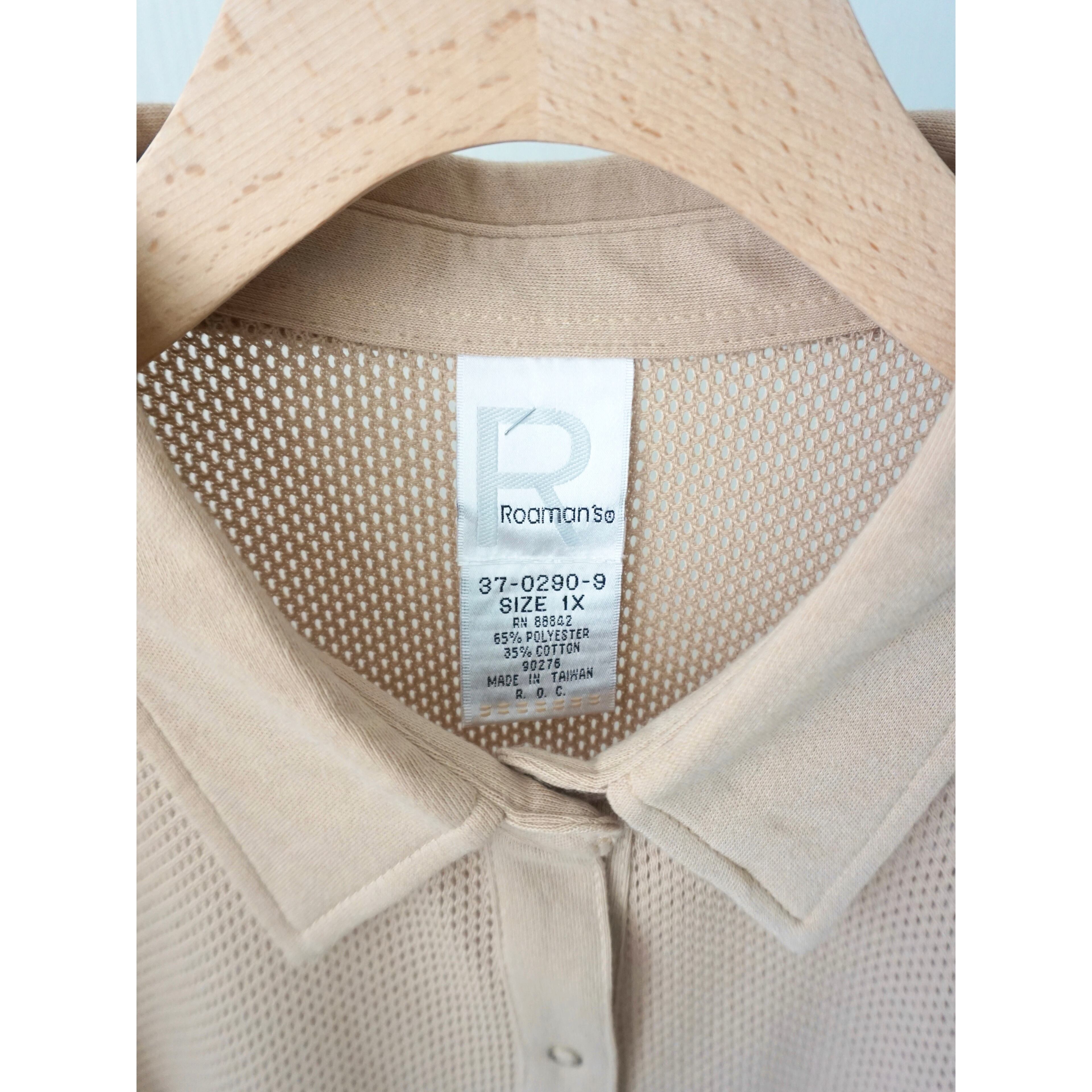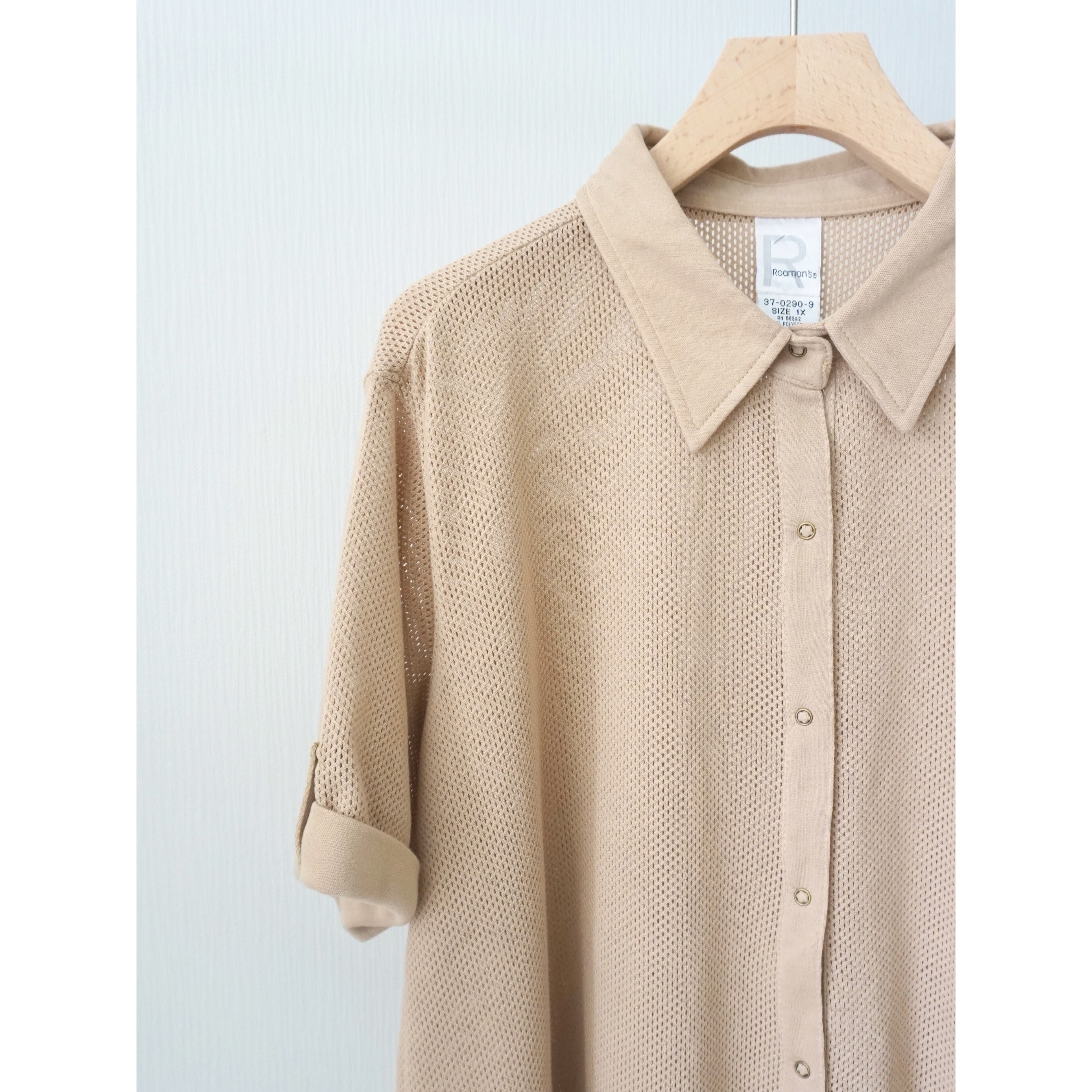 汎用性高いベージュカラーに、細かなメッシュデザイン、フロントスナップボタンで開閉できる半袖シャツスタイル。被りタイプのメッシュよりも使い勝手良い一着です☺︎