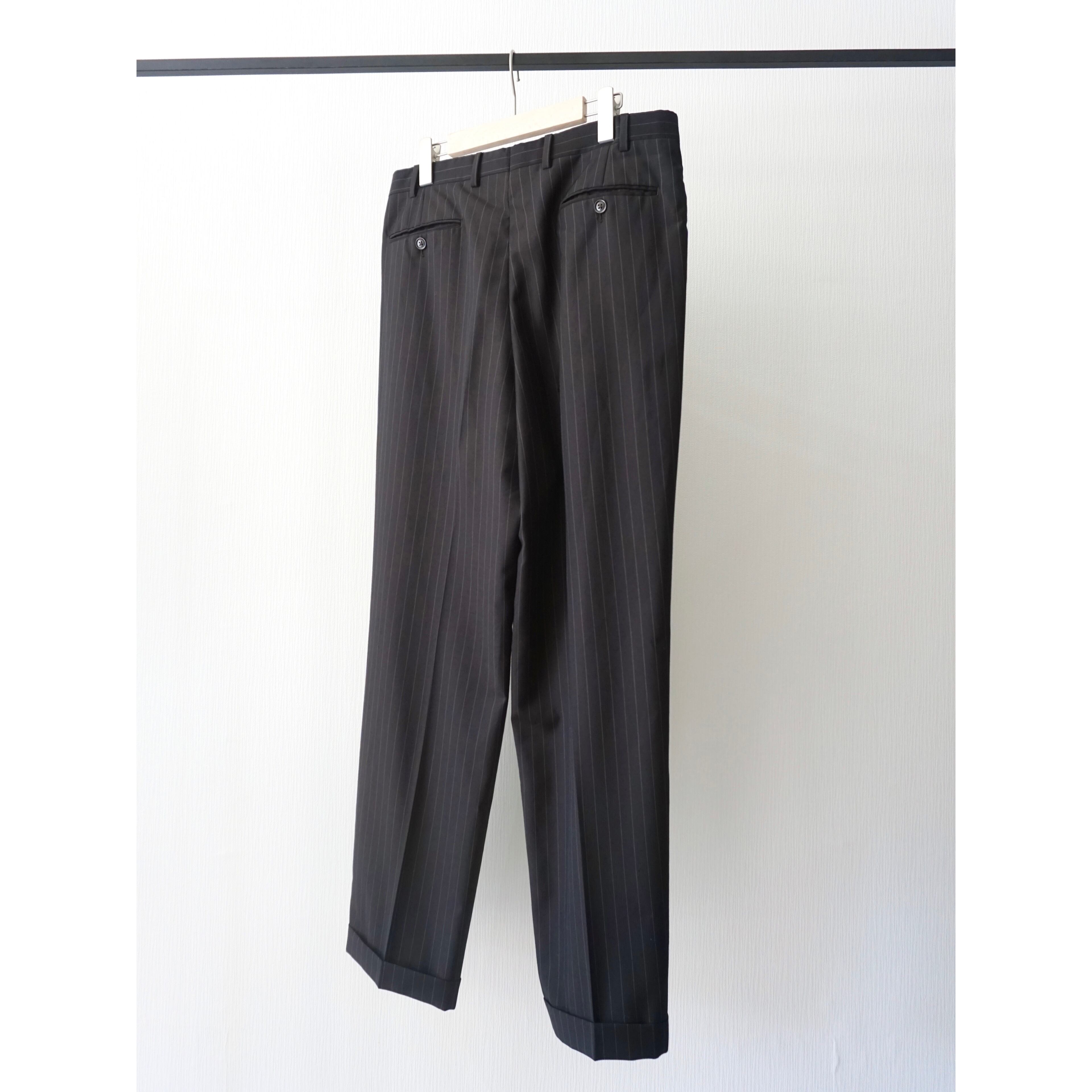 "ARMANI COLLEZIONI" pin-stripe pattern summer wool wide slacks