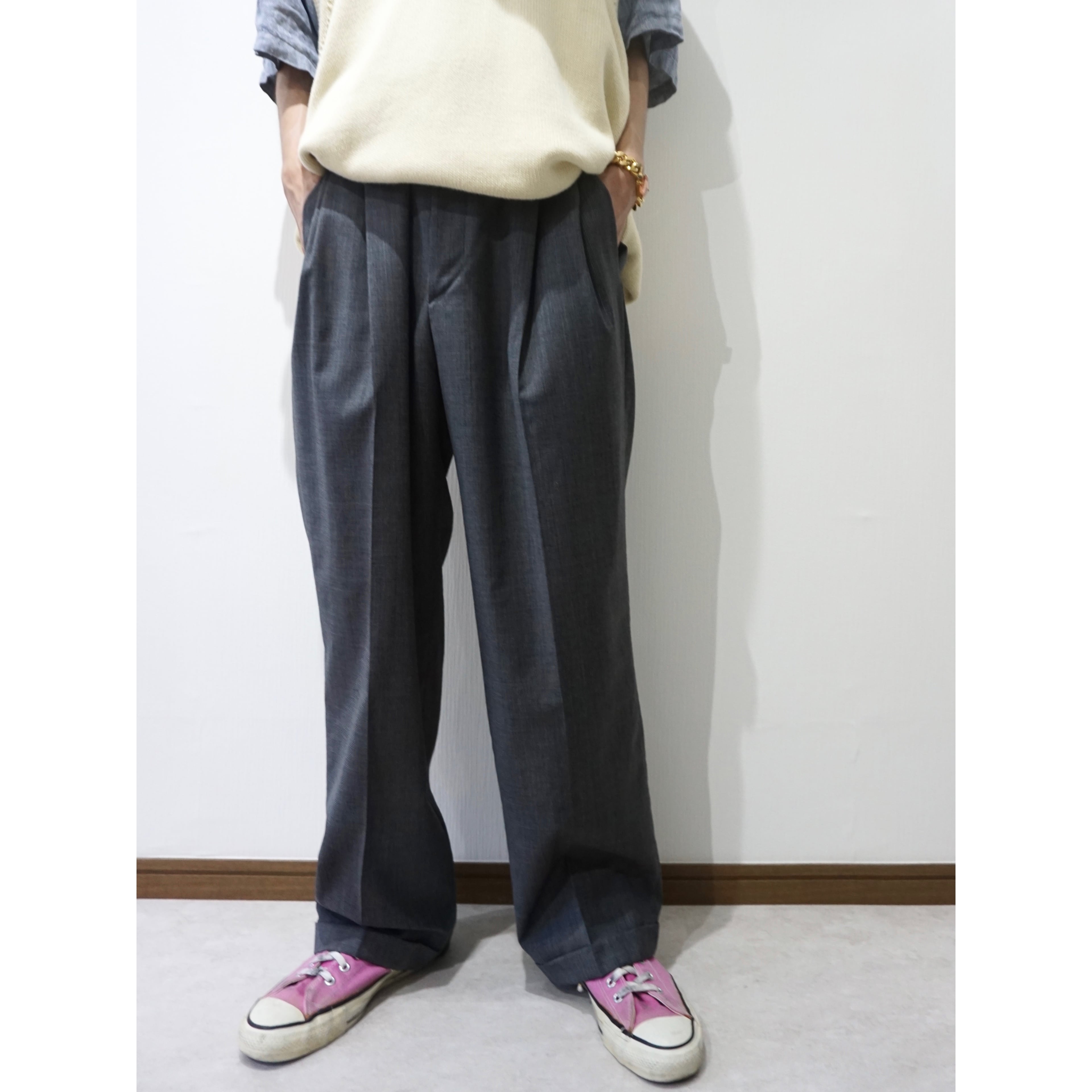 ウエスト2タック仕様の汎用性高いワイドテーパードシルエット。裾はダブルとなります。