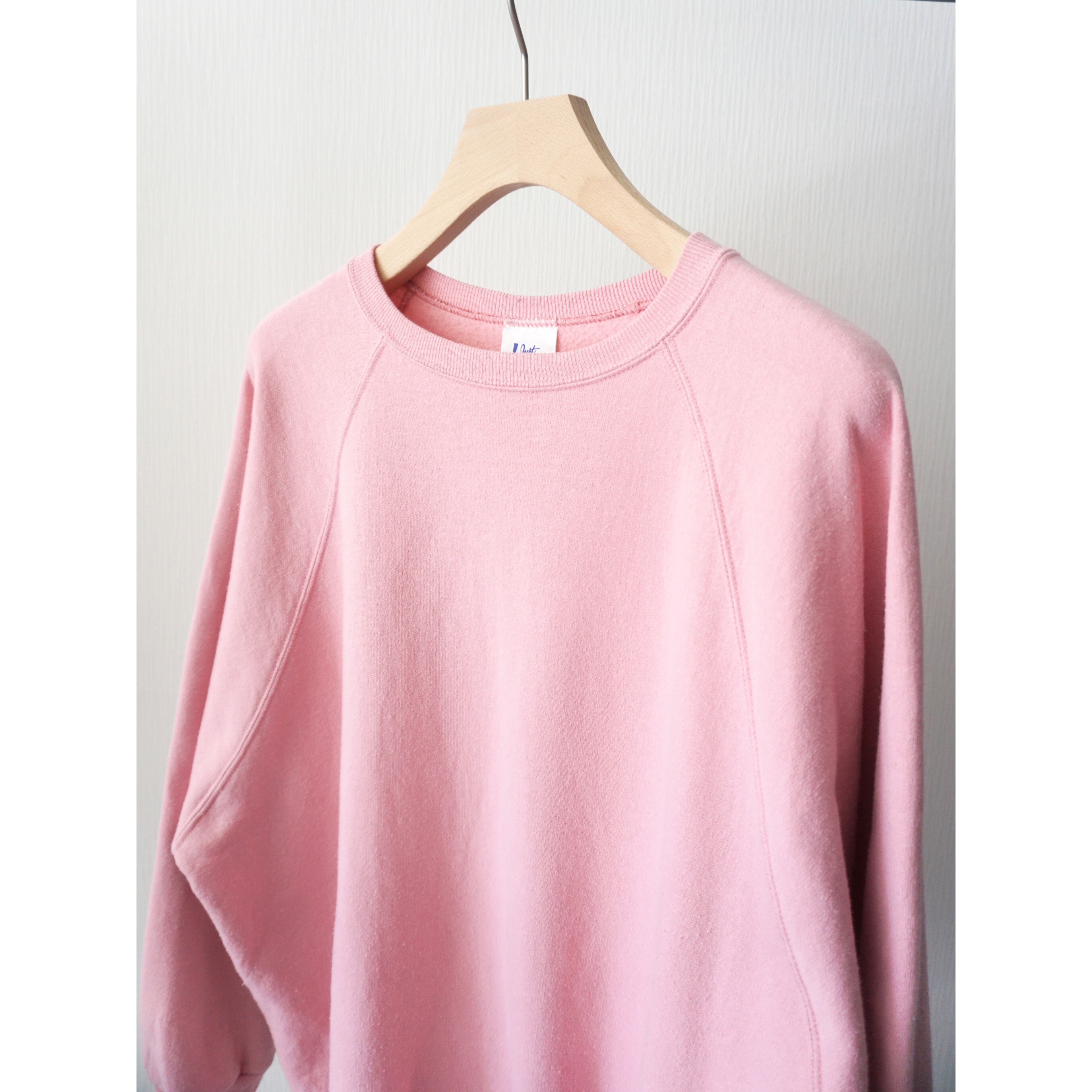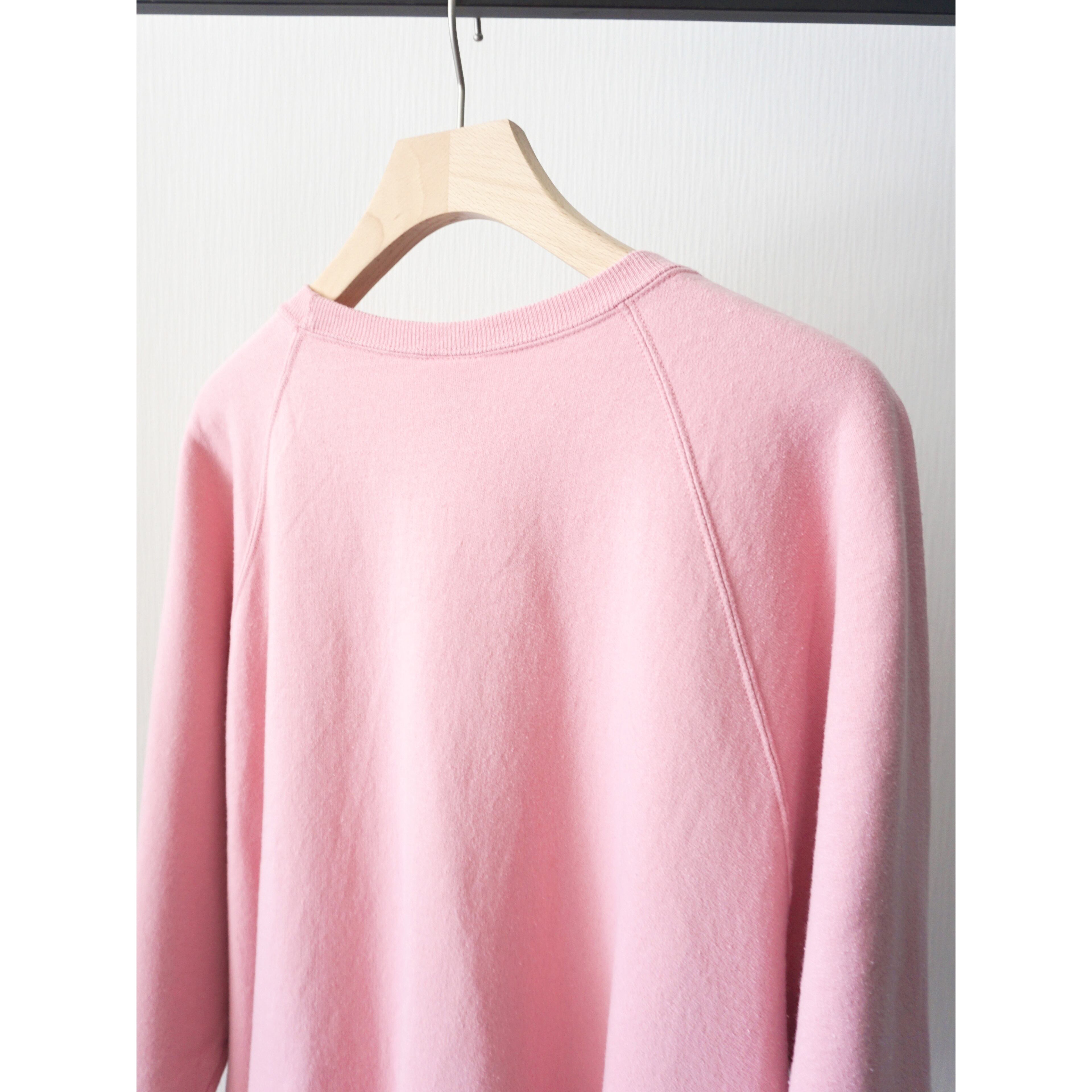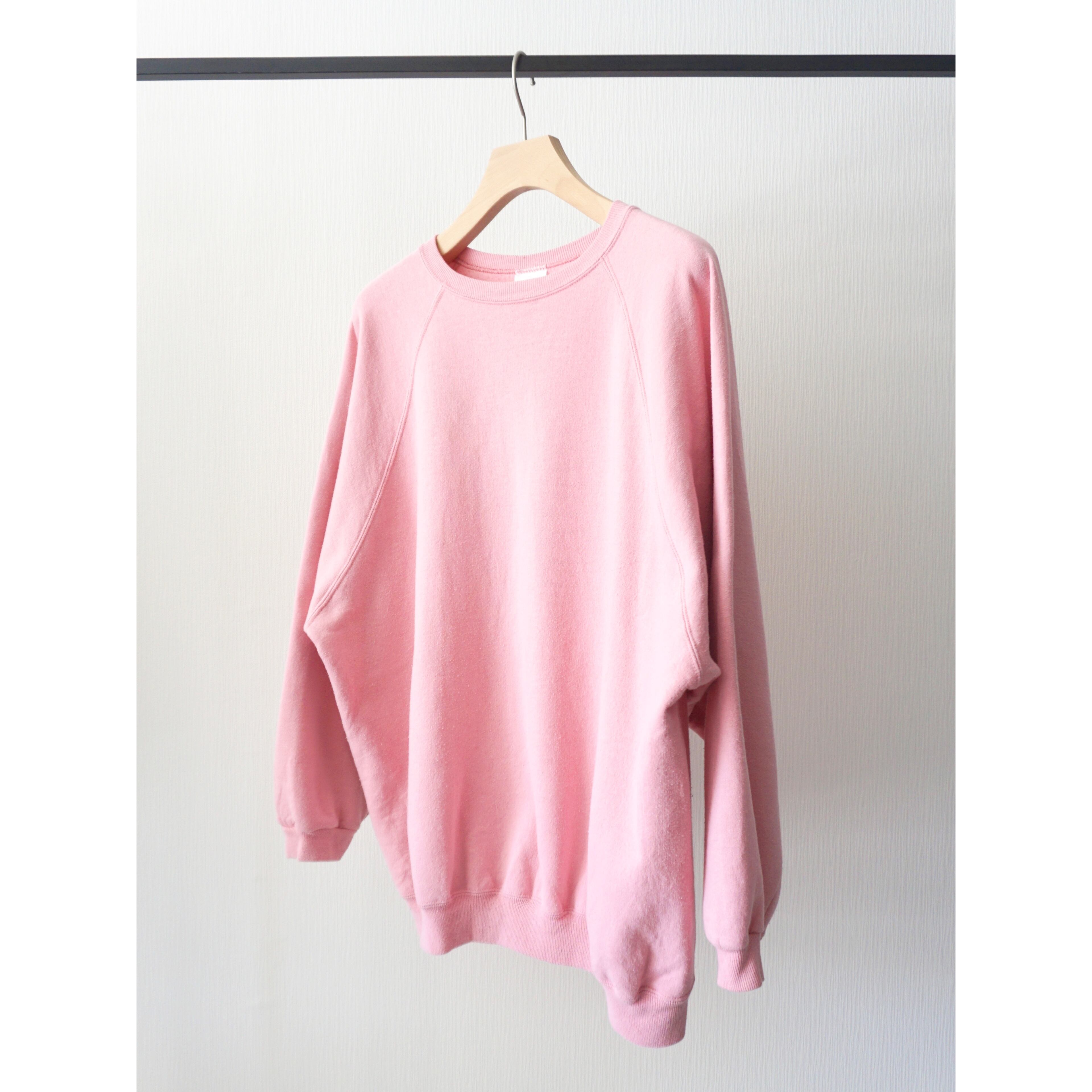 淡いピンクカラーが良い、無地のラグランスウェット。