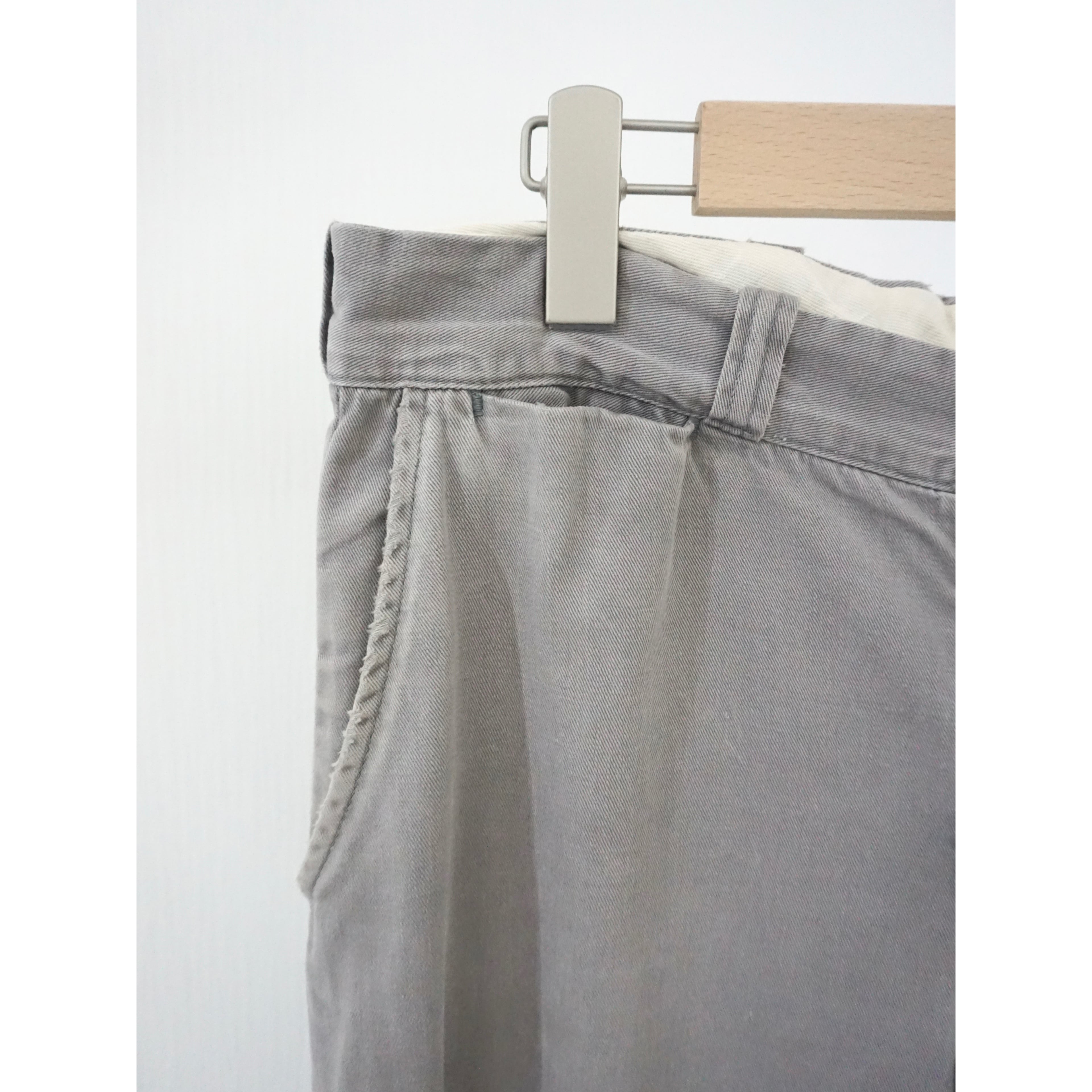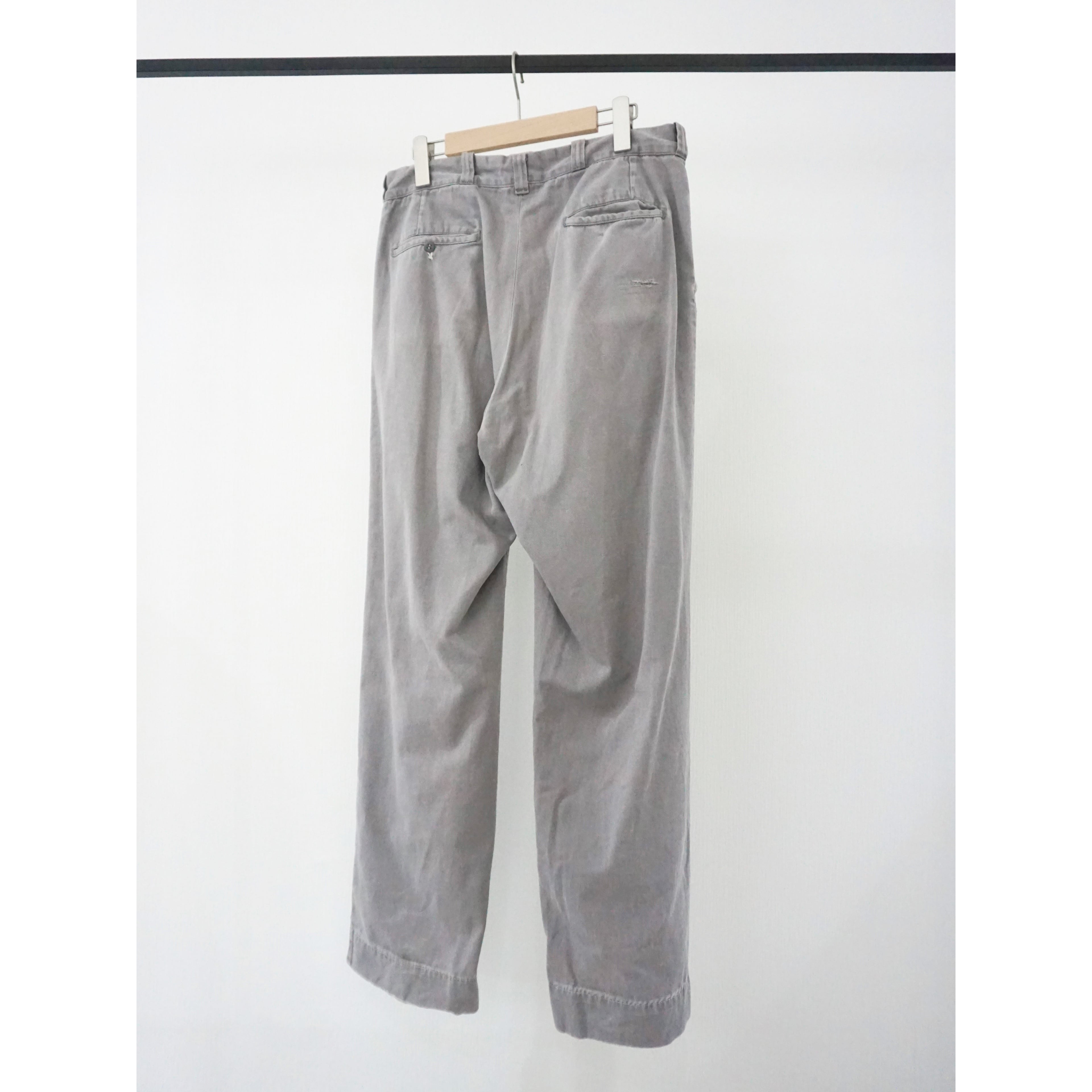 ヴィンテージワークウェアならではなフェード、ヤレ感のあるライトグレーの色味に、各所に同色で施されたやりすぎ感の無いリペアが大人な雰囲気のある一本です。
