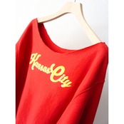 "Kansas City"筆記体ラバープリントが入る一着。