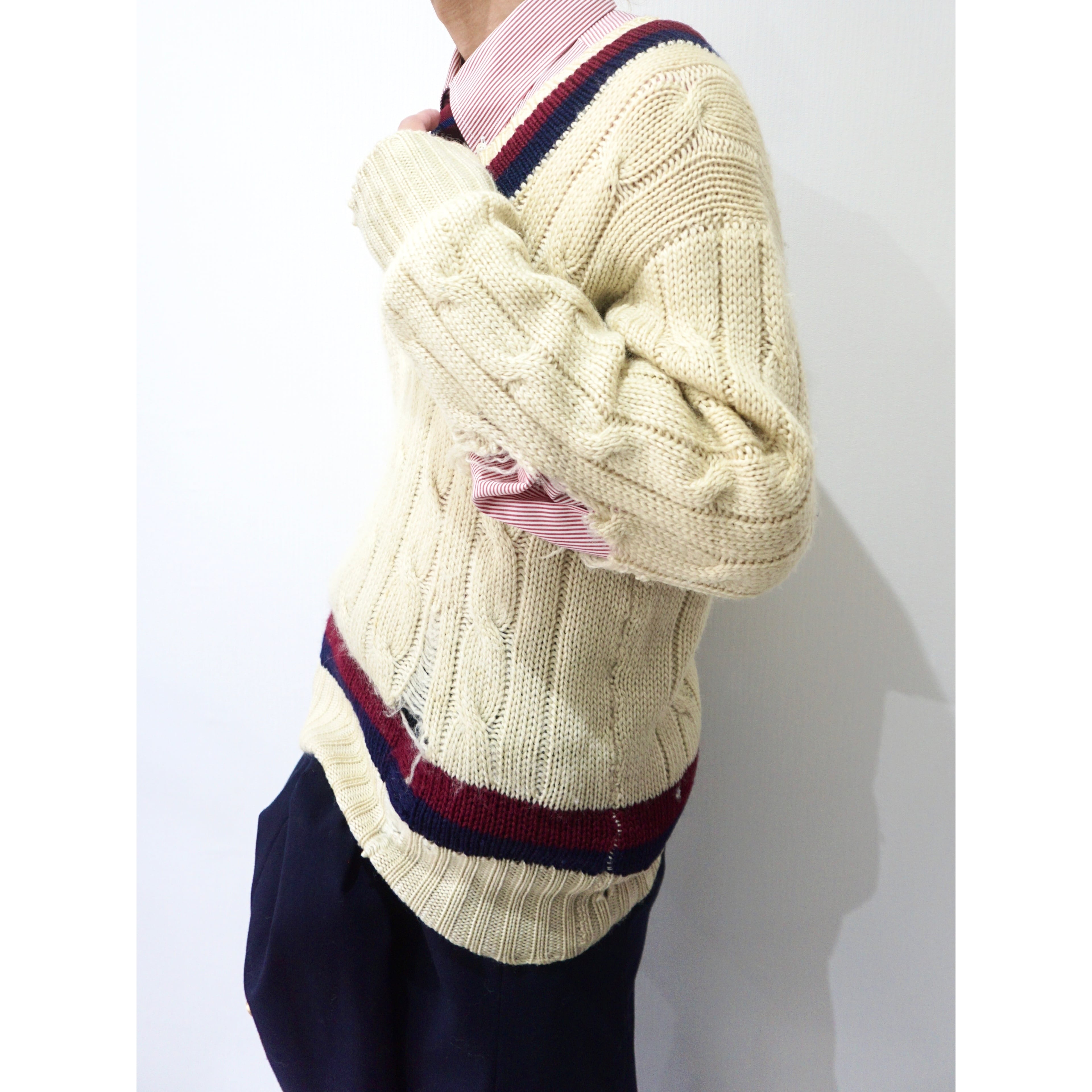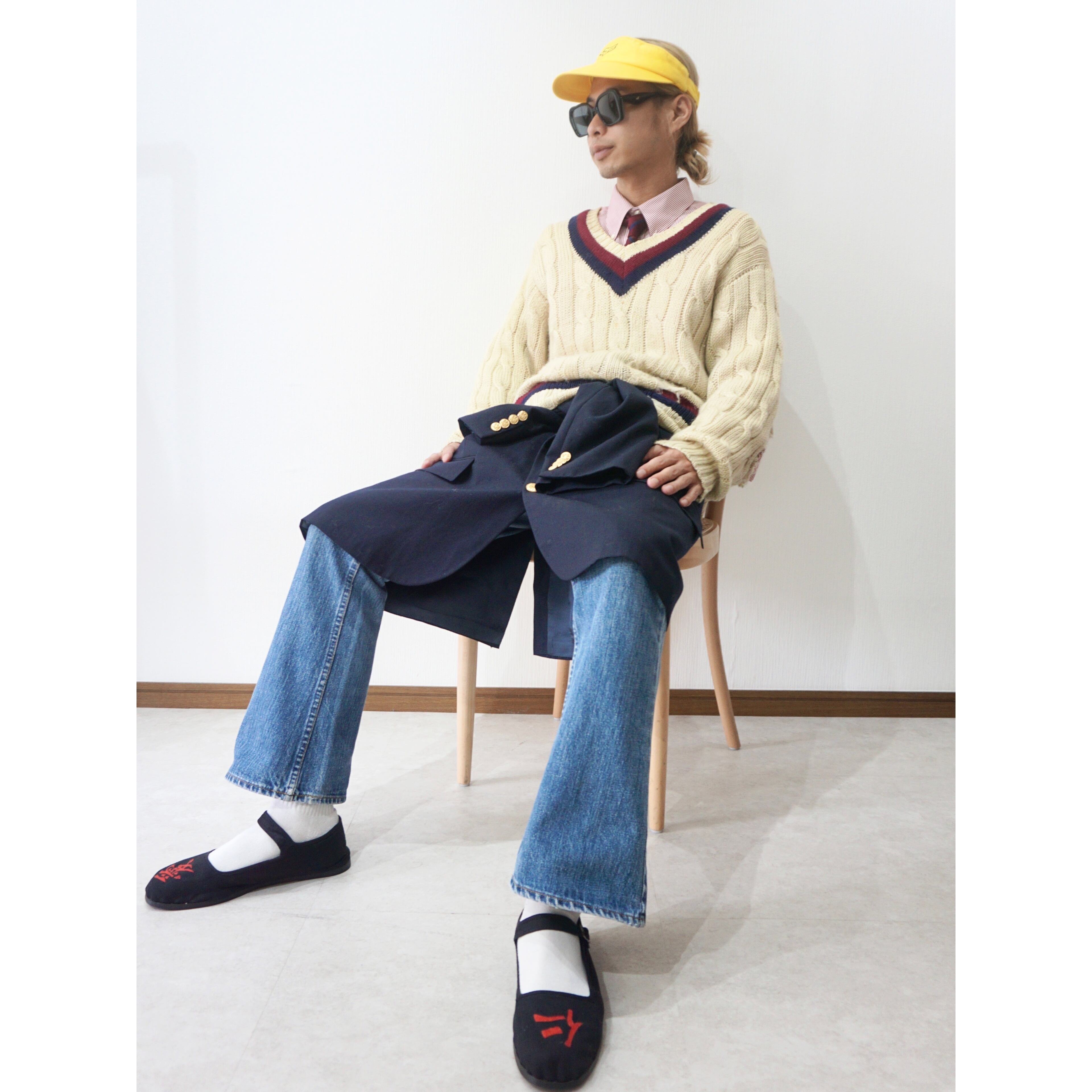 ここ近年人気なボロですが、まさかのチルデンニットでこの感じは、ありそうで無い新鮮な一着だと思います。