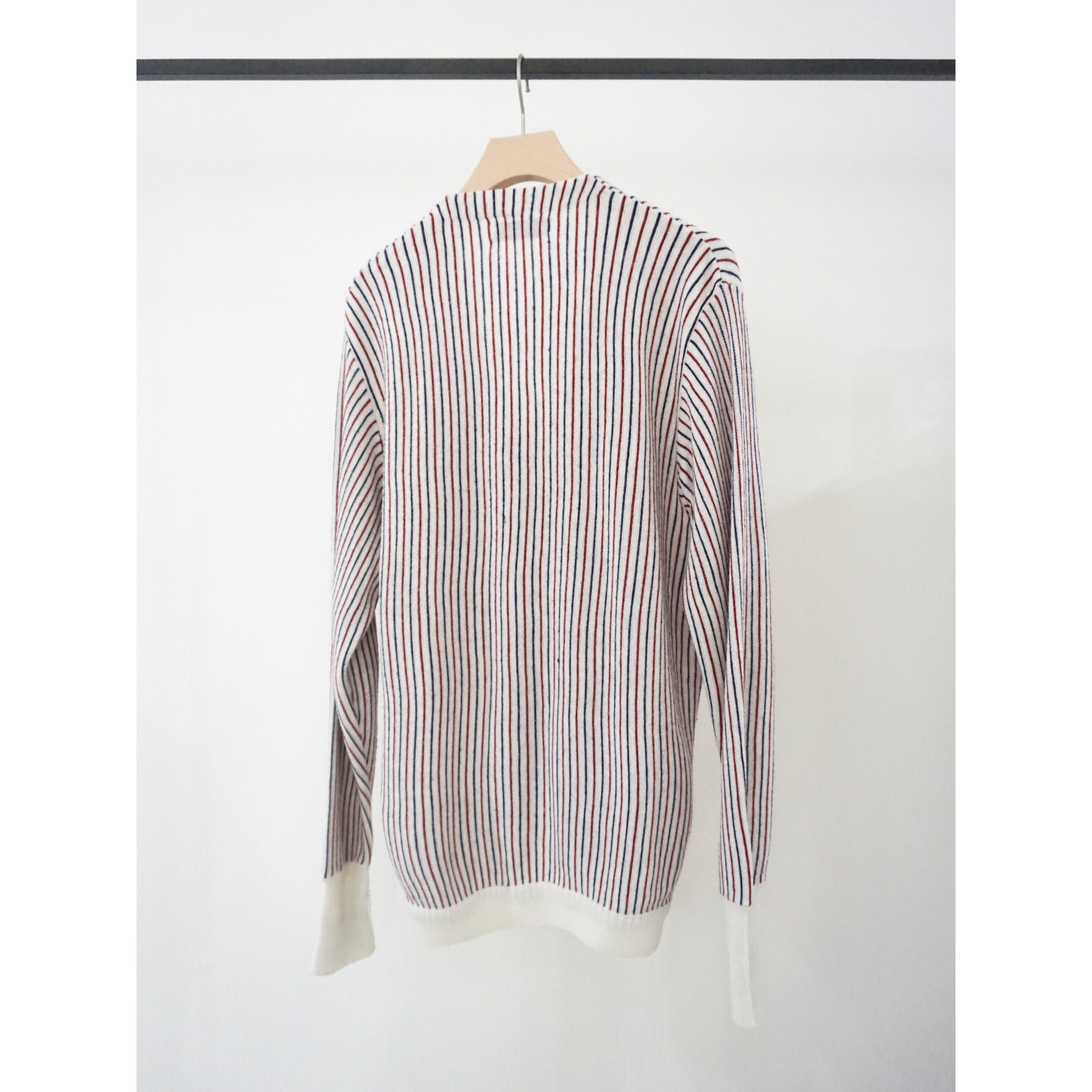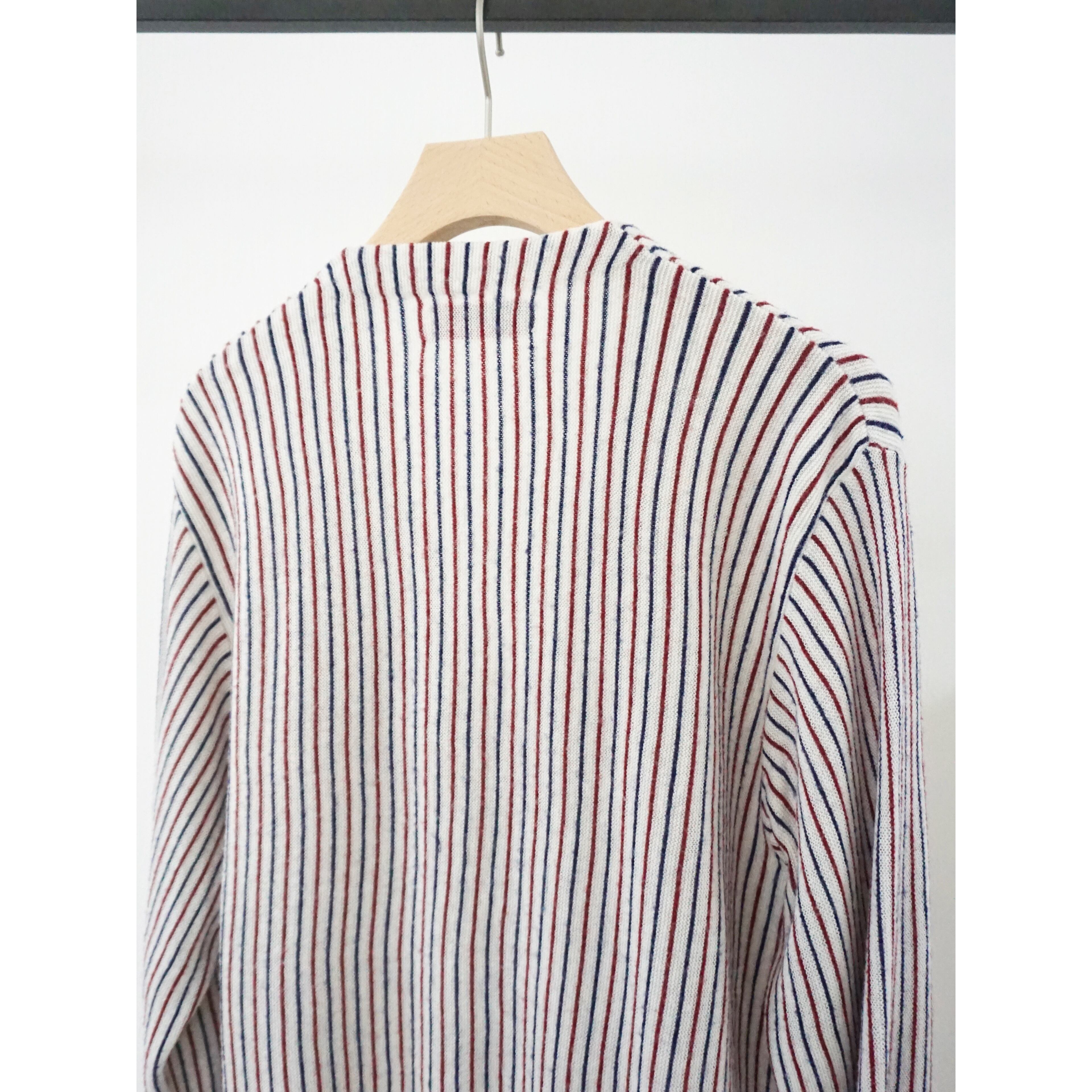 ホワイトにレッド×ネイビーのトリコロールカラーでのストライプ柄。