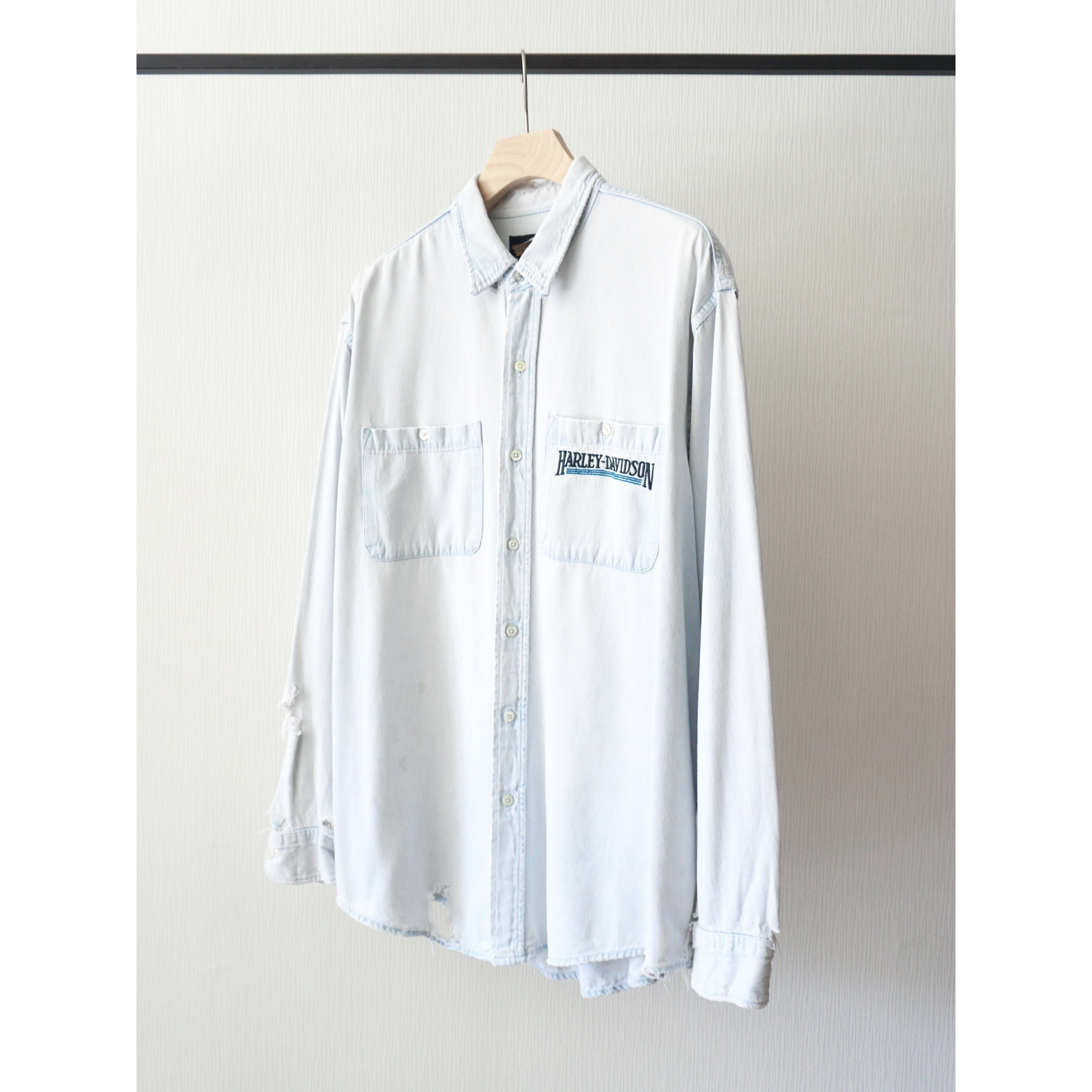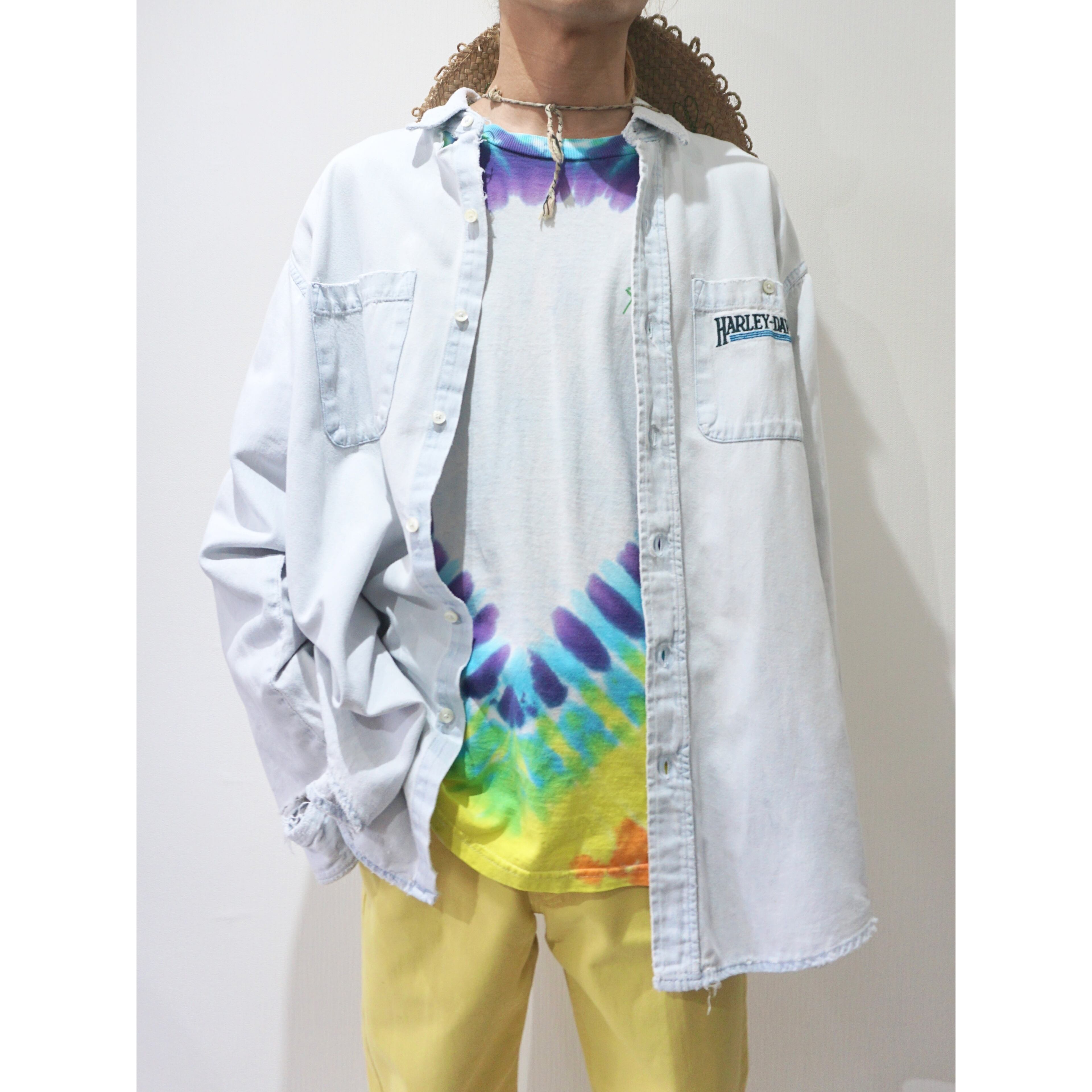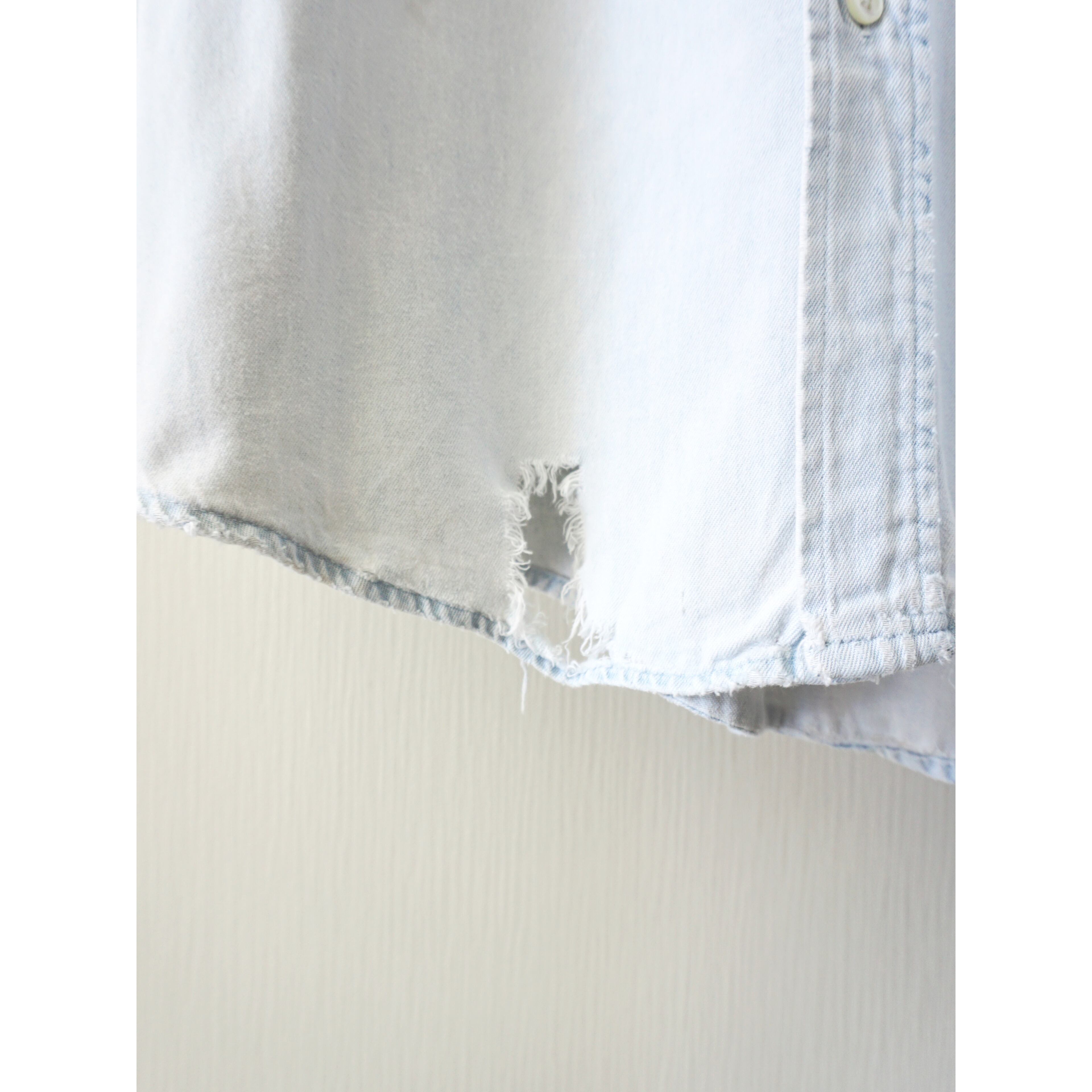 おそらく前所有者によるブリーチによるアイスブルーまでにがっつり色落ちした色味、各所にリアルなクラッシュが入る最高にクールな雰囲気♪