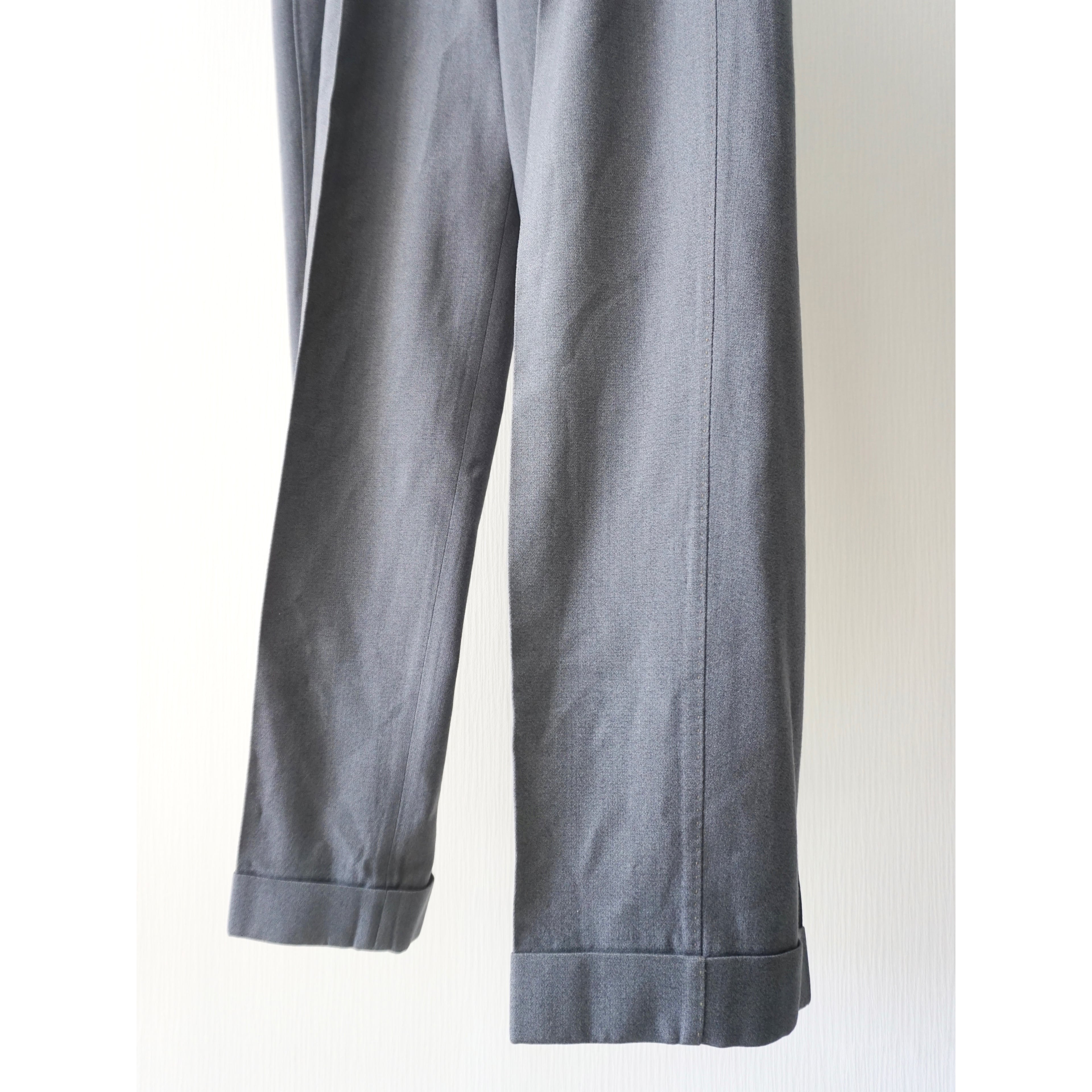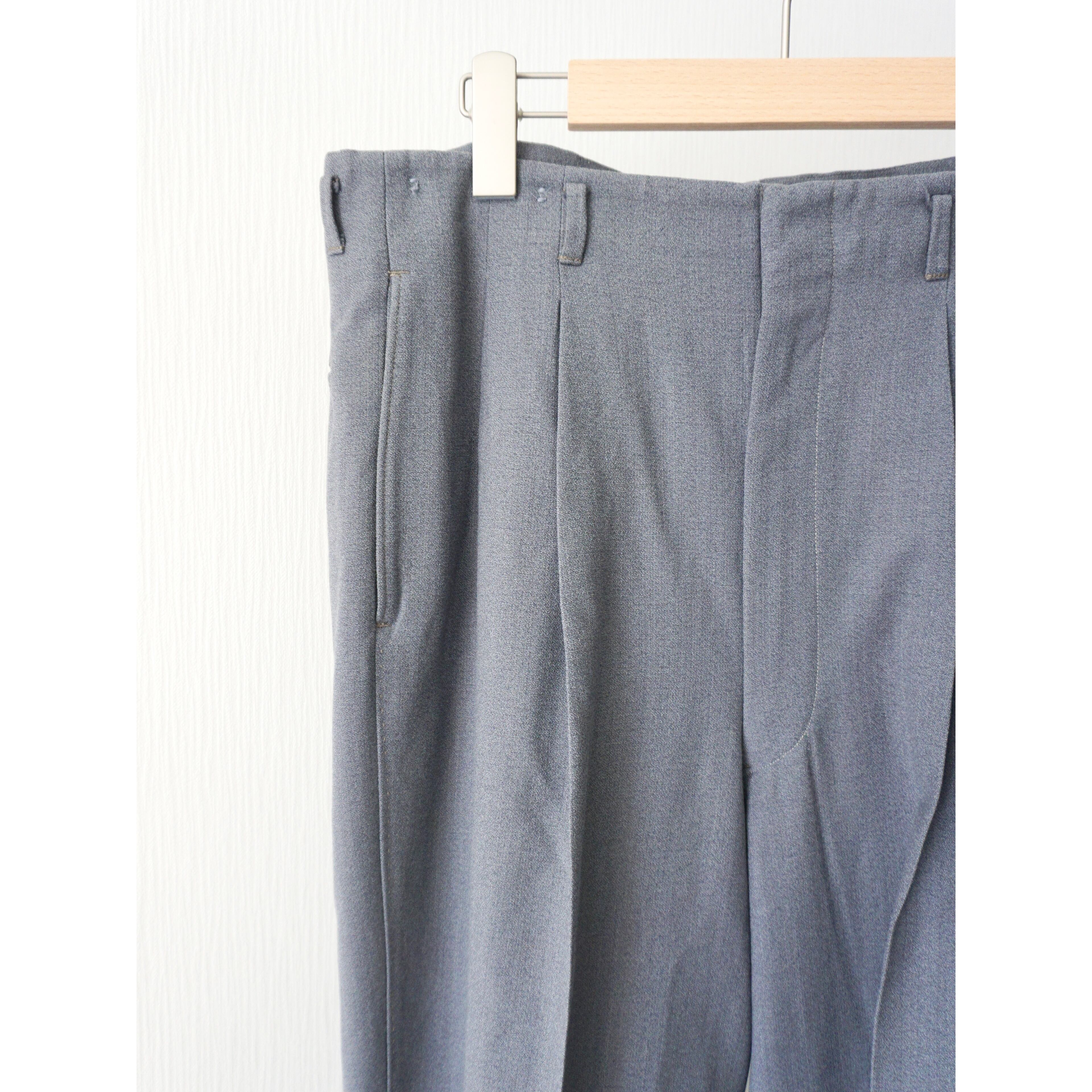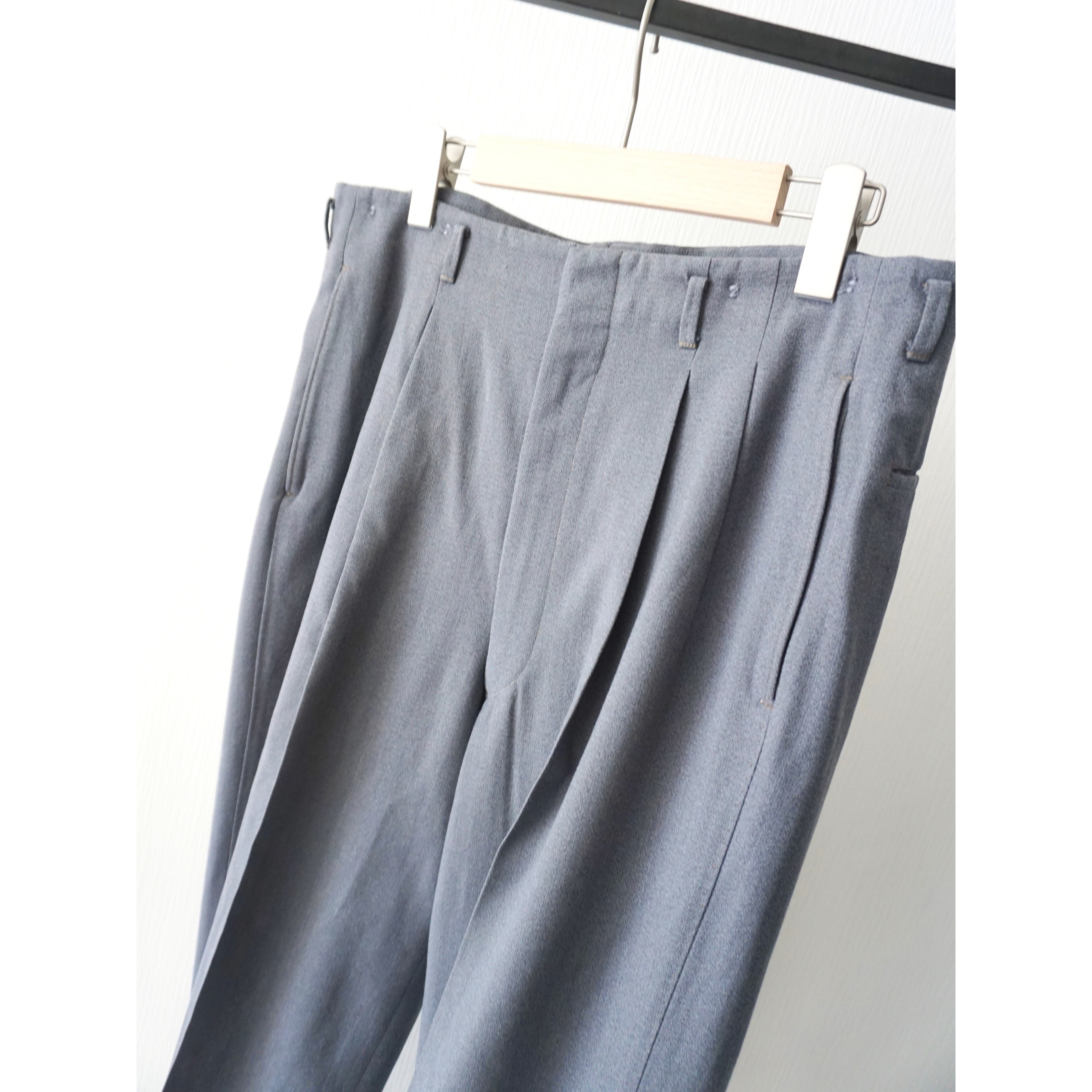 汎用性高いグレーカラーに2タック仕様のワイドテーパードシルエット。裾はダブル仕様となります