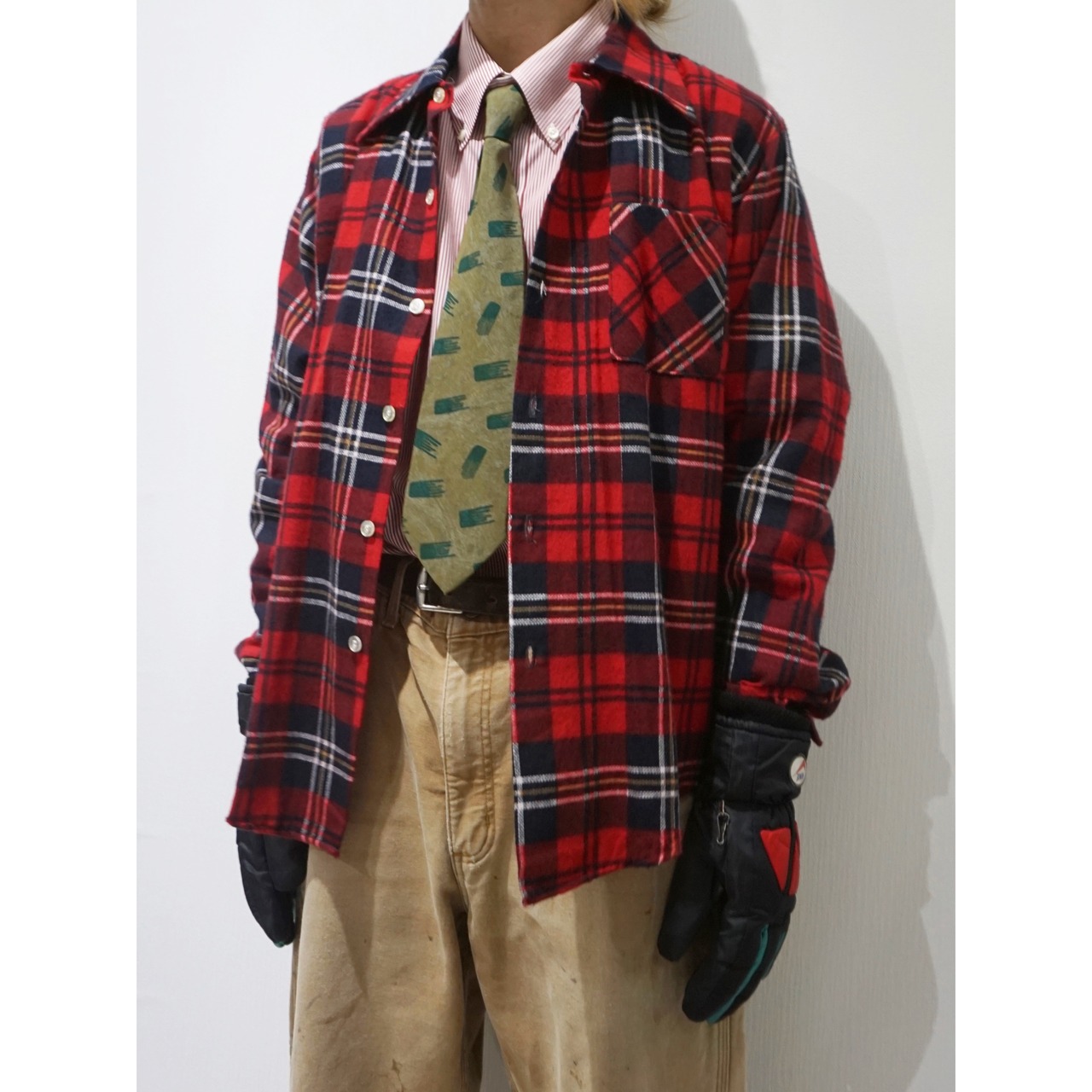 1970年代頃のチェック柄プリントフランネルシャツとなります。