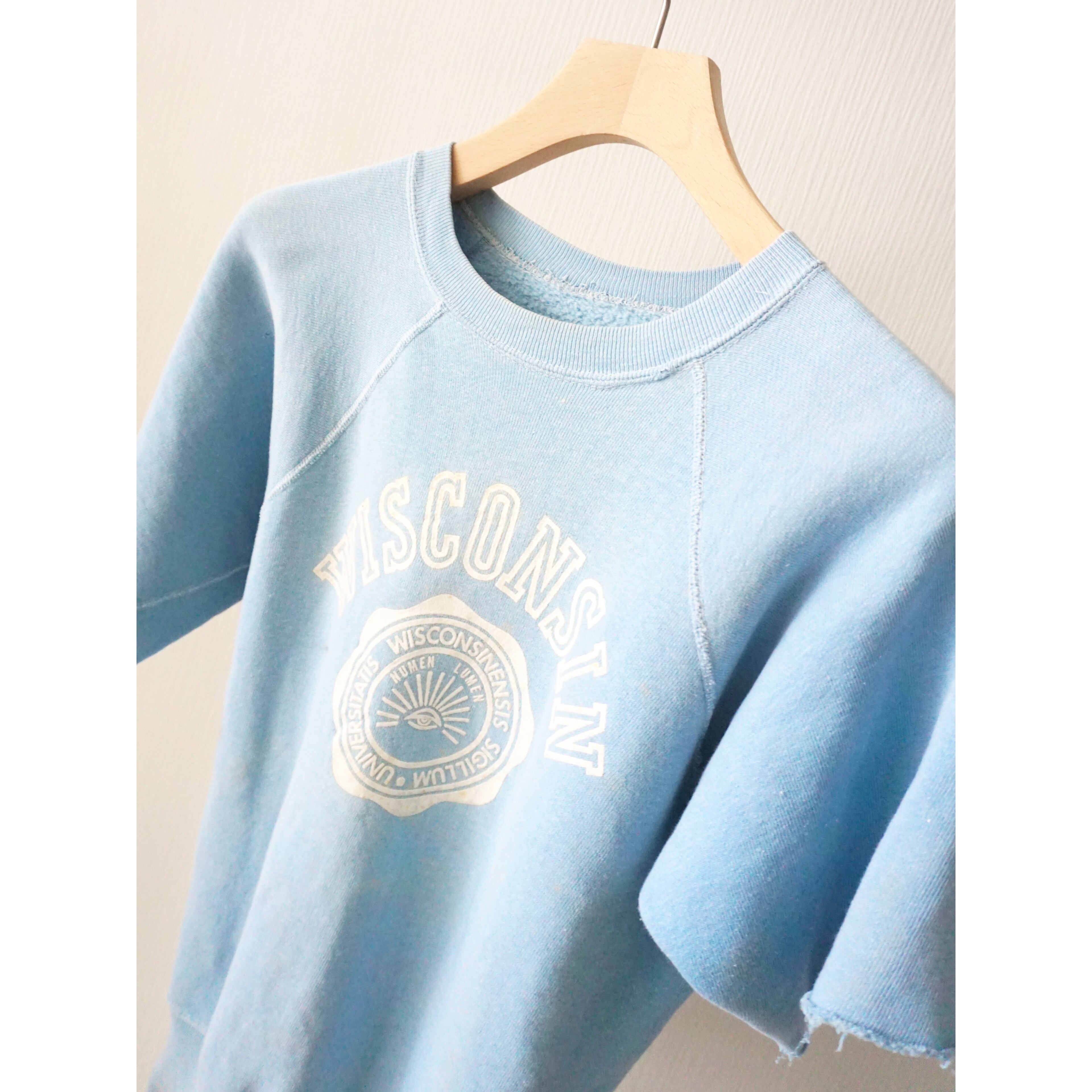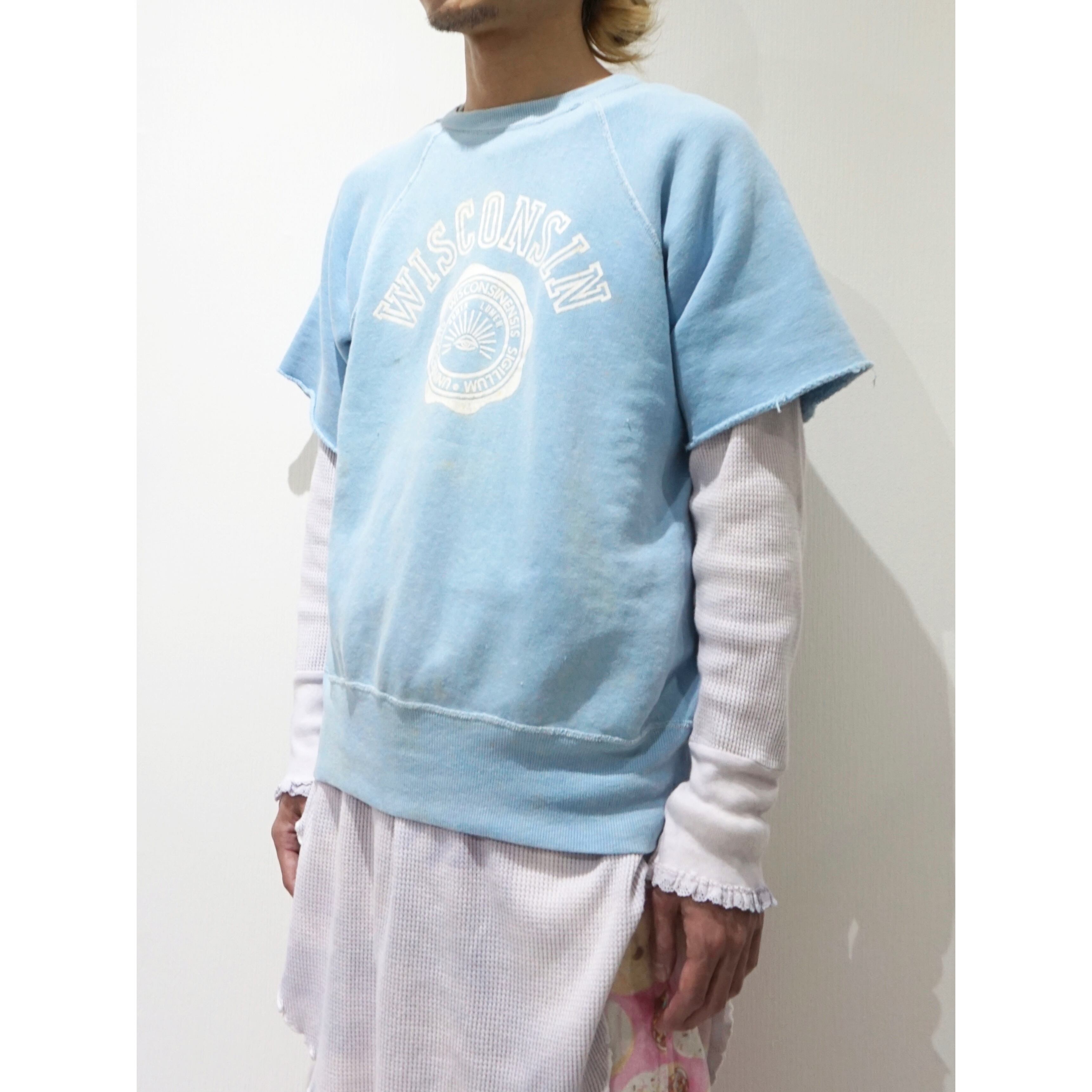 1960s vintage cut-offed sleeve "Wisconsin" flocky print sweat shirt