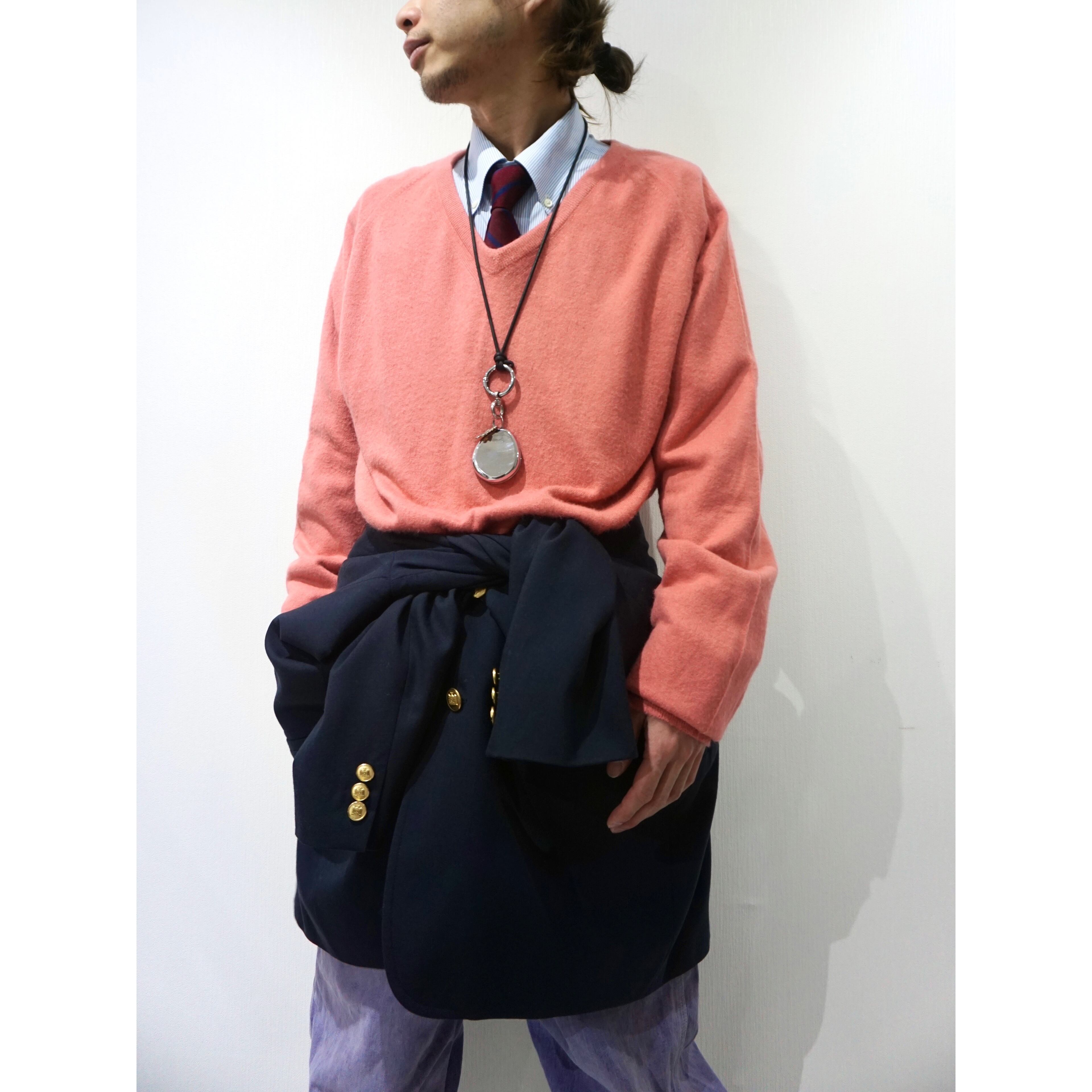 1980s vintage pink color cashmere? v-neck knit sweater made in USA
