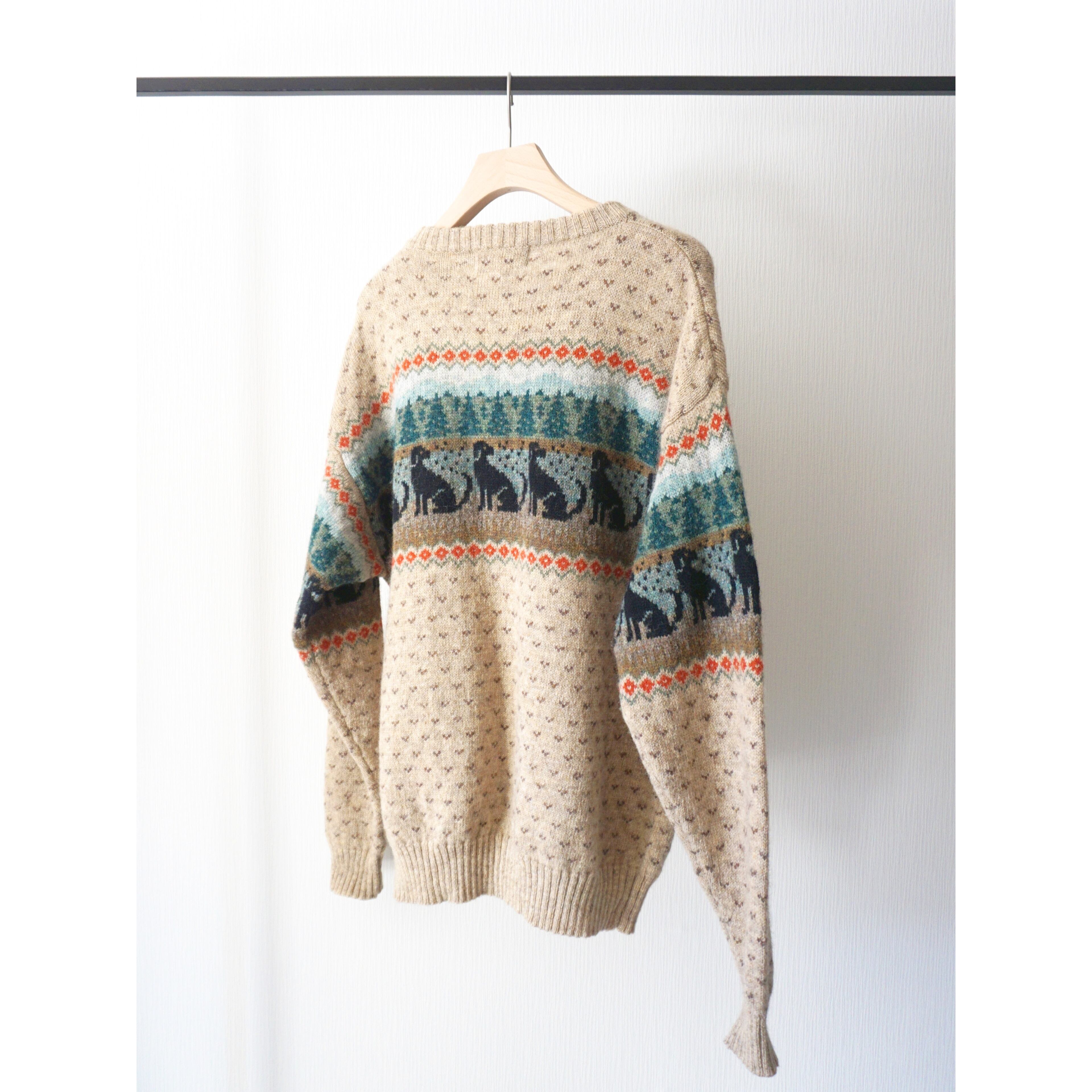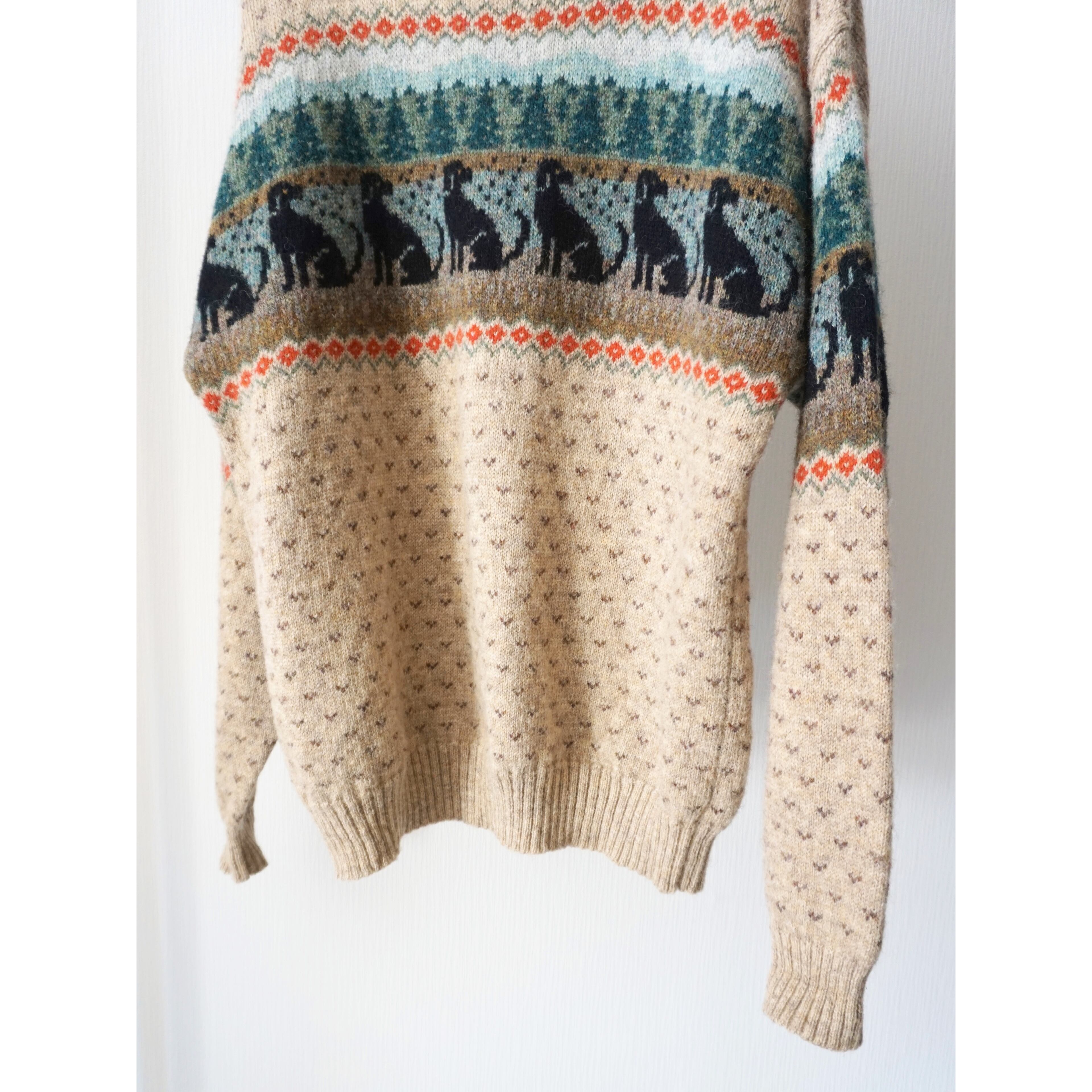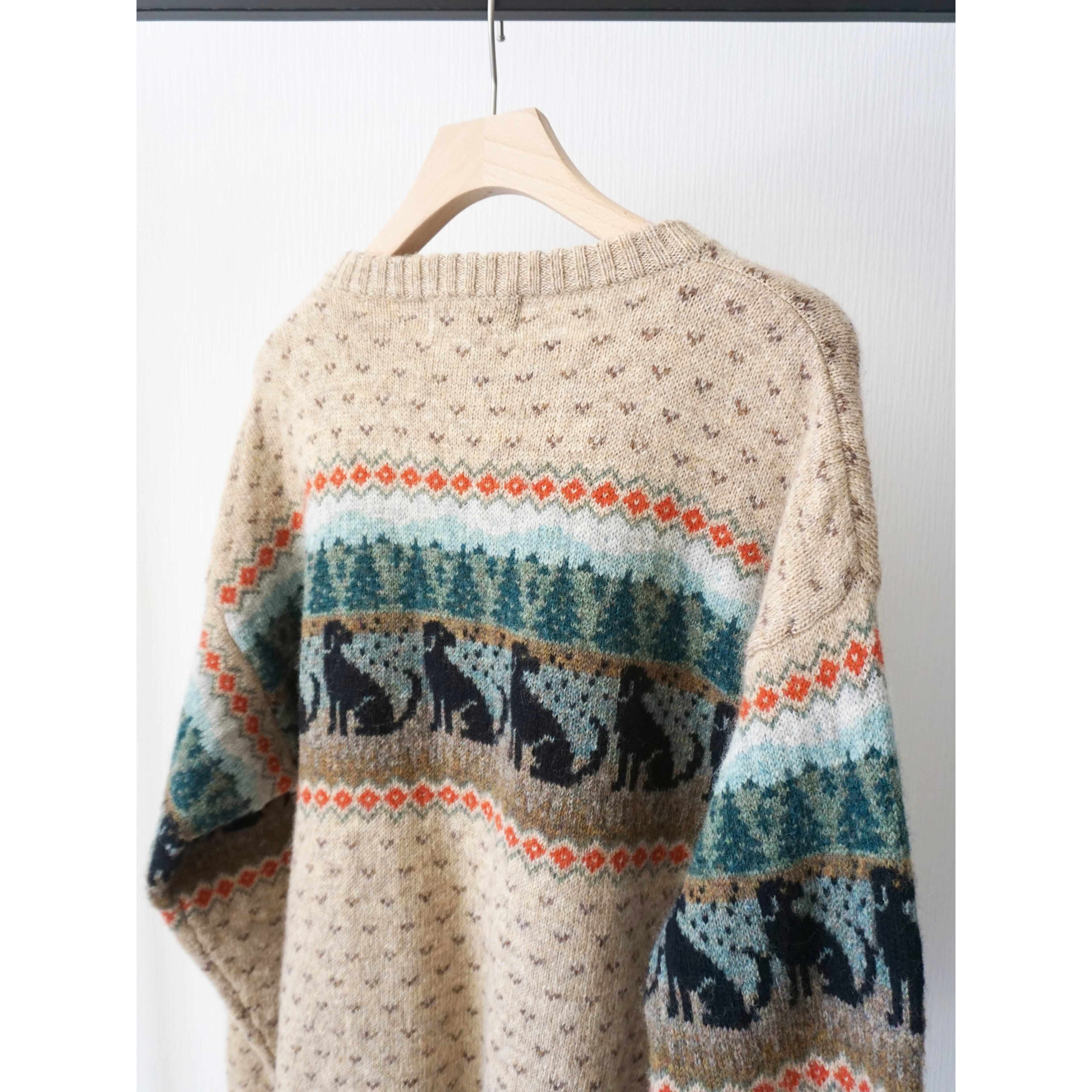 暖かみのあるベージュベースに他色が織り交ぜられた奥行きのある色味に、何よりフロント、袖、バック全面に入るワンちゃんの柄が最高に可愛い一着☺︎