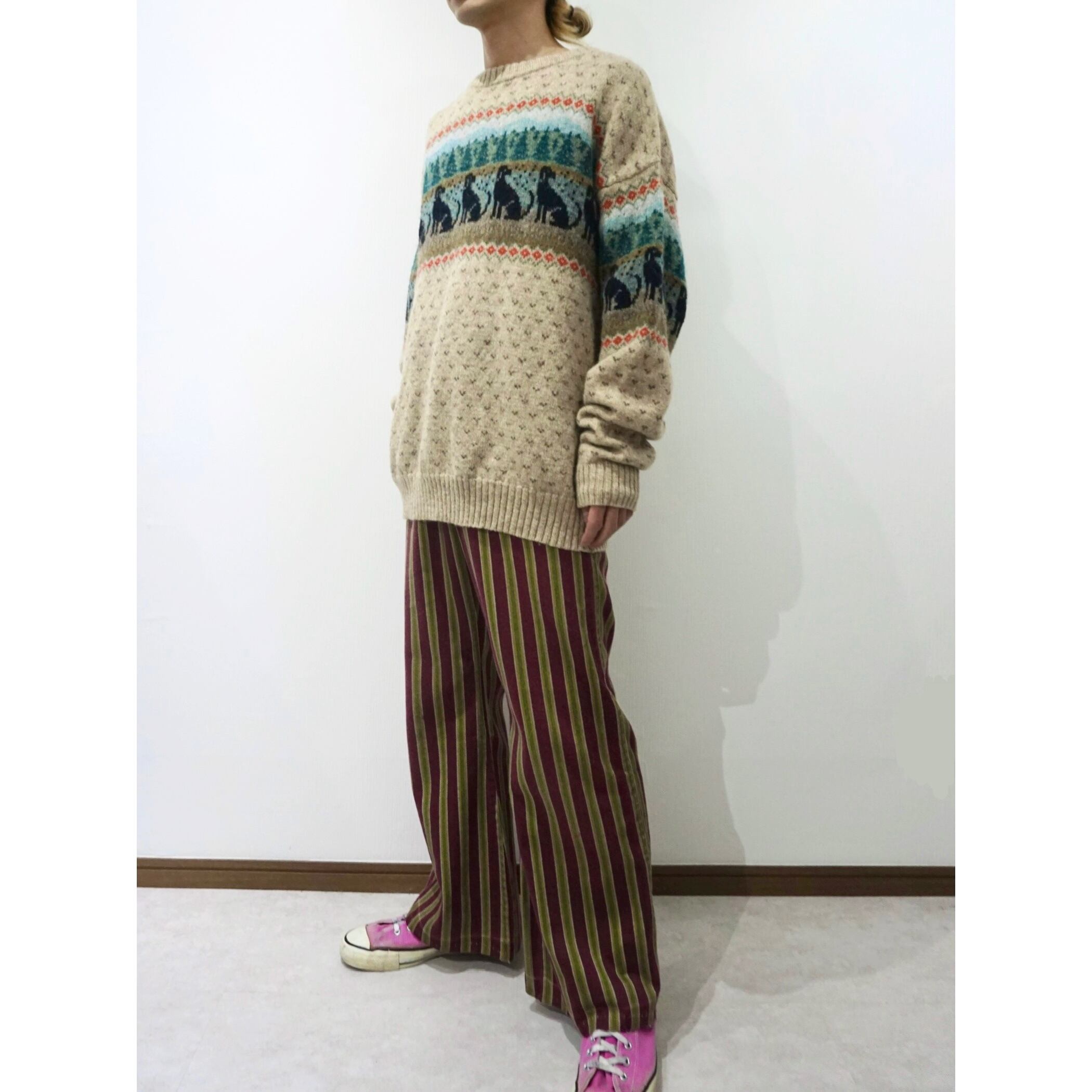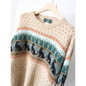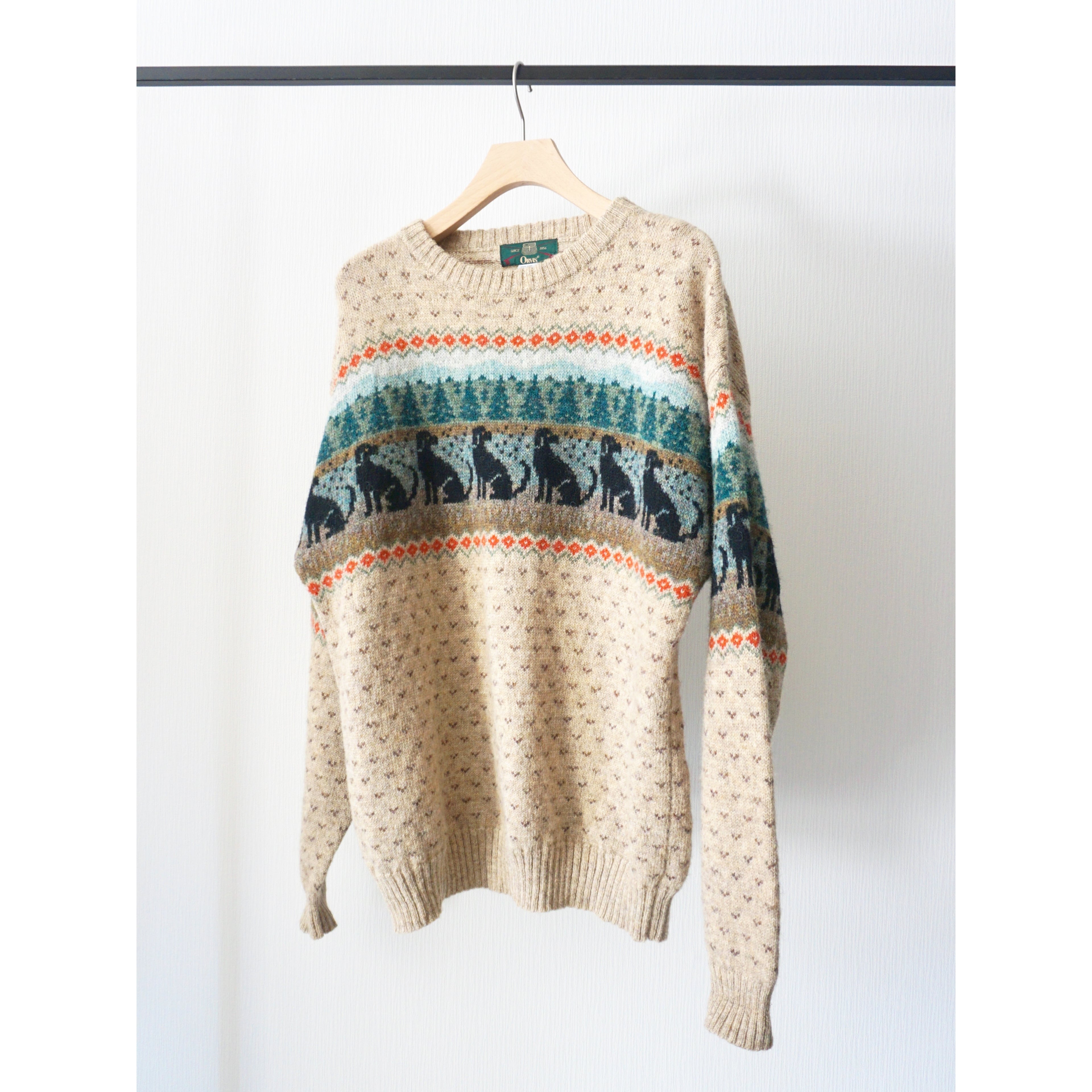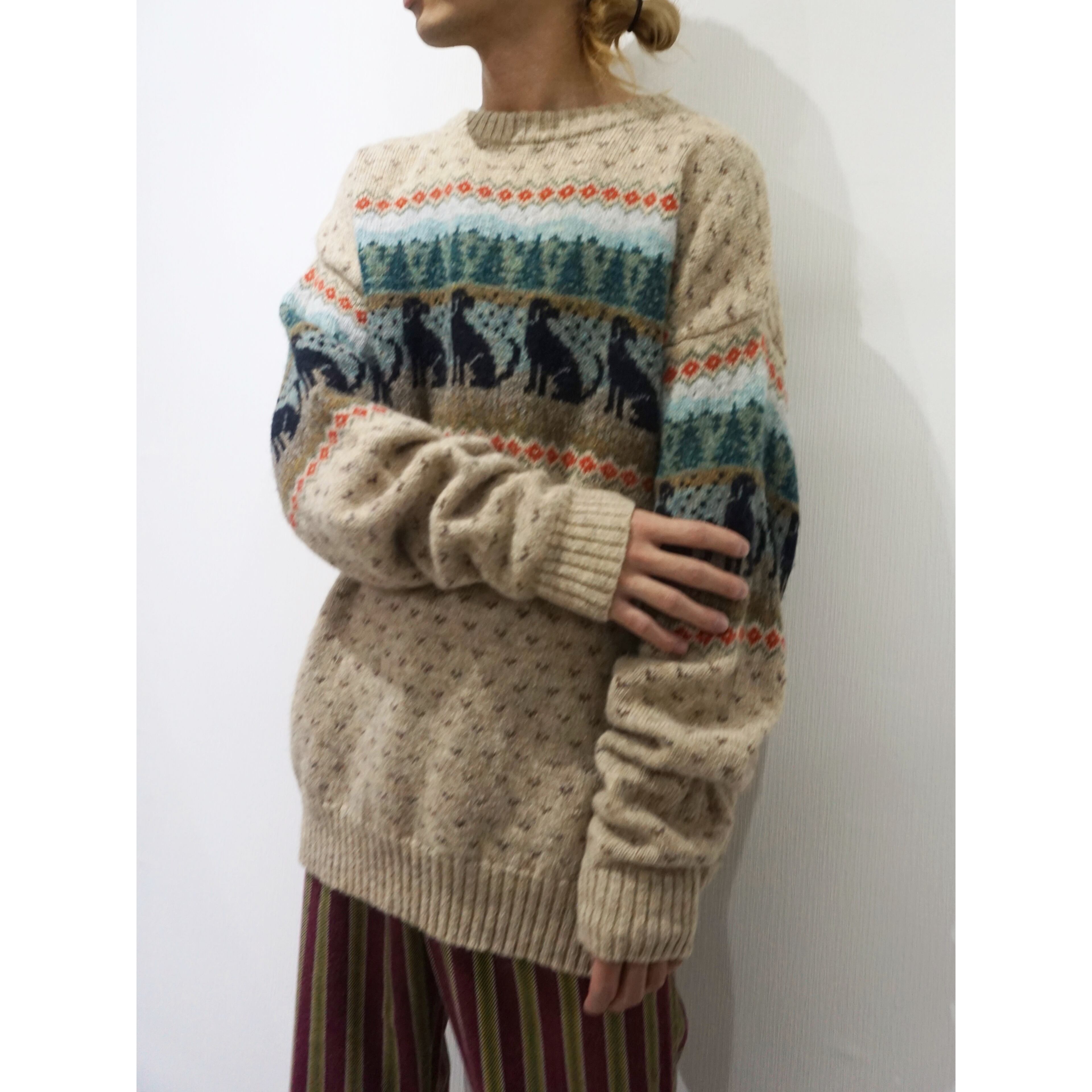 暖かみのあるベージュベースに他色が織り交ぜられた奥行きのある色味に、何よりフロント、袖、バック全面に入るワンちゃんの柄が最高に可愛い一着☺︎
