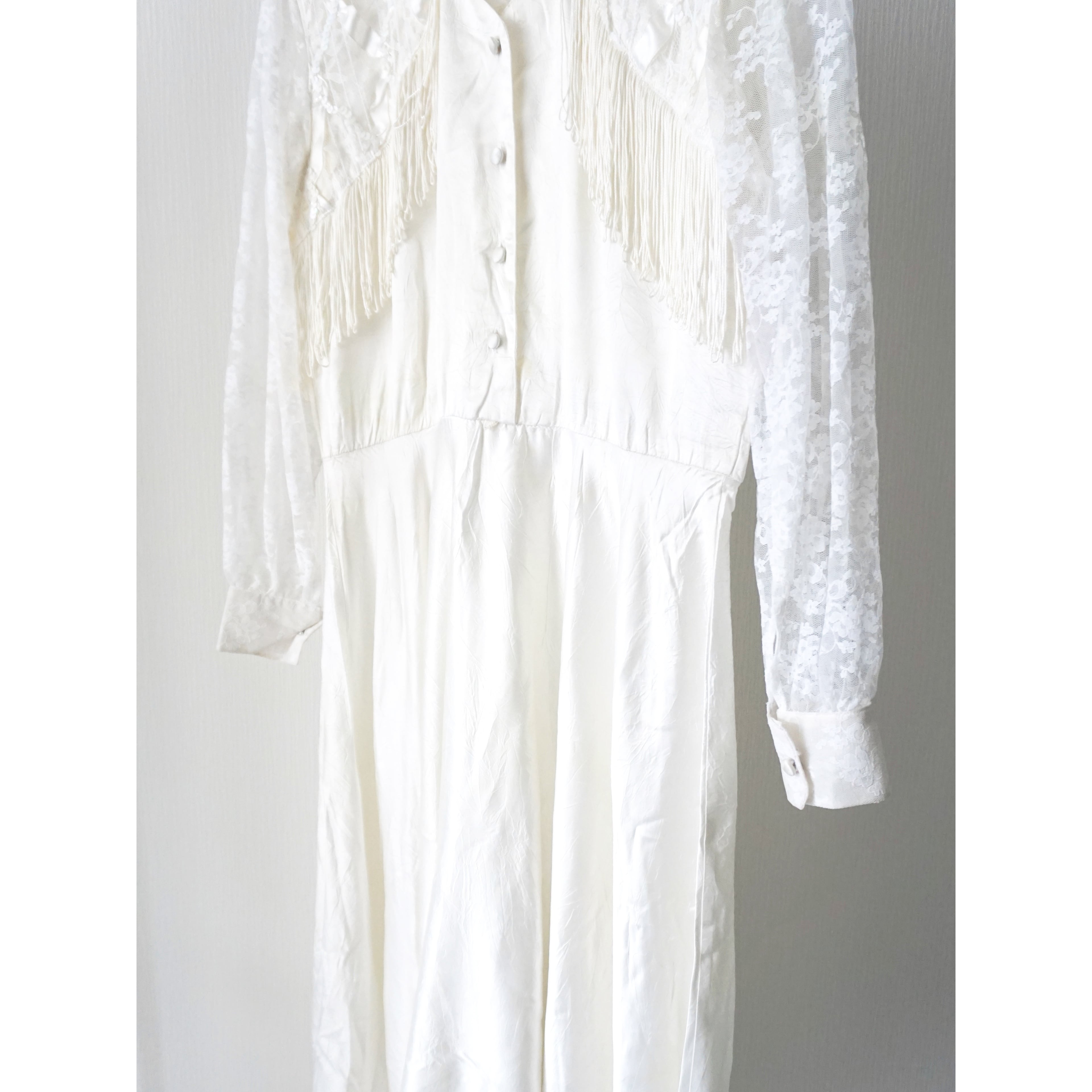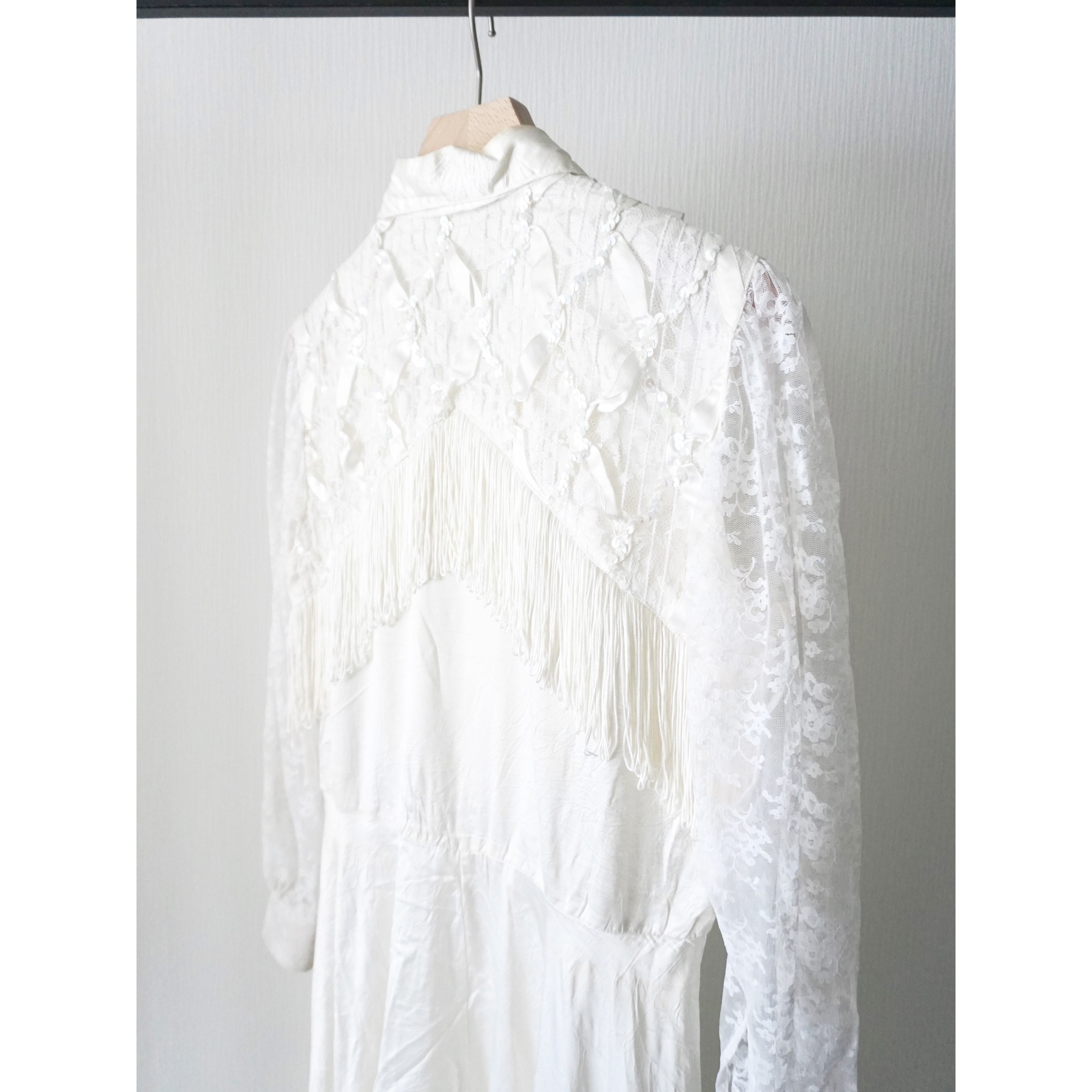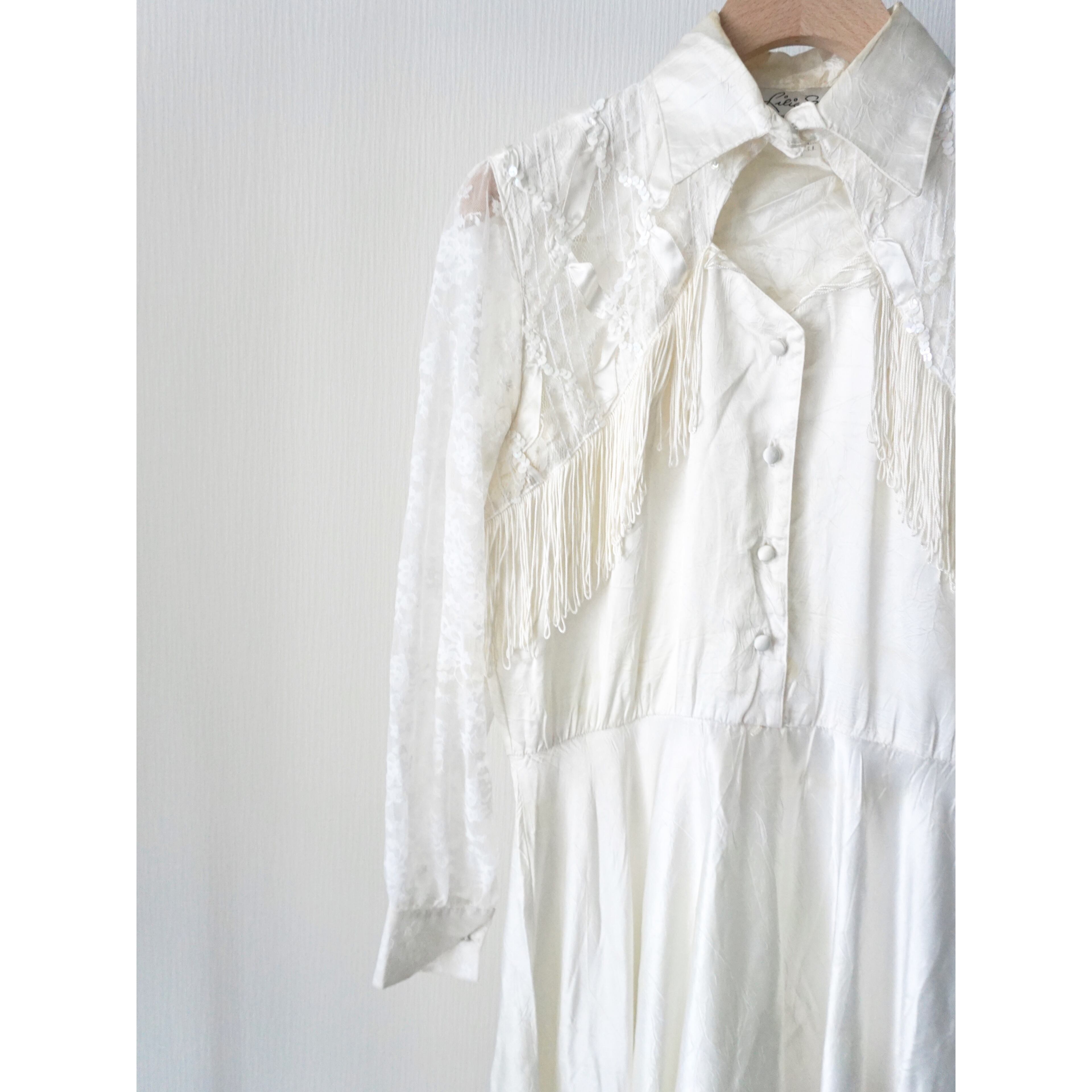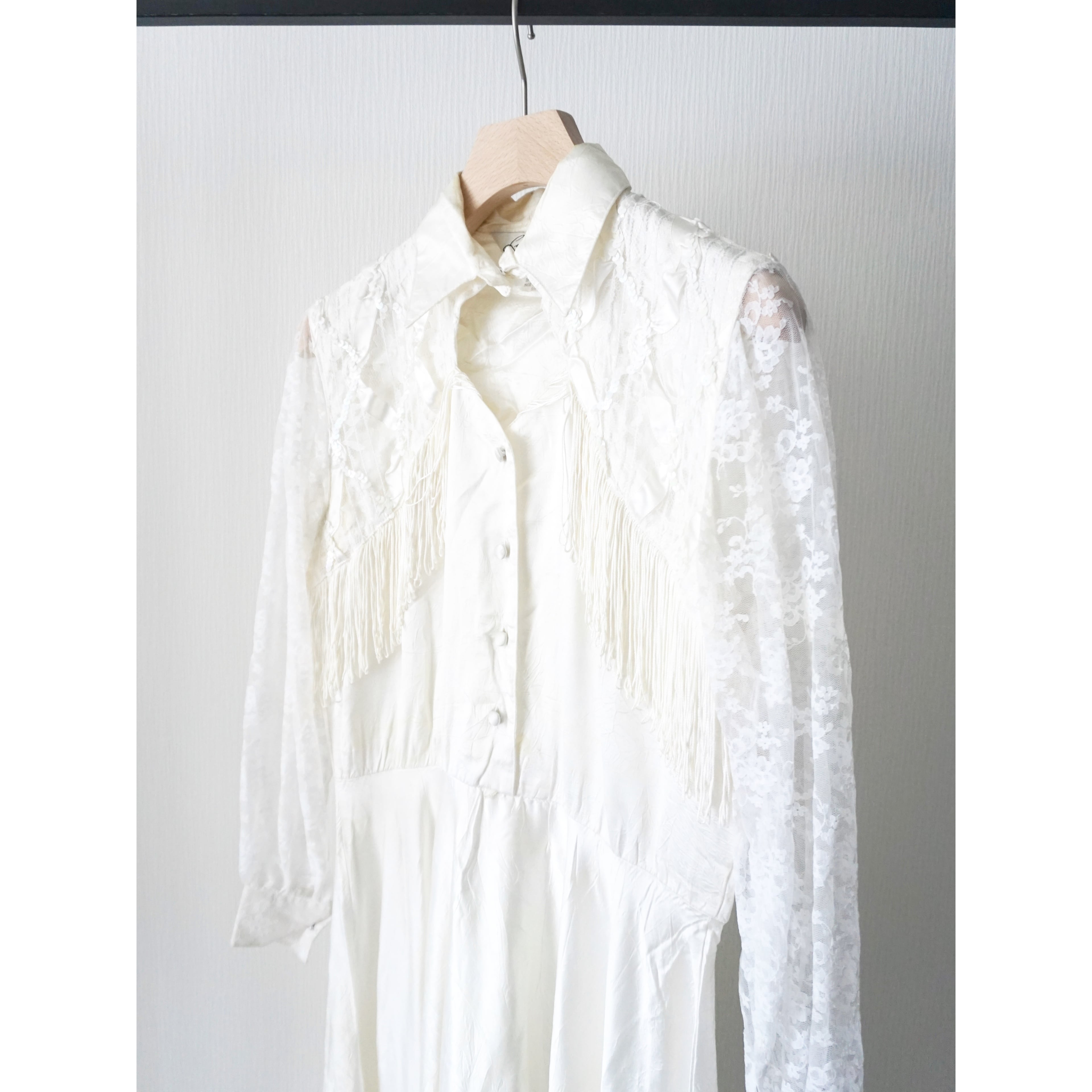 1970s~ vintag lace & fringe design Western dress Made in USA