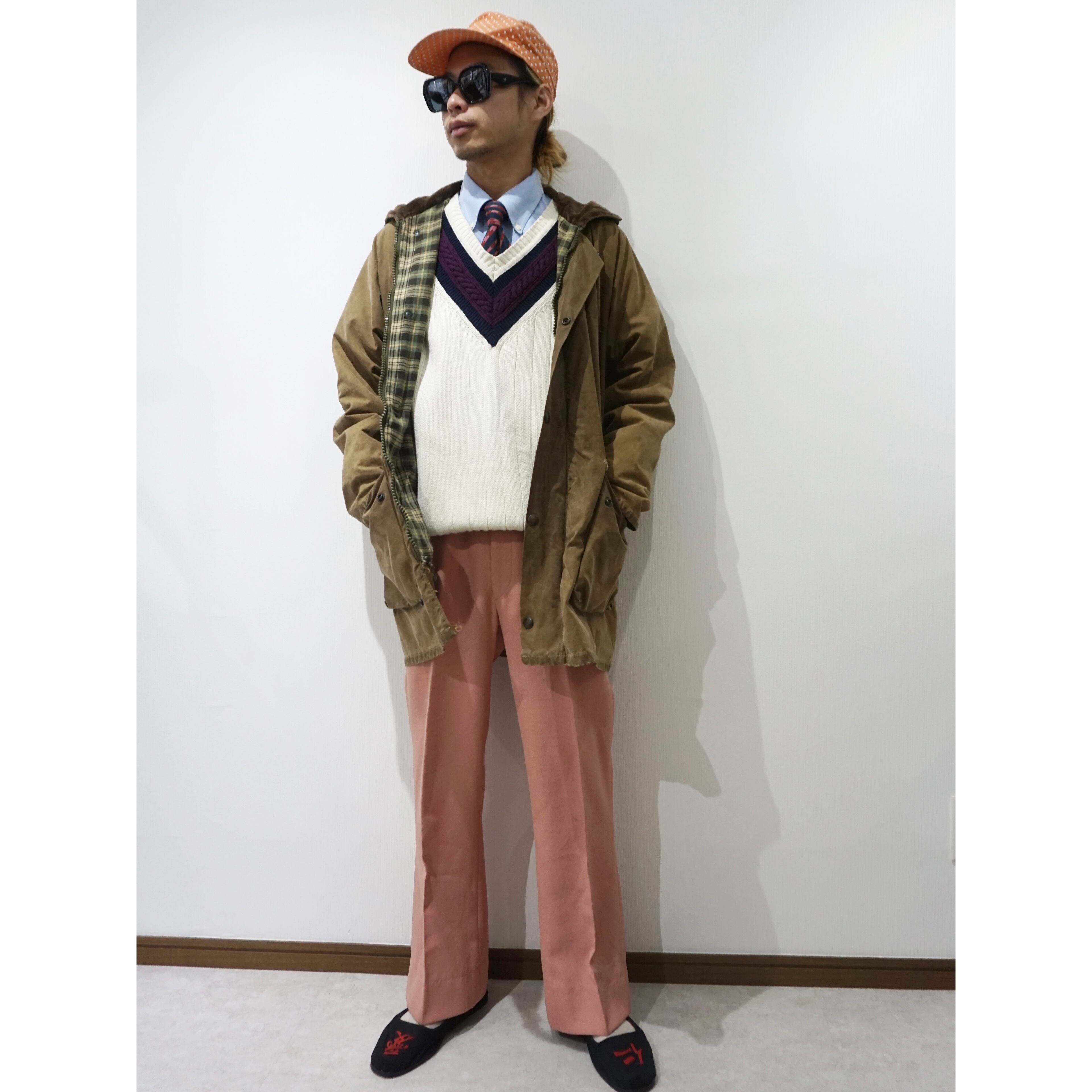 素材はこの年代特有の通年快適に穿けるポリエステル生地。サラッとした肌あたりに、シワもつきづらい、家庭内での洗濯も容易なイージーケアが魅力なファブリックとなります◎