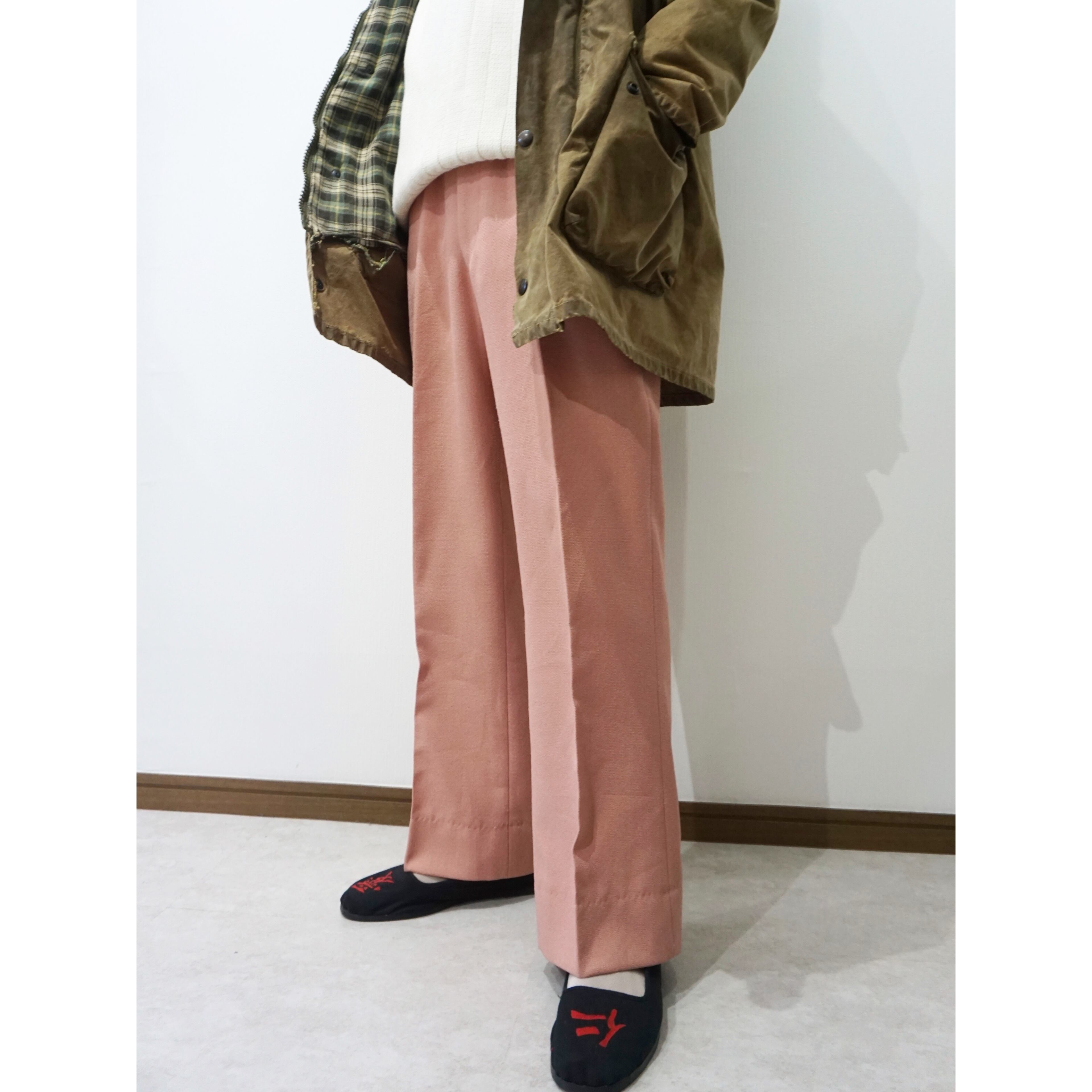 1970年代頃のサーモンピンクカラーのフレアパンツ。ジッパーはTALON。