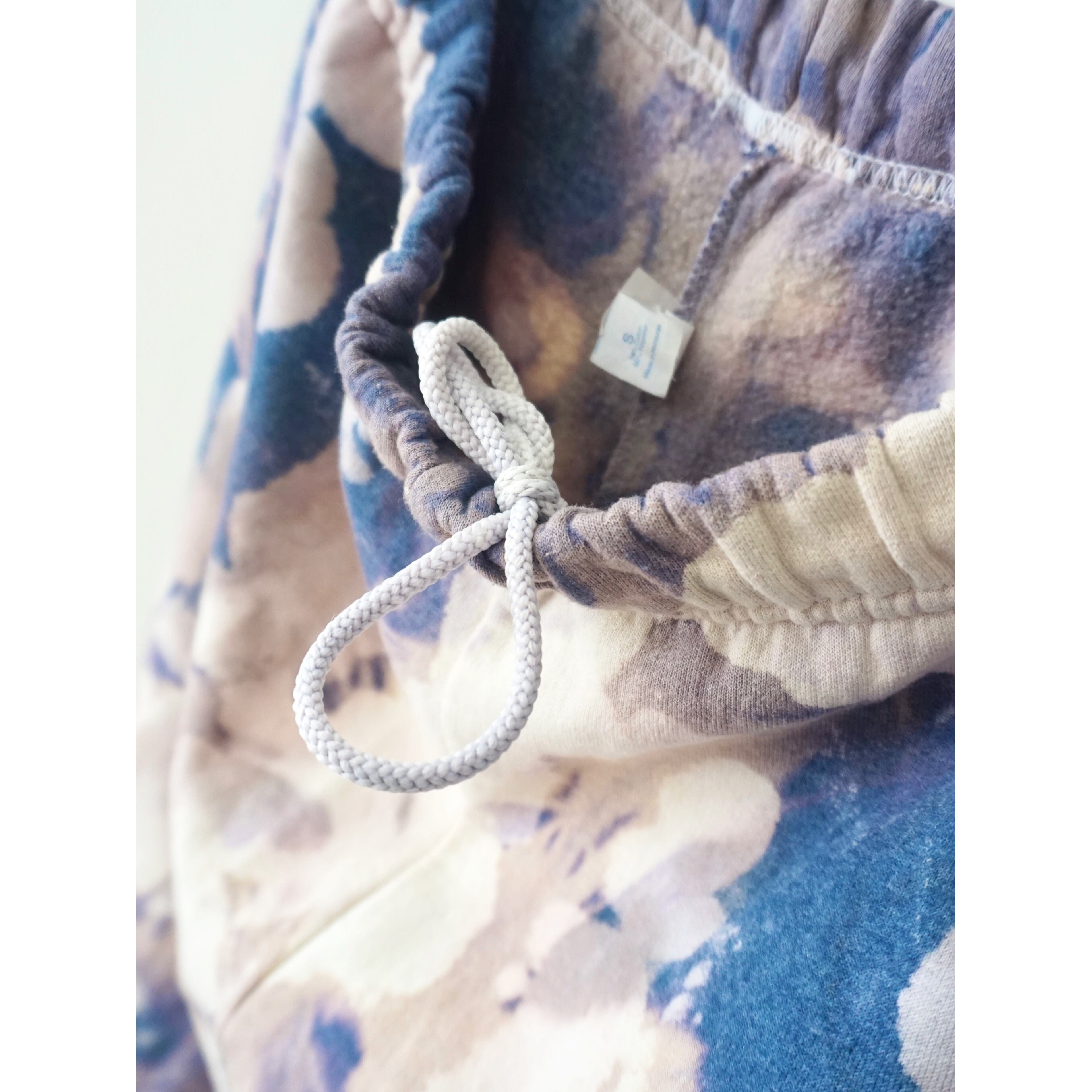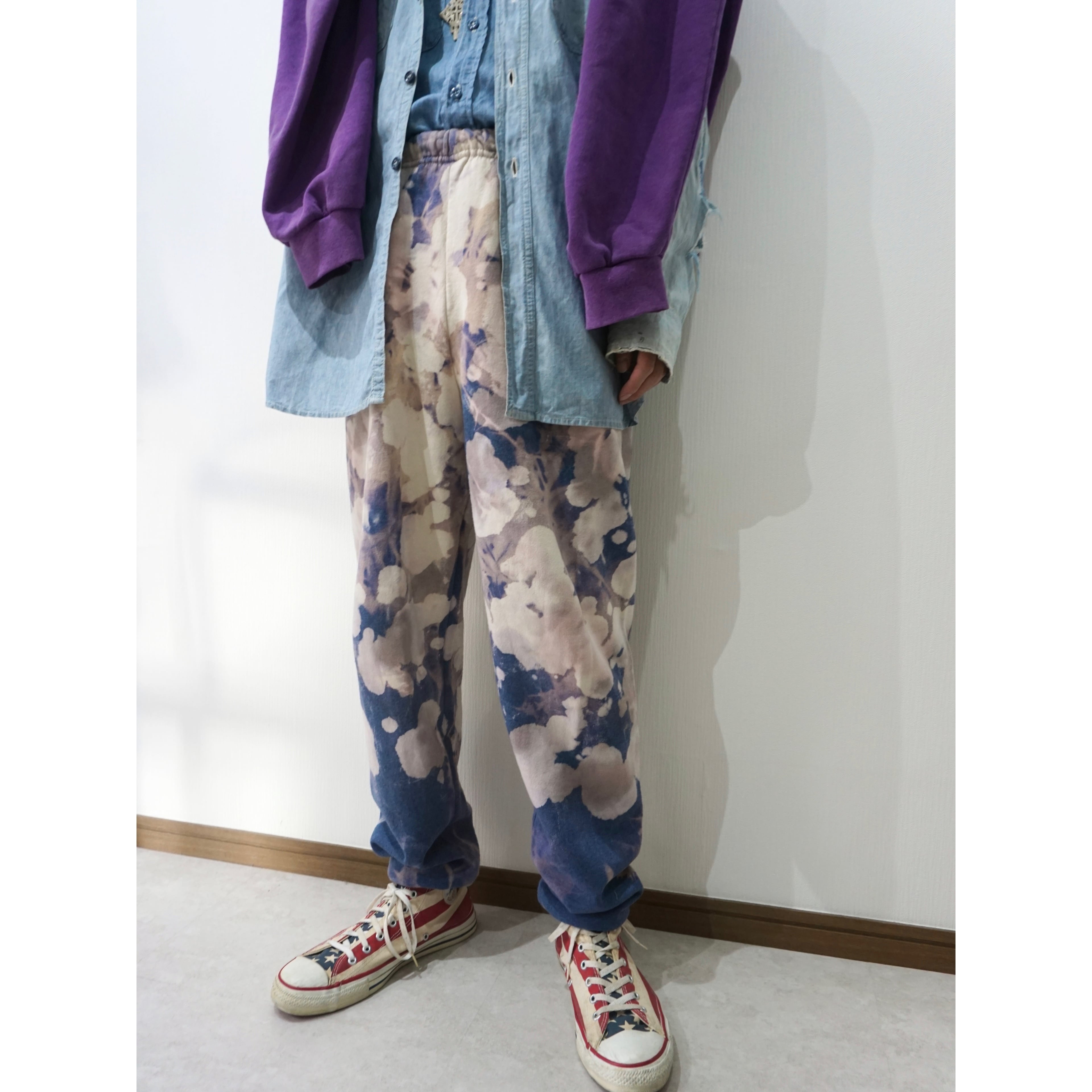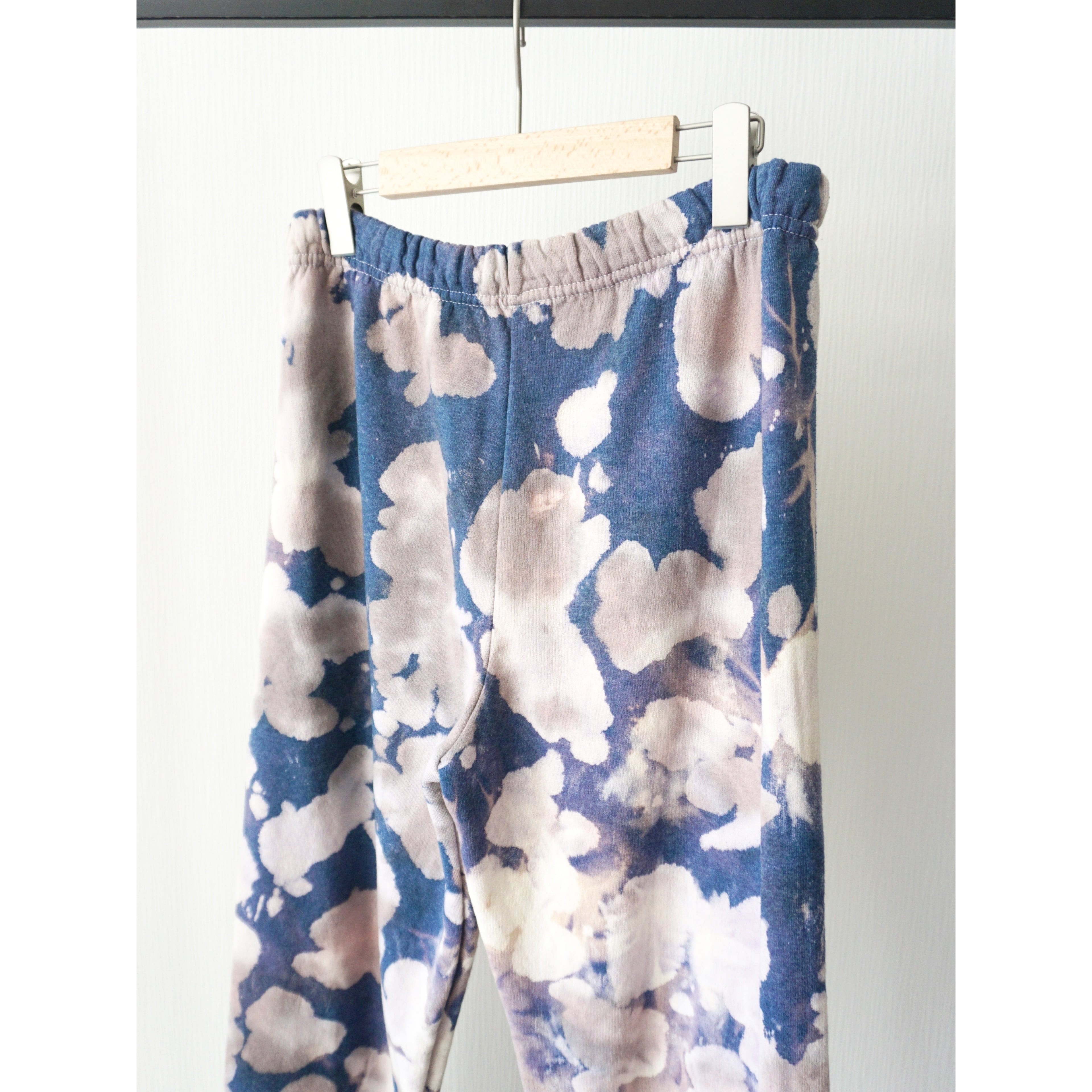 ほんのりフェードがかるネイビーボディに全体的にブリーチが飛んだスウェットパンツ。