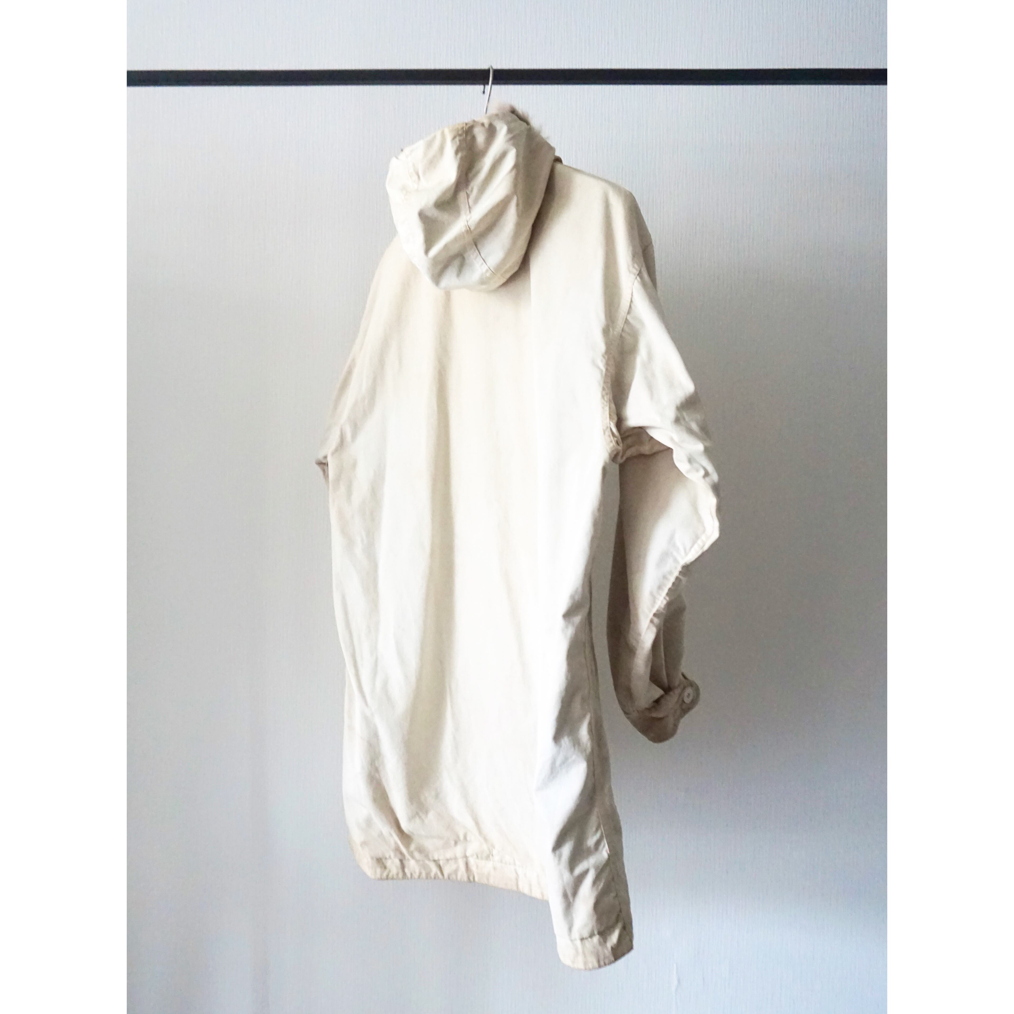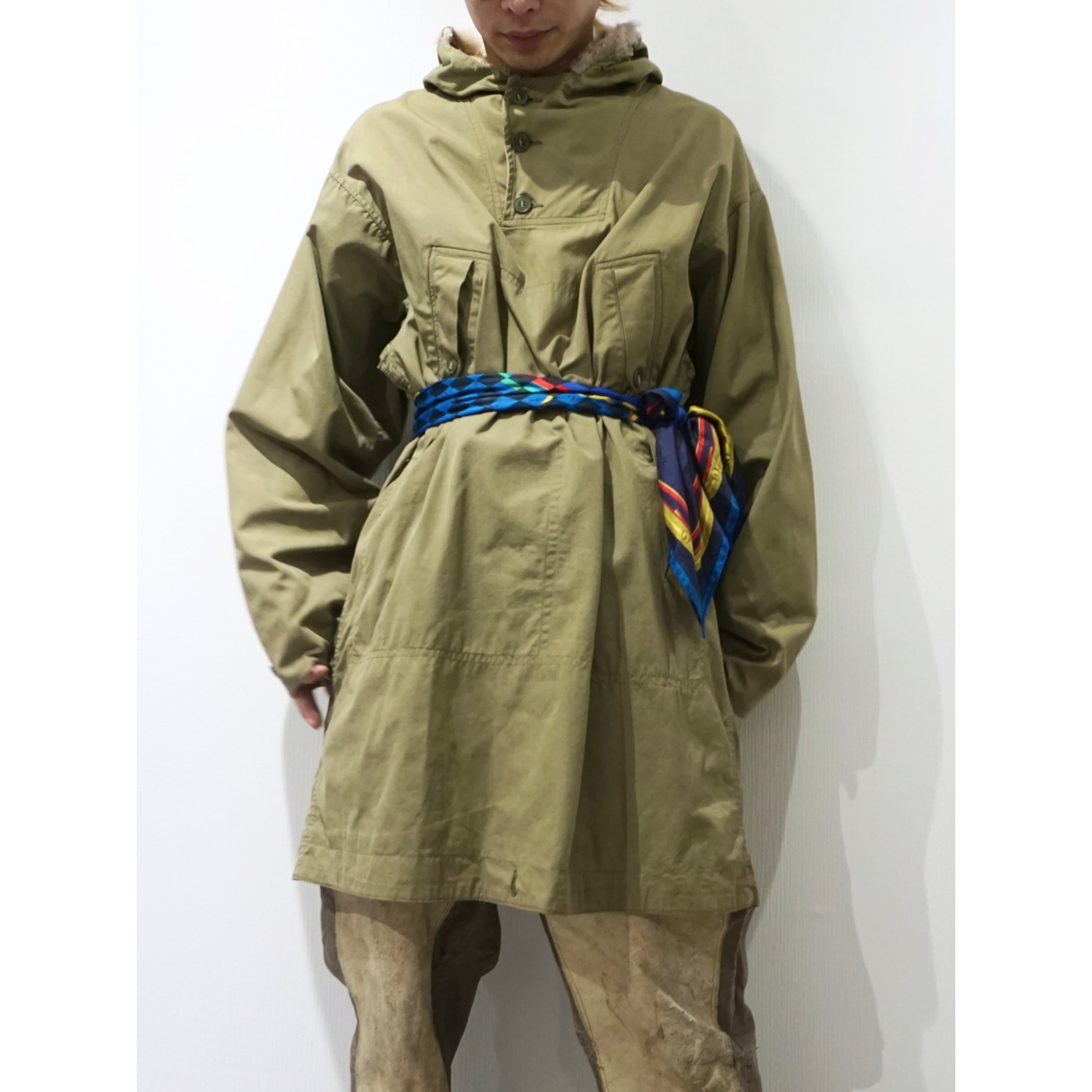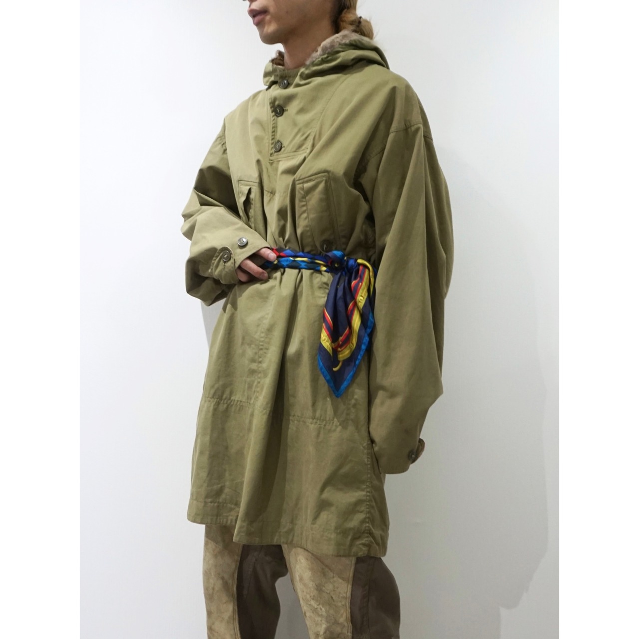 雰囲気の良い厚みのあるコットン生地、気分に合わせてリバーシブルで着用できるプルオーバー型。特徴的な長めにとられた着丈、フロントのフラップ付きの大きめなポケット、欠損しがちなコヨーテファーもしっかり残った個体となります。