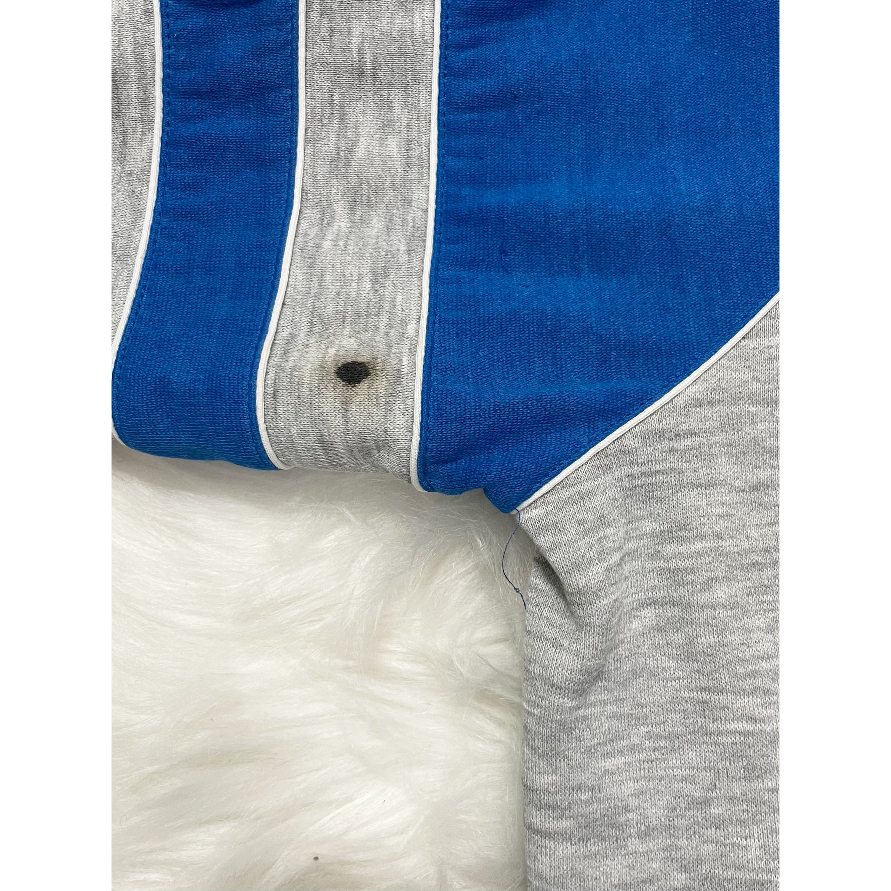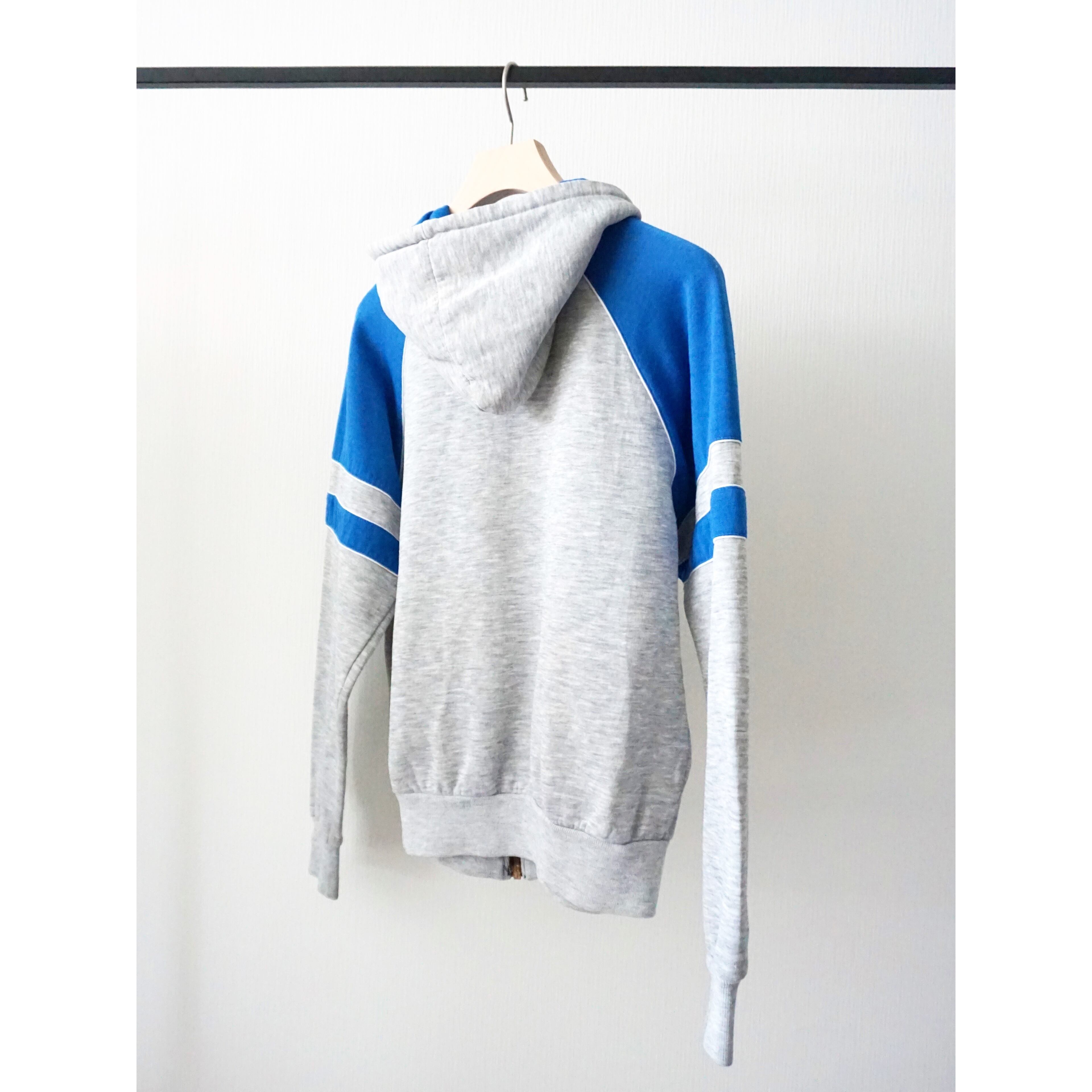 パッと見は配色の良いブルー×ヘザーグレーの切替がクールなスウェットパーカー。