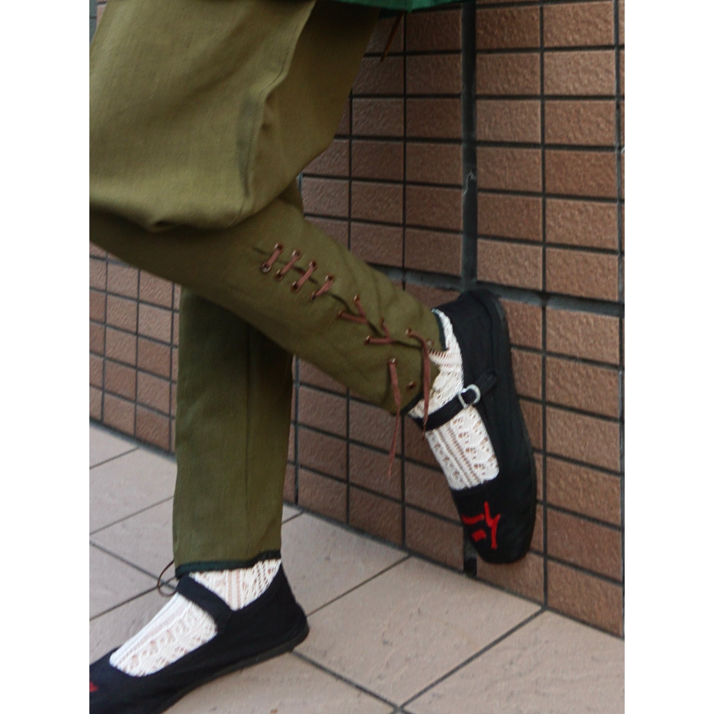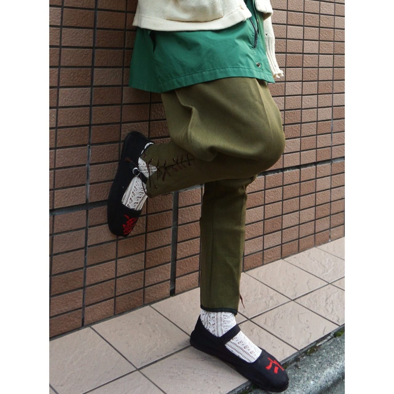 更に此方は裾が洒落たレースアップ仕様、ウエストサスペンダーボタン、シンチバックが付くヴィンテージならではな最高なディテールです。